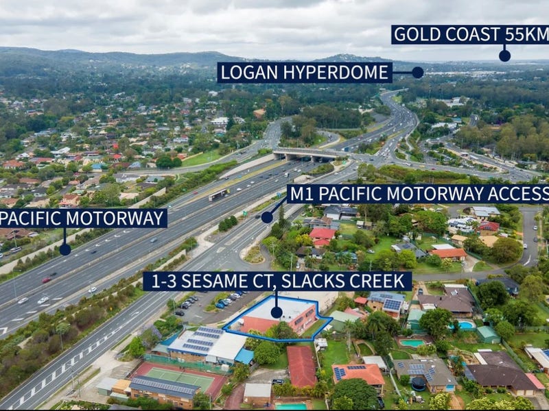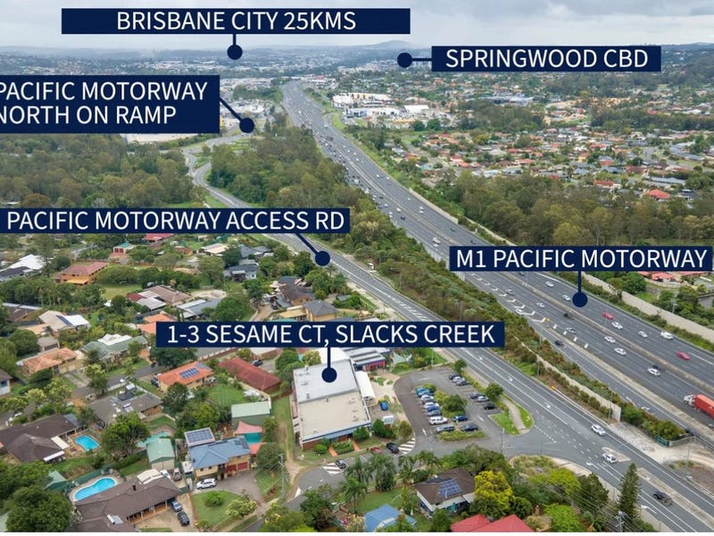 Don’t miss out on this exceptional chance to secure a lease for prime first floor commercial space, boasting prominent signage that is visible from the M1. Situated adjacent to ample on-street parking and with direct access to the Pacific Hwy Service Road, this property offers unparalleled proximity to the M1, local amenities, and various transport options. The Pacific Motorway (M1) on ramps and off ramps for both north and southbound traffic are conveniently close, placing the property just 25kms from the vibrant Brisbane CBD and a mere 55kms from the heart of the Gold Coast.