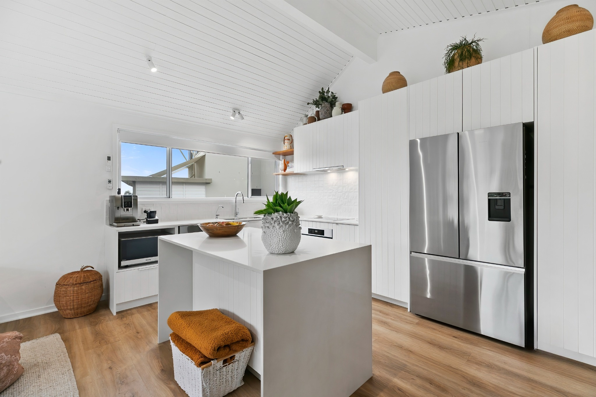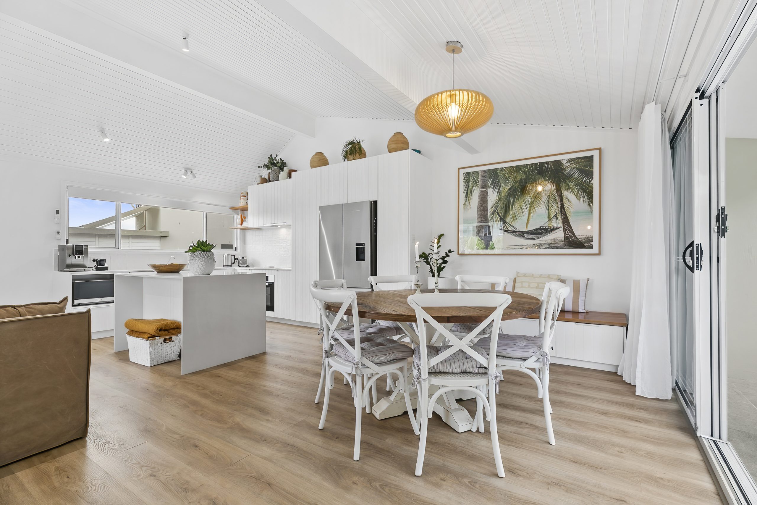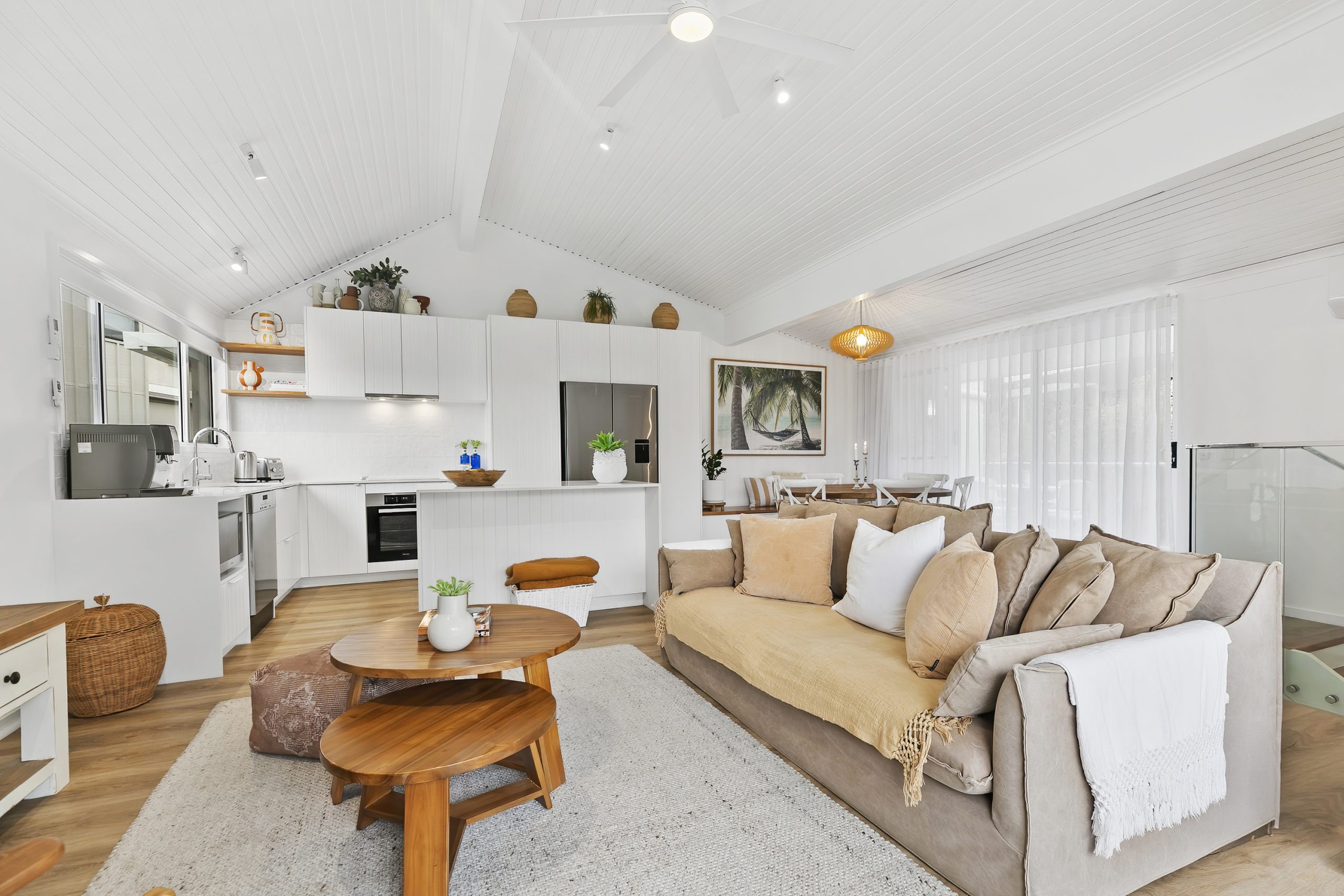 Spacious Open-plan Living: High ceilings and a seamless flow from the living area to outdoor spaces make this property ideal for relaxed coastal living and entertaining.