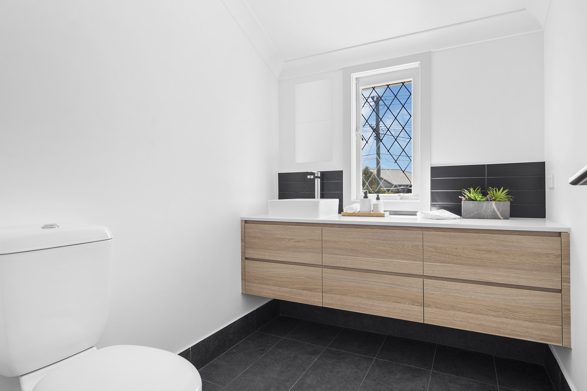 As you step inside, you’ll be greeted by a light-filled living room with a newly tiled floor leading you into the kitchen/dining room. You are instantly hit by the feeling of space with 3 meter ceilings and a modern kitchen perfectly designed and finished to complement the house.