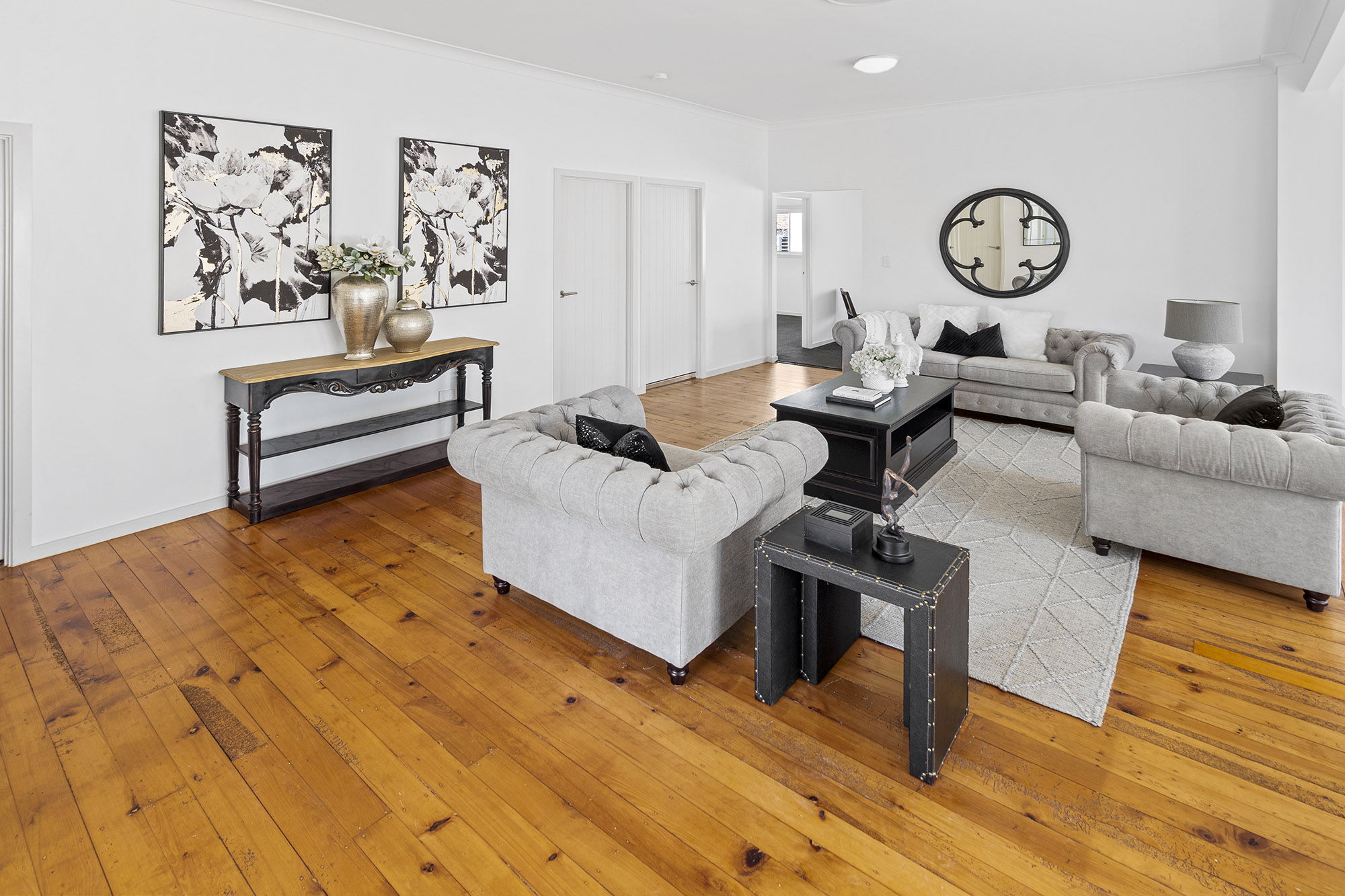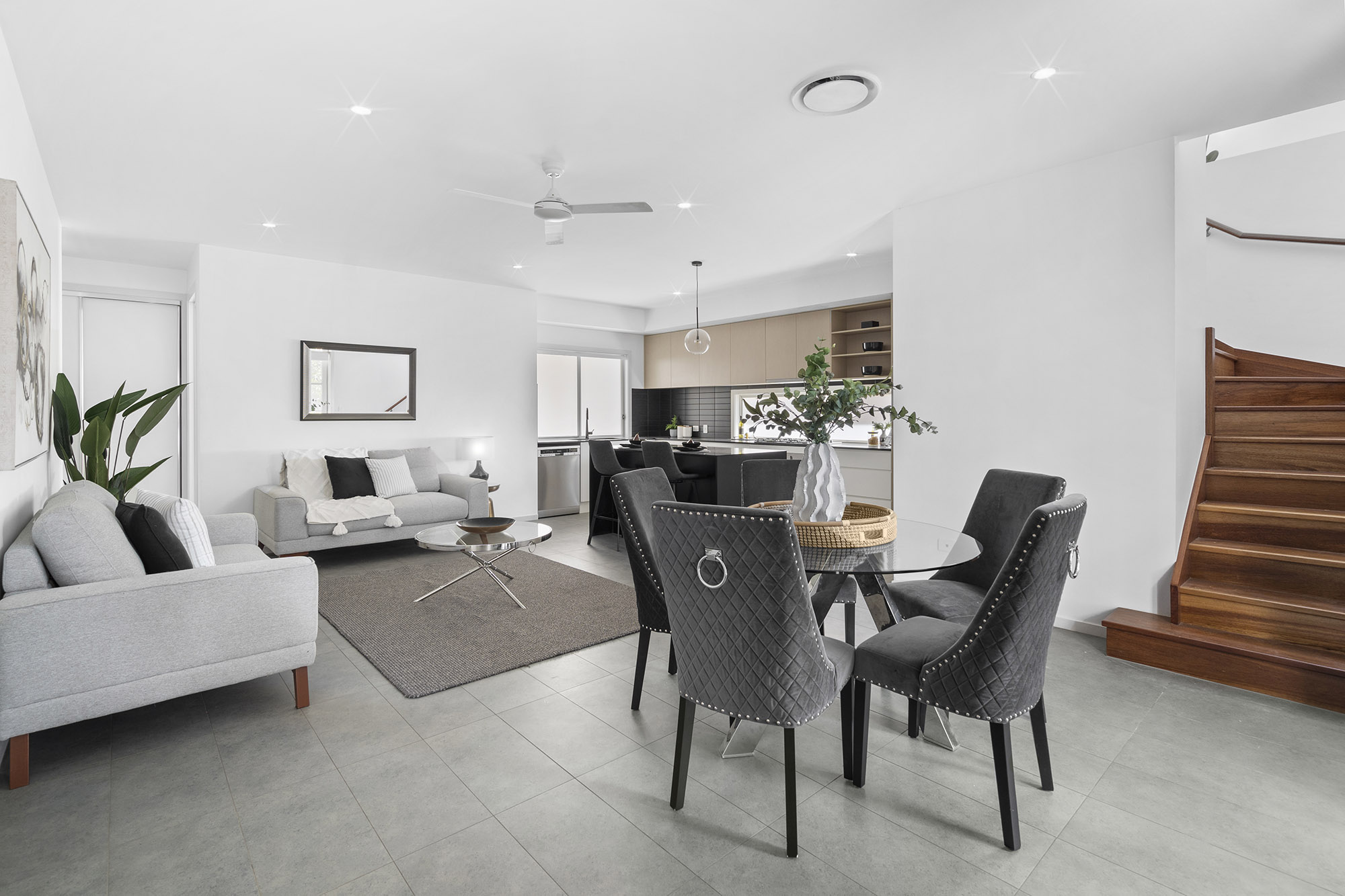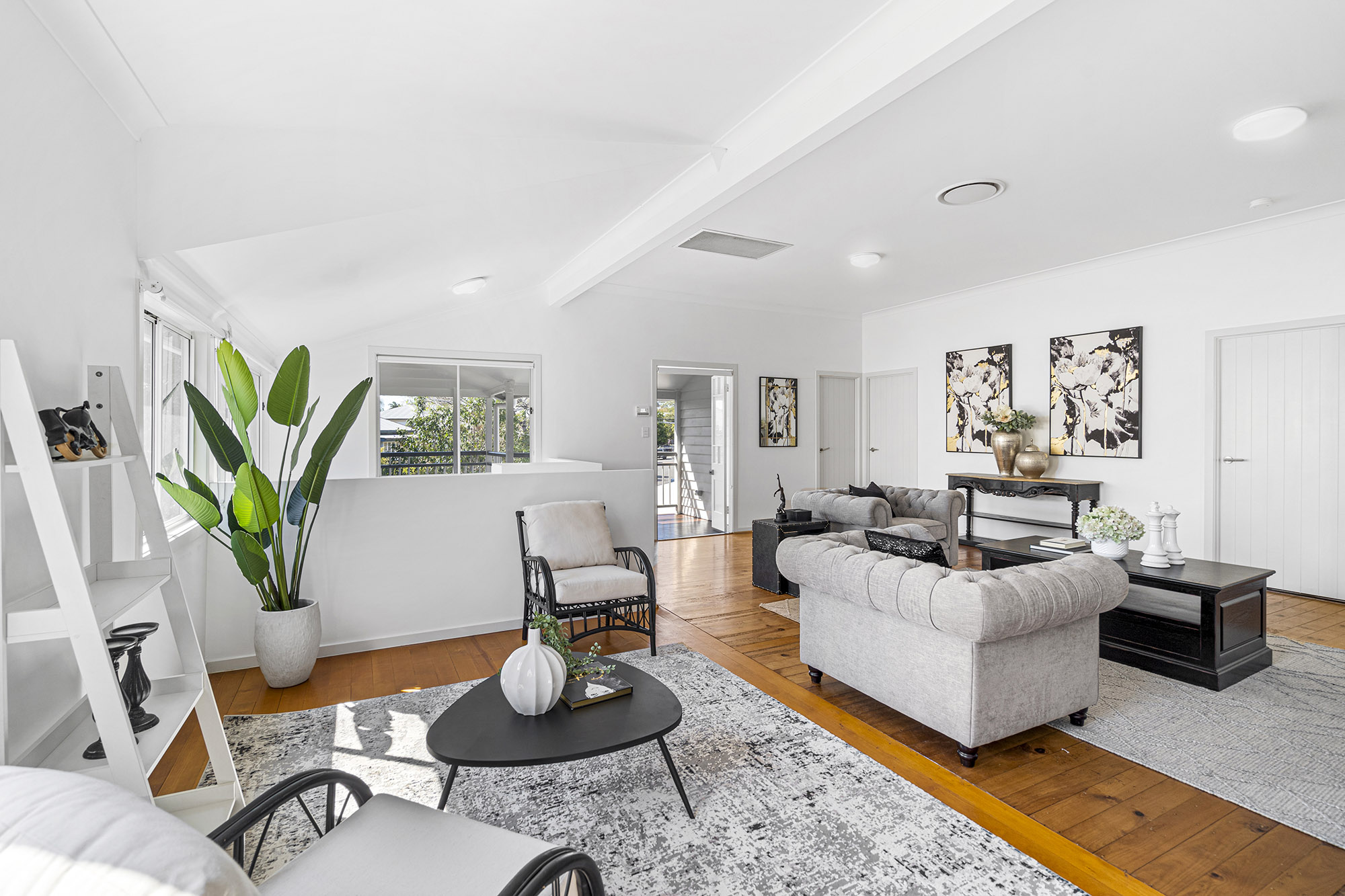 Upstairs you are instantly welcomed by the period style features of the renovated and lifted Queenslander. Tastefully renovated you enter into a huge double sized living room that will provide many options for a large family.