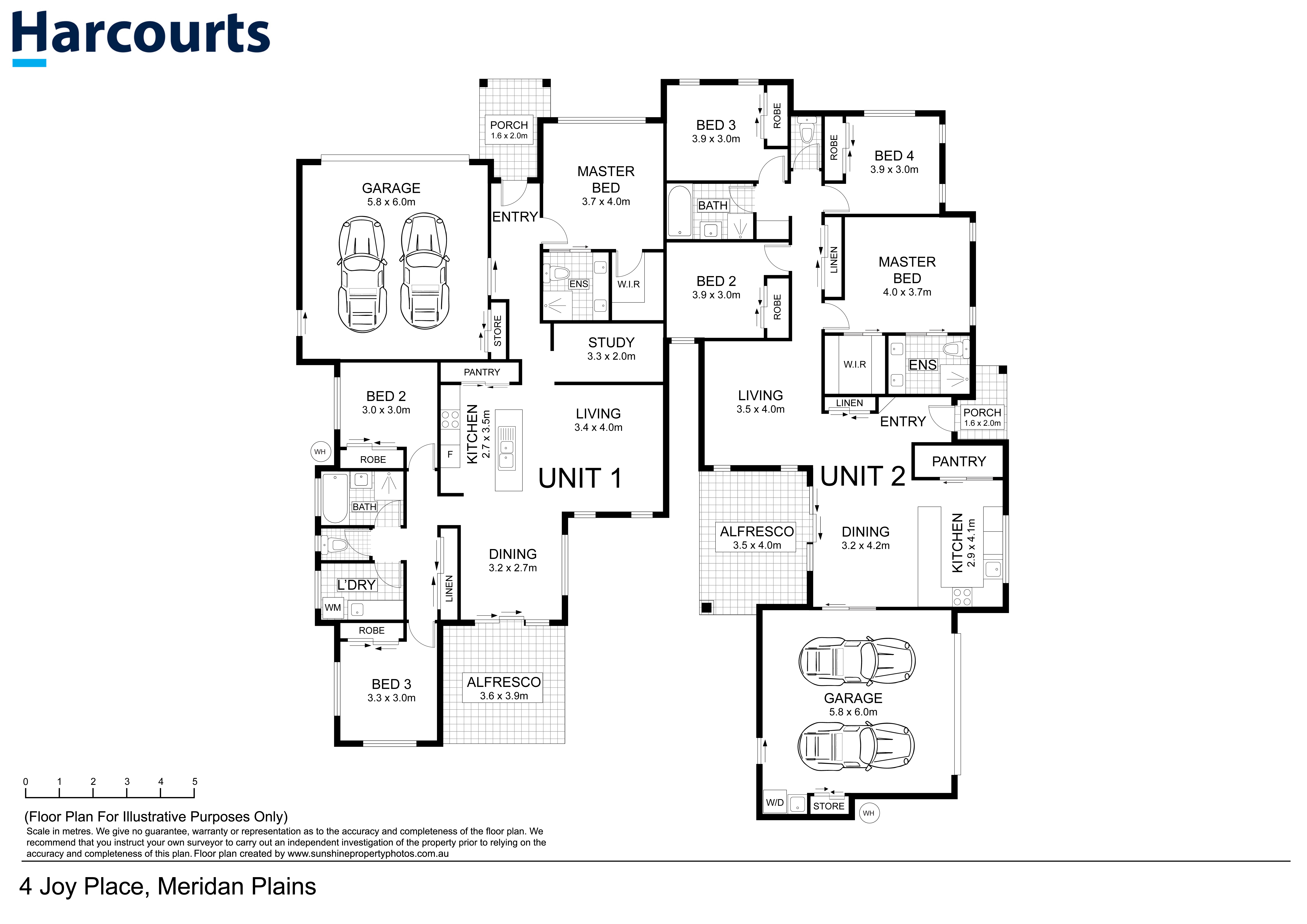 Unit 1 – 3 Bedroom, 2 bathrooms, open plan kitchen and living area, Study, walk-in pantry, main bedroom with ensuite and WIR.