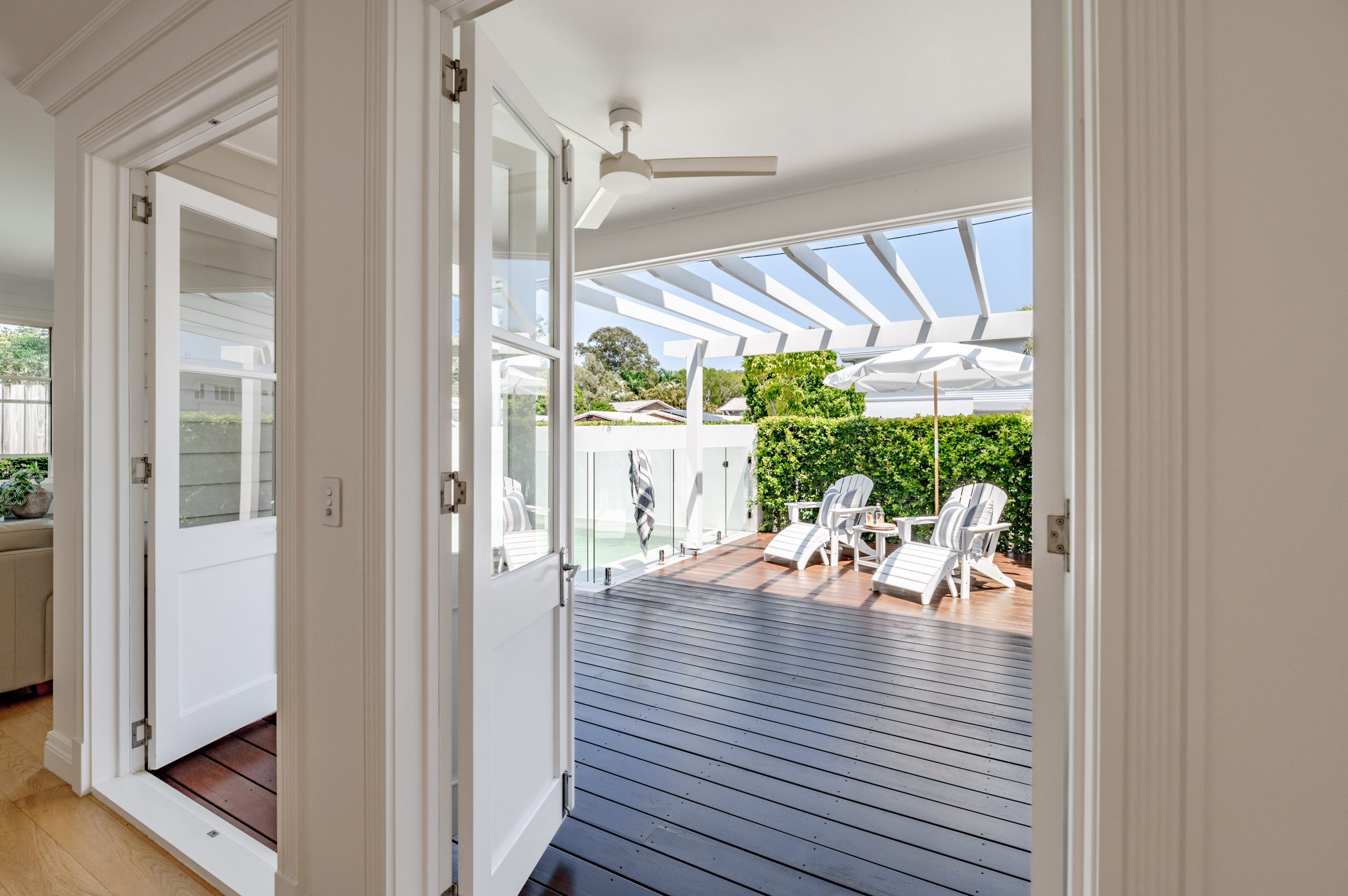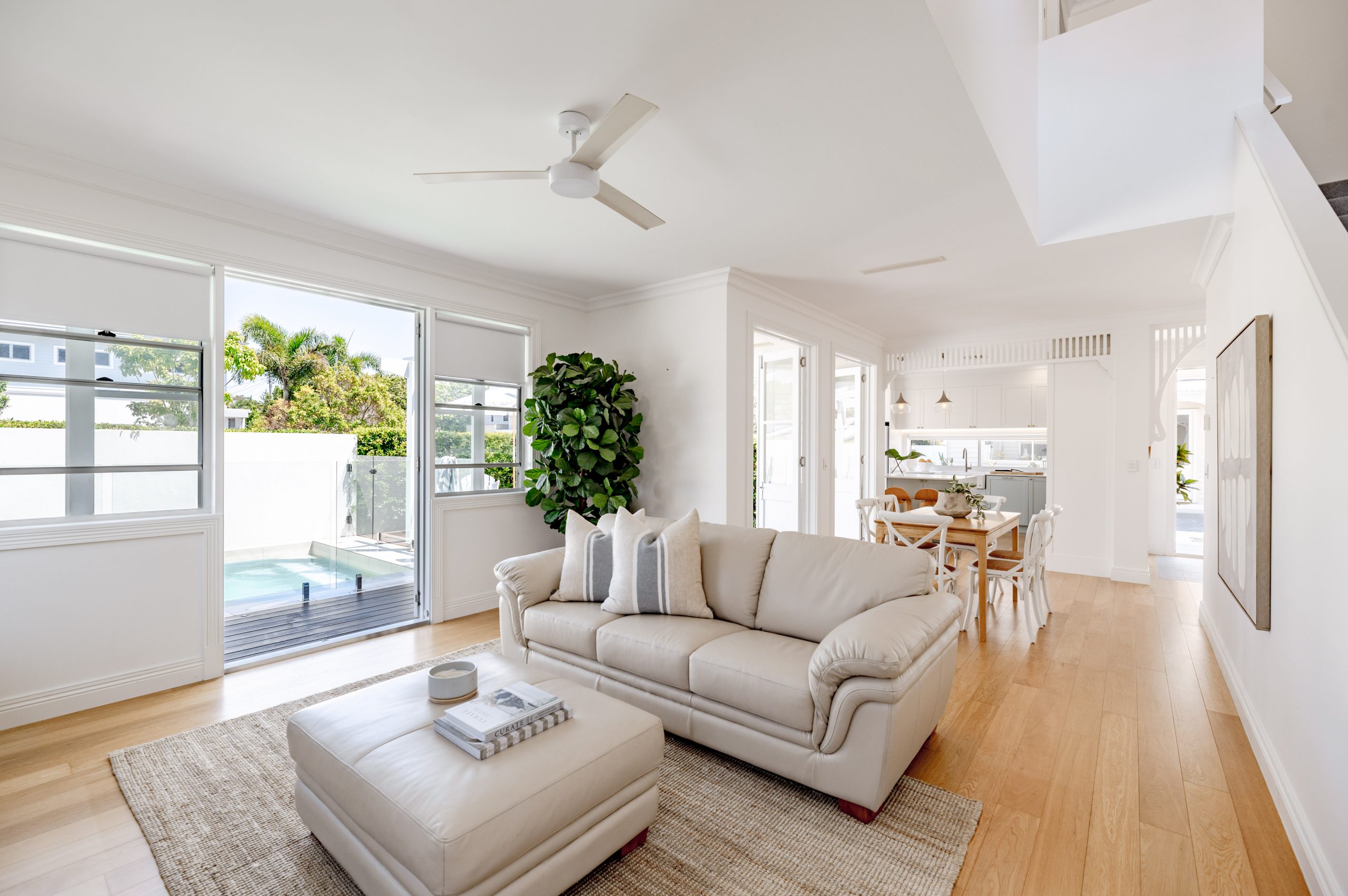 ‘Filled with natural light’ is a true description, banks of French doors open out to a completely private plunge pool and wrap-around entertaining deck.