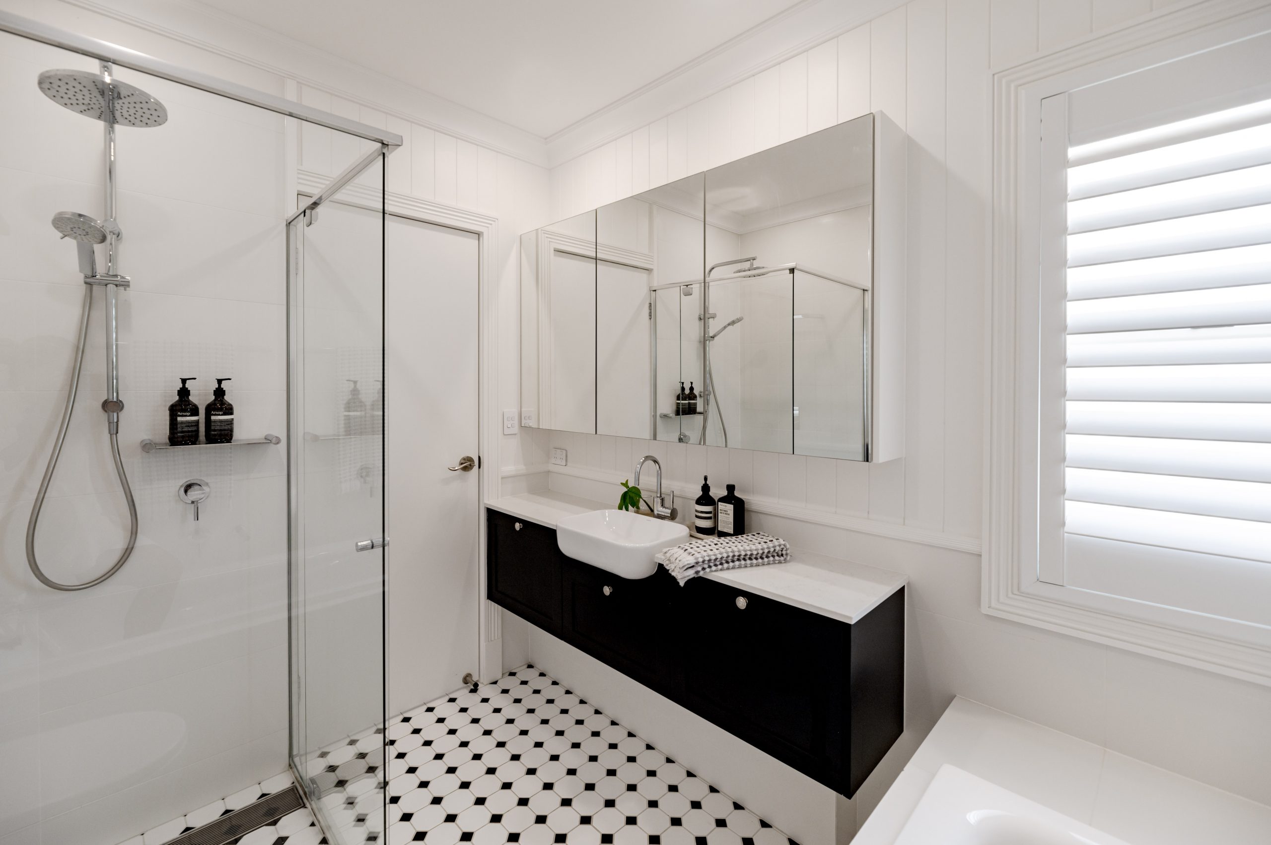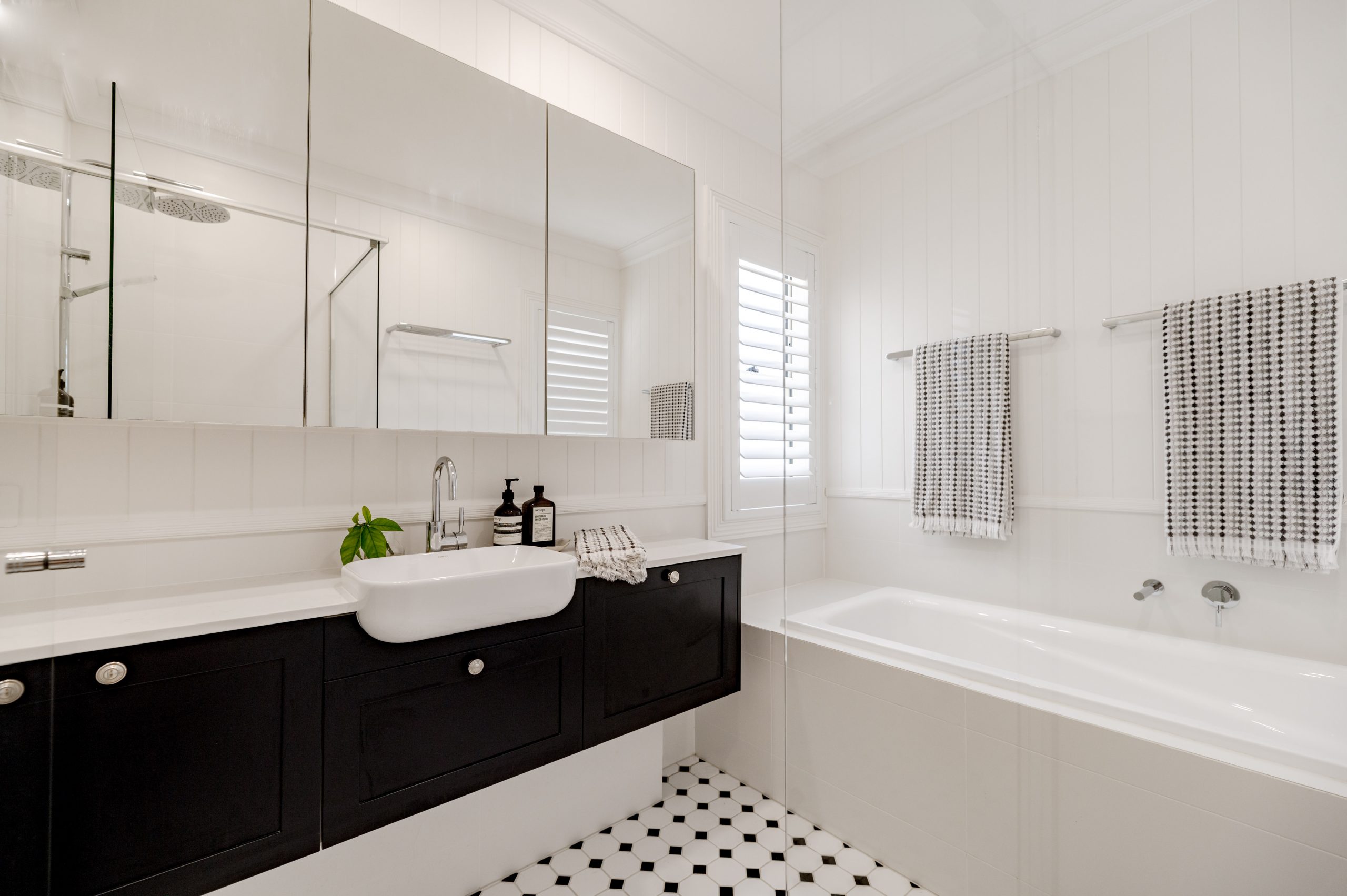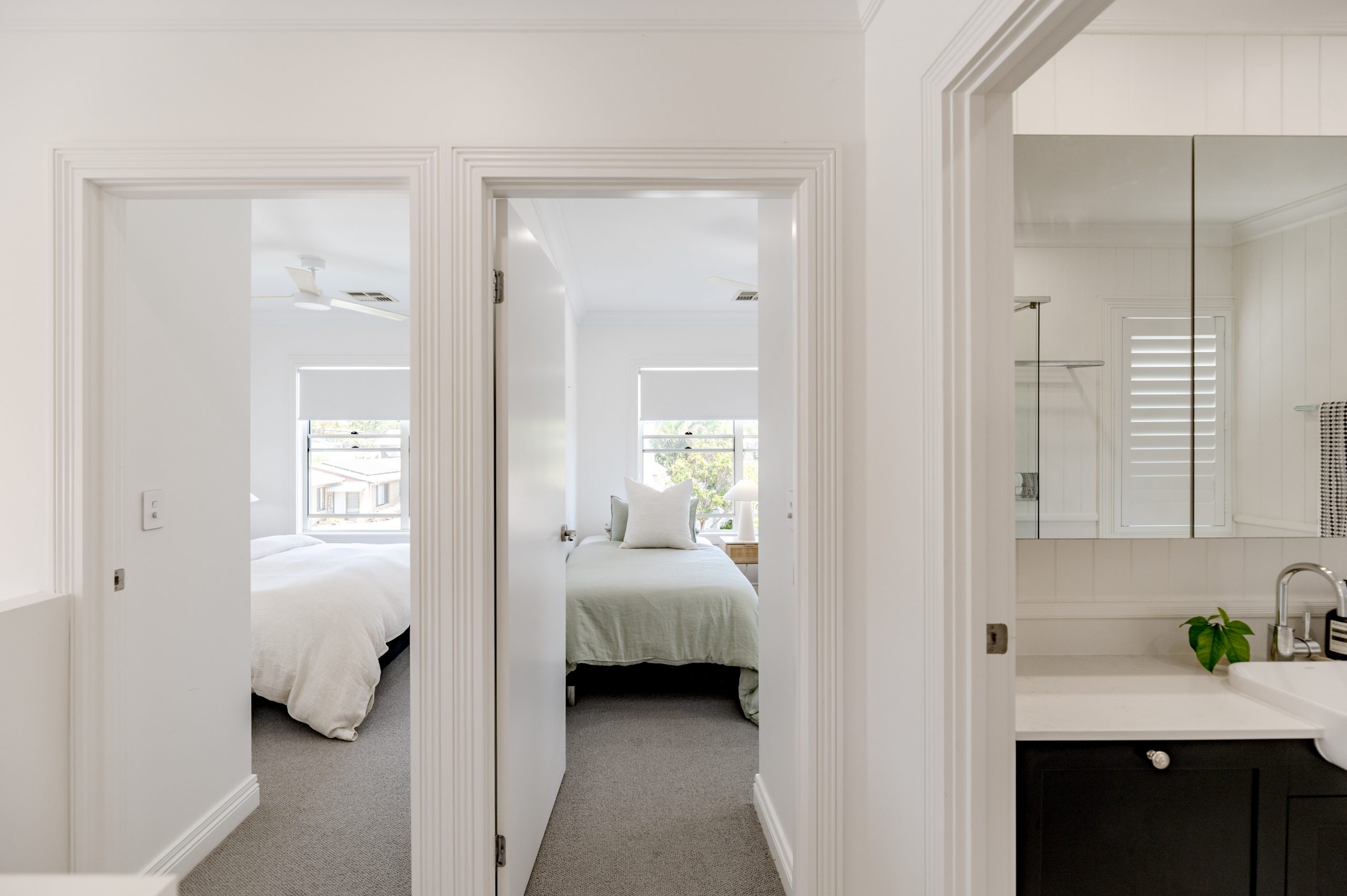 Upstairs you’ll find the accommodation, three bedrooms each with block out blinds and vertical groove detailing, with the master bedroom featuring plantation shutters, a walk-in robe and well proportioned ensuite. The shared guest bathroom offers a full size bath which completes the upper level.