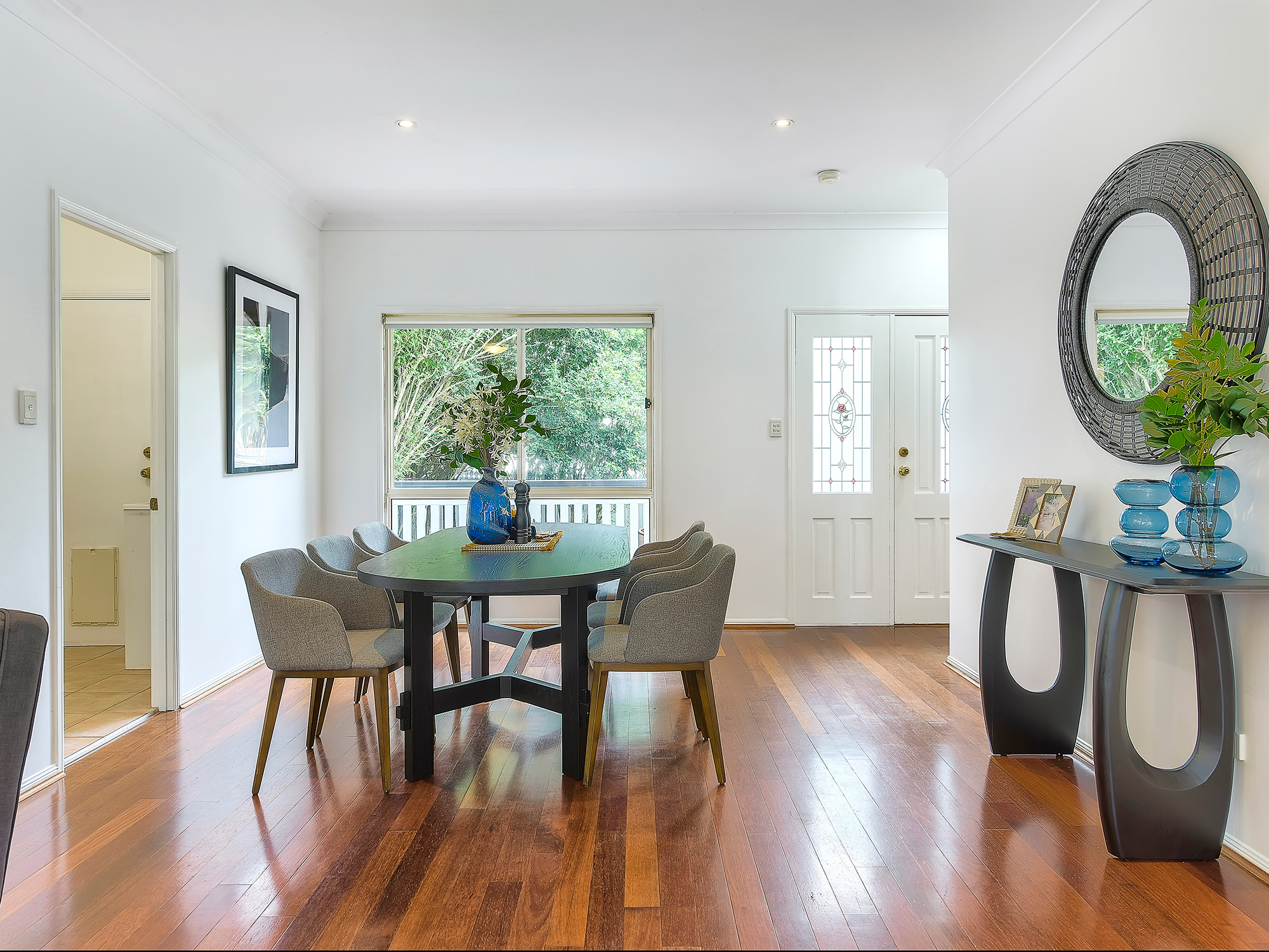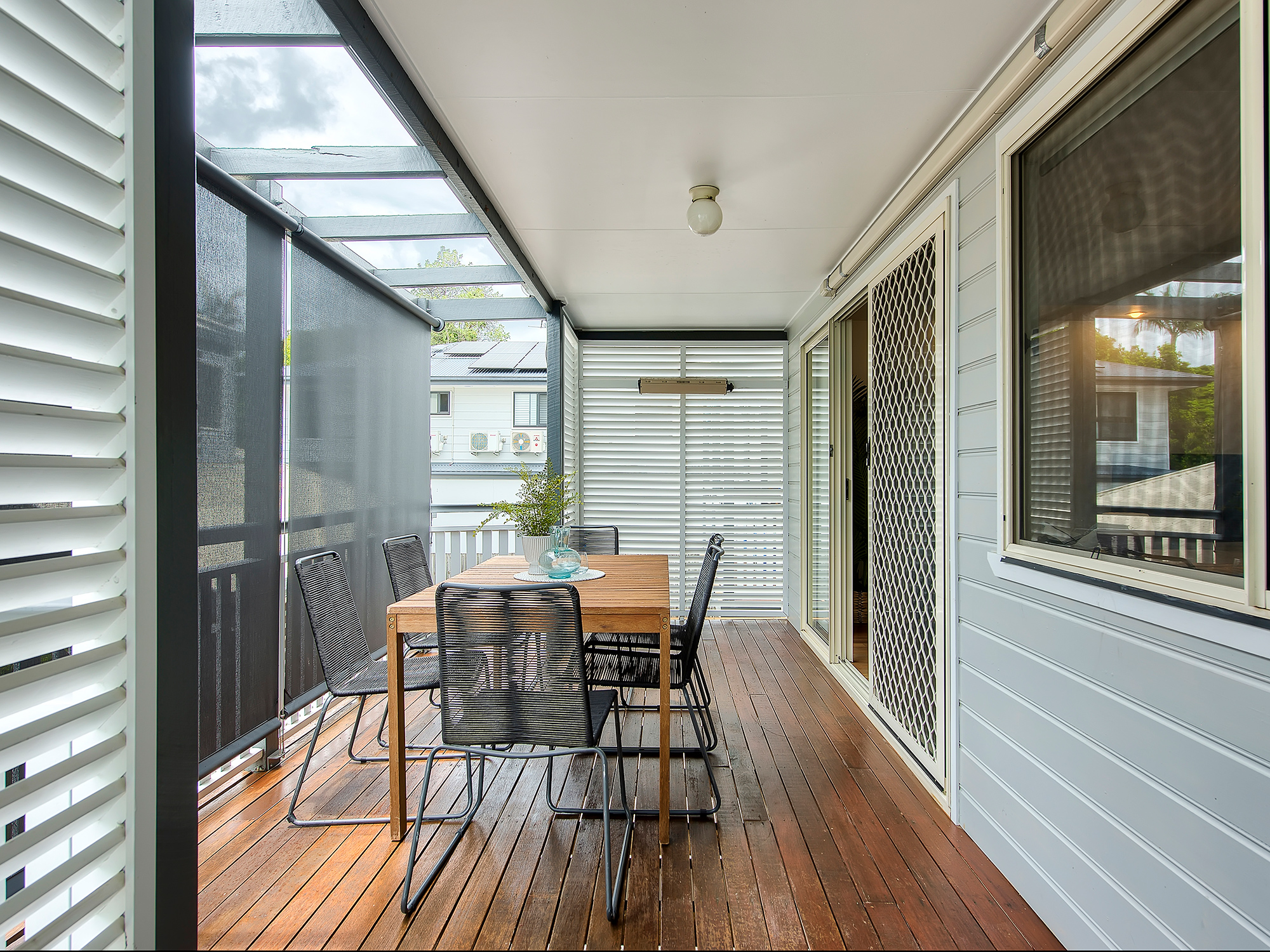 Extend your living and dining outdoors upon the airy covered deck, with shade blinds perfect for privacy. Alternatively you can unwind in the grassed courtyard, privately fenced and framed by mature greenery.