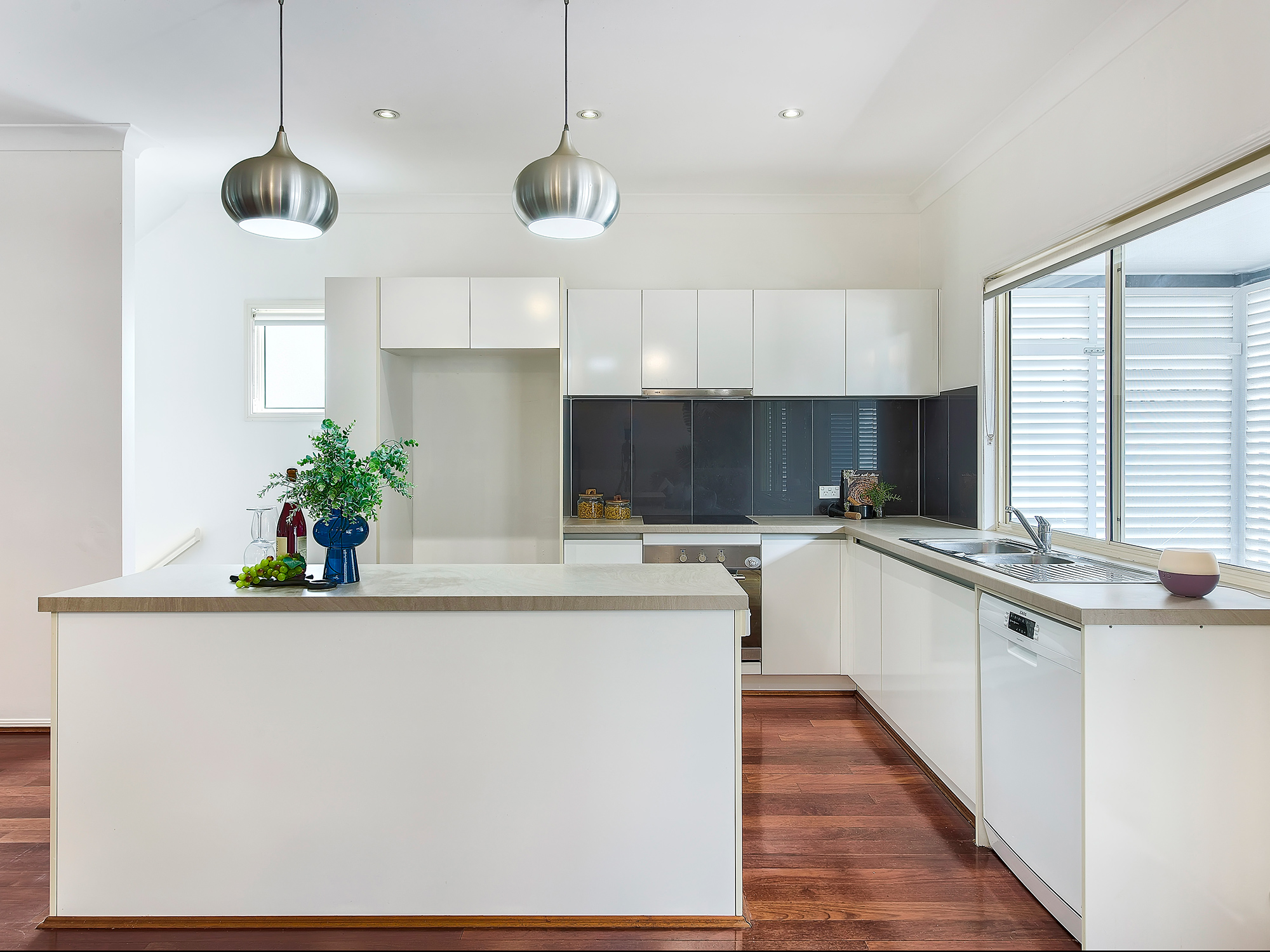 Beautiful timber-look floors welcome you to the entry level where air-conditioned living and dining are laid out in a generous open-plan footprint. There is easy connection to the large kitchen, showing off a gleaming tiled splash back alongside plenty of storage, quality appliances, expansive bench space and a handy island for entertaining.