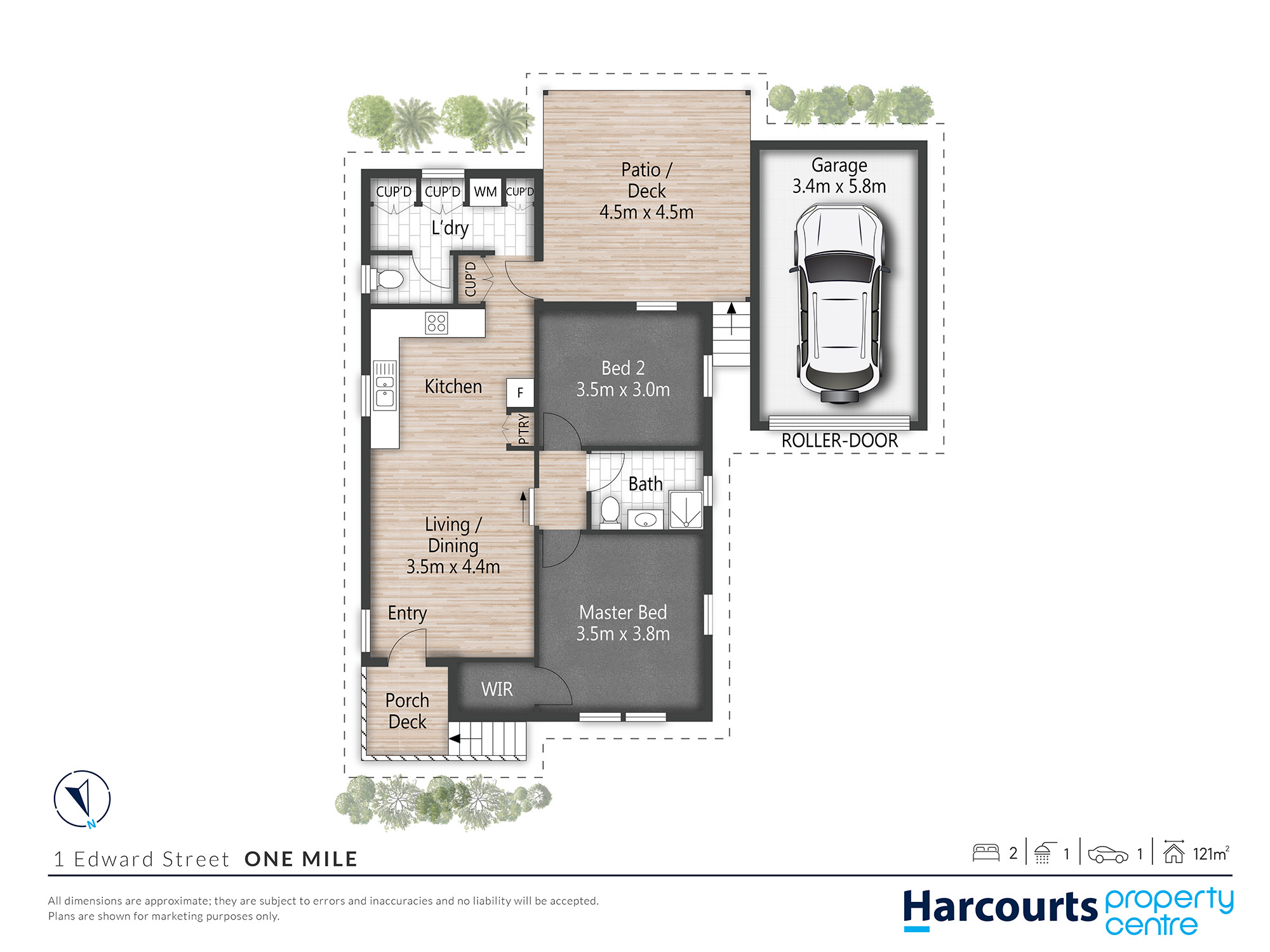 Two bedrooms offer a comfortable retreat, both equipped with ceiling fans. Superb service by the adjacent bathroom. Additional features include a second toilet via Laundry, reverse cycle air-conditioning, and a single garage.