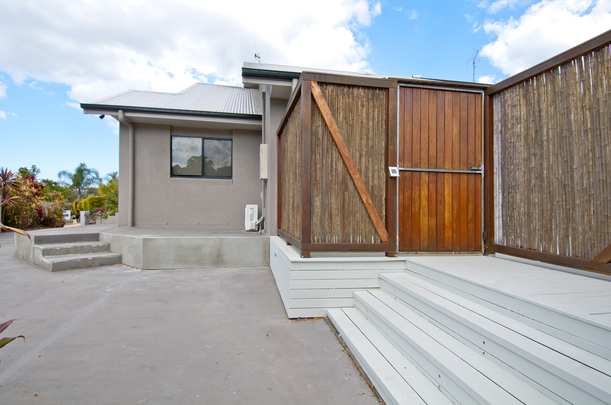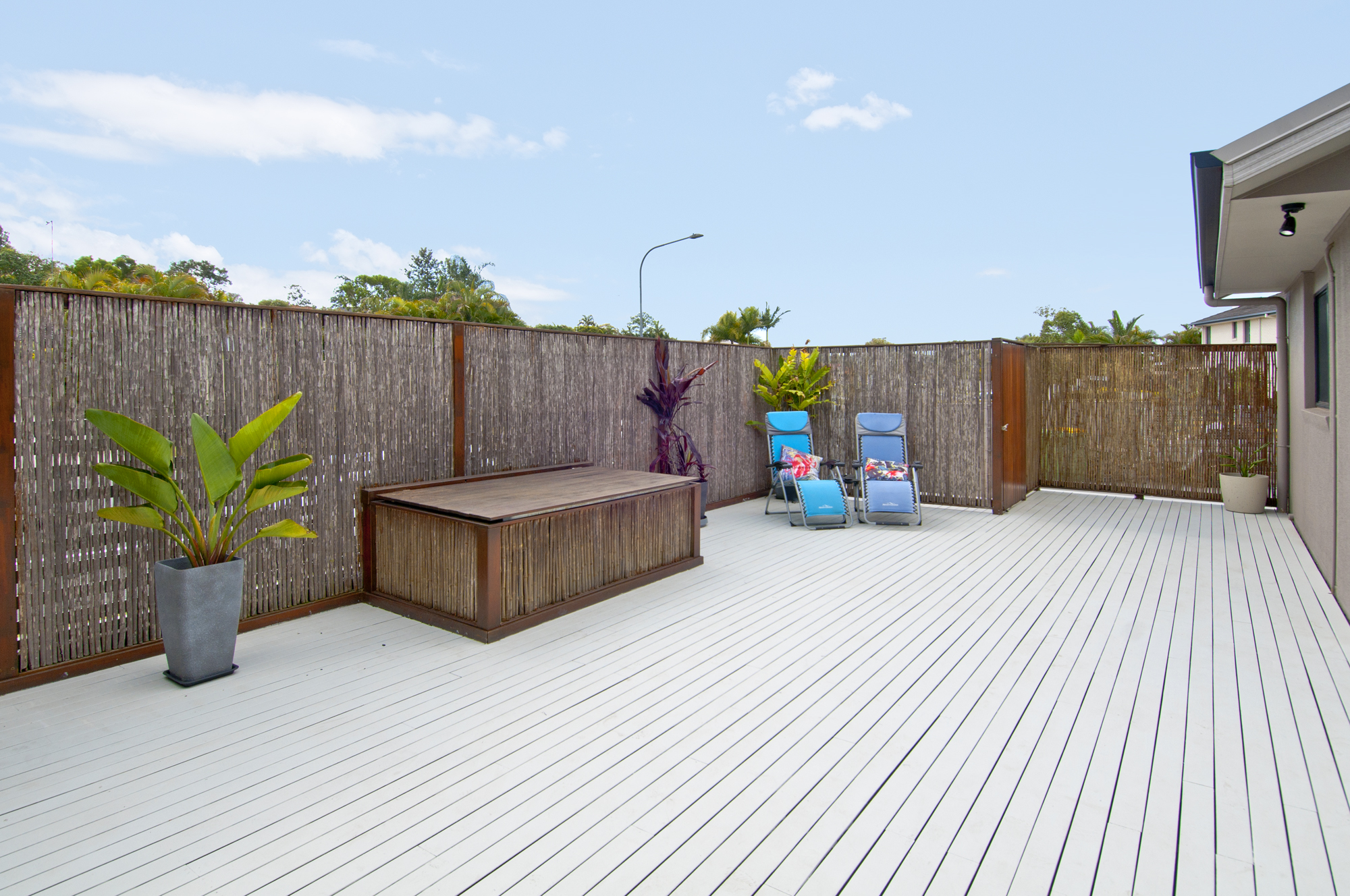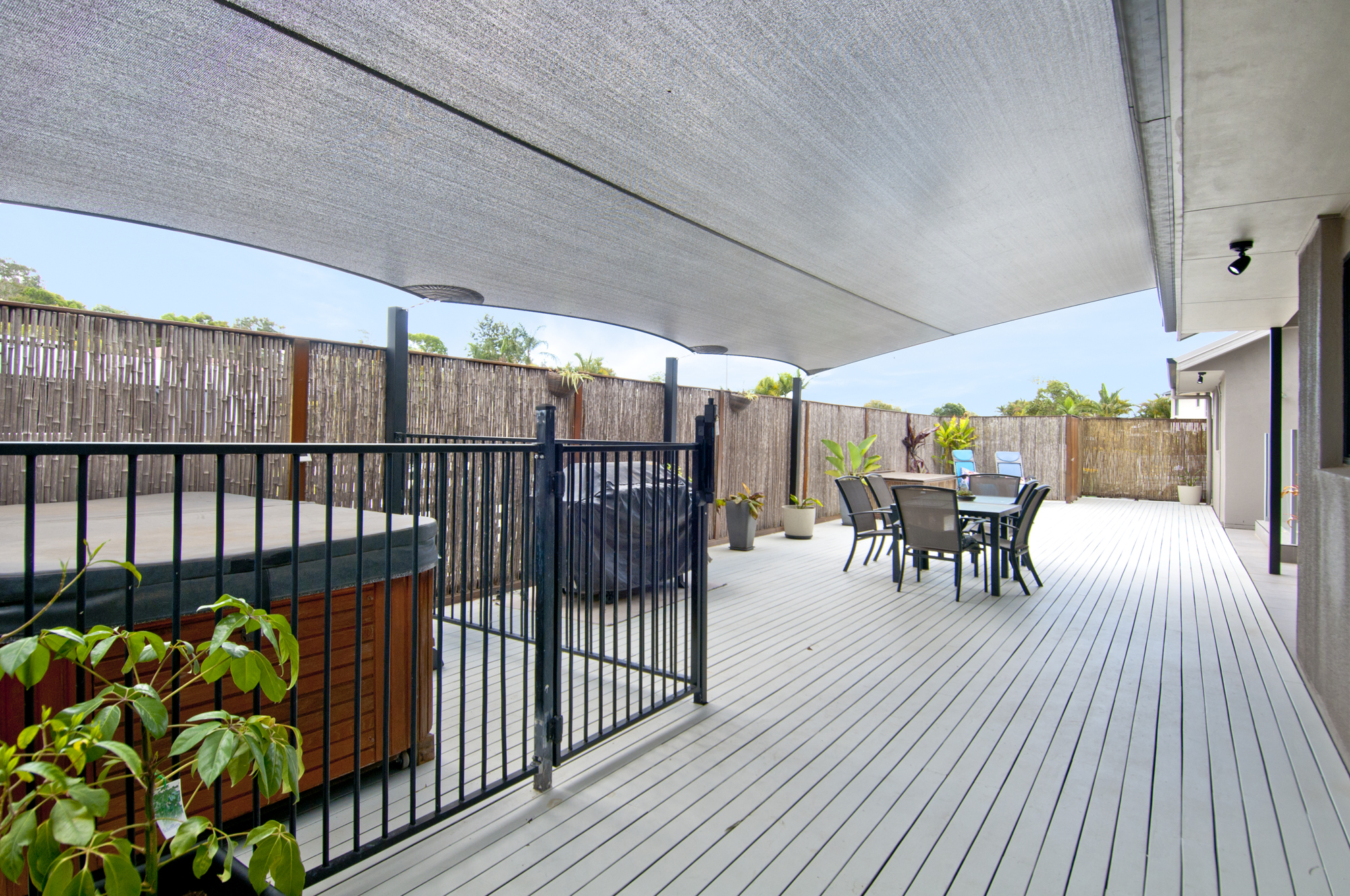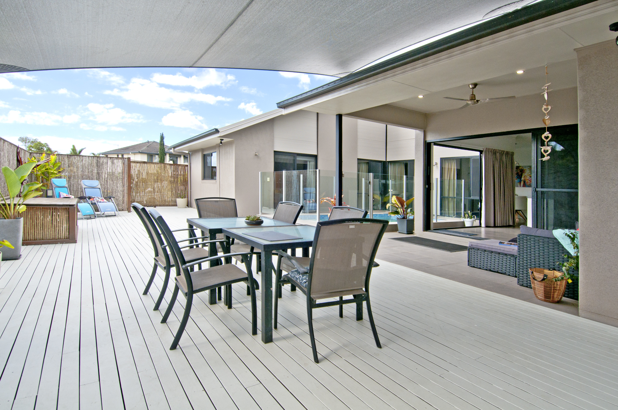 – Entertaining area – large outdoor deck covered with shade sails