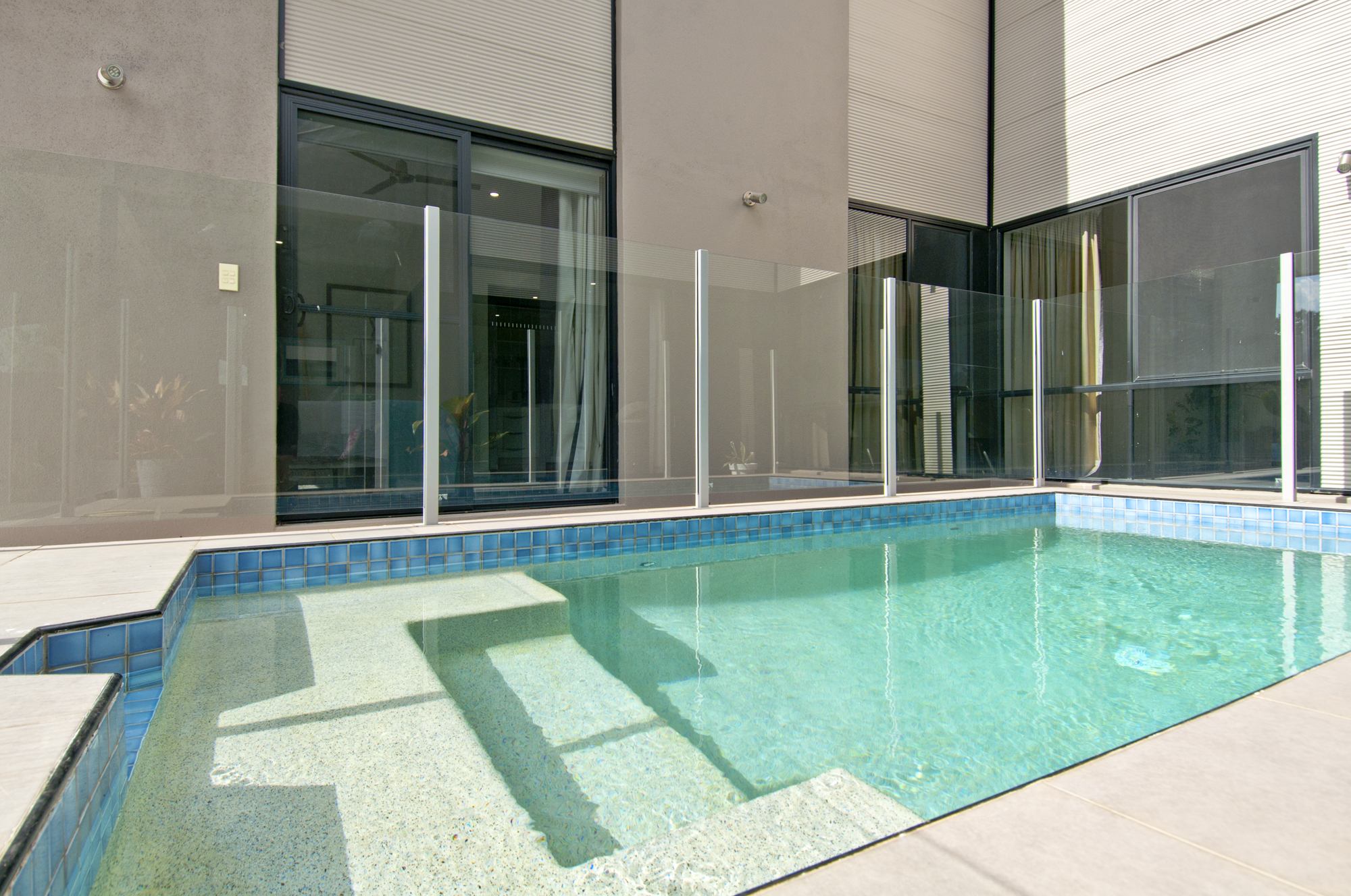 – Pool with clear glass fencing