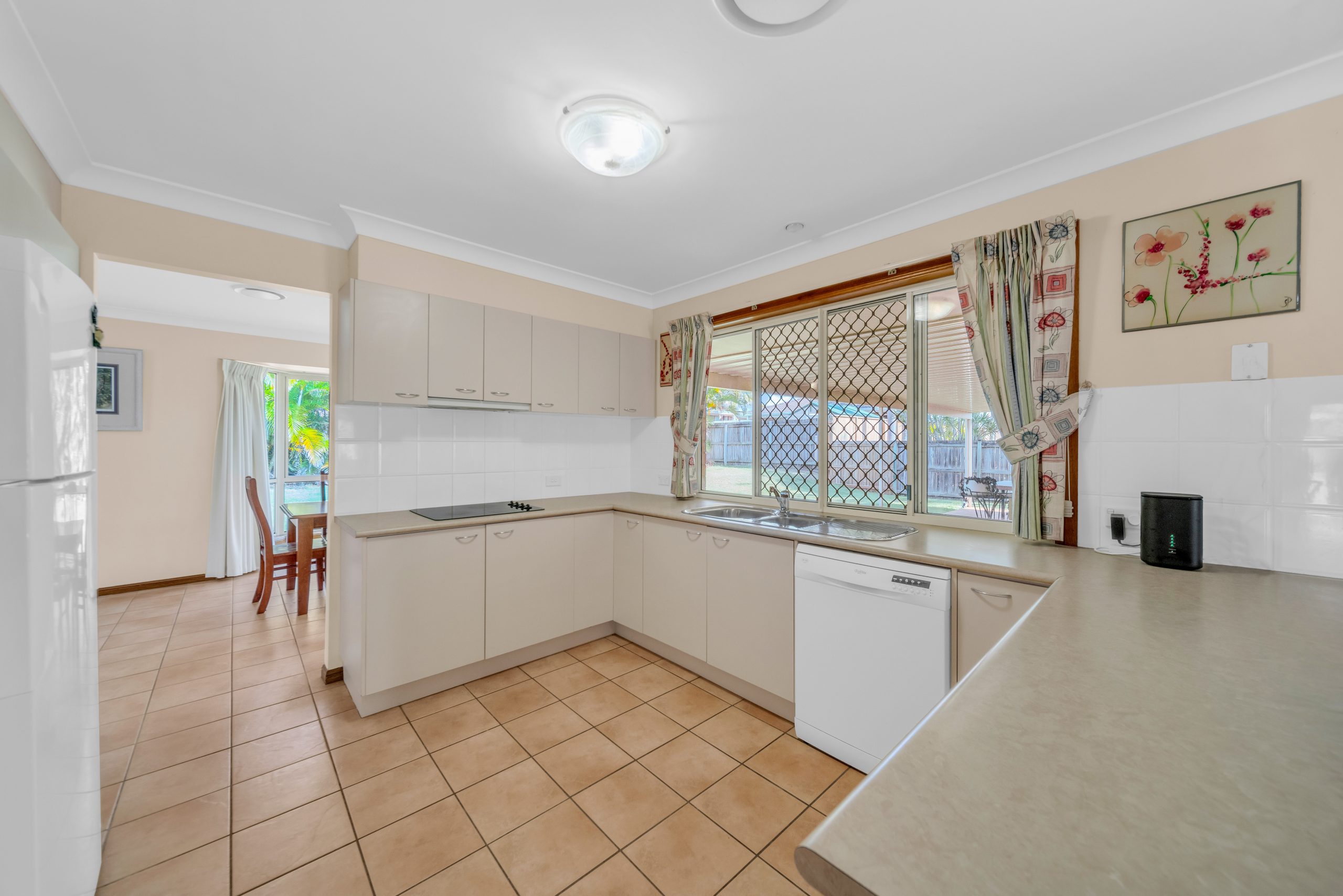 • Centrally positioned kitchen with a view of the large backyard.