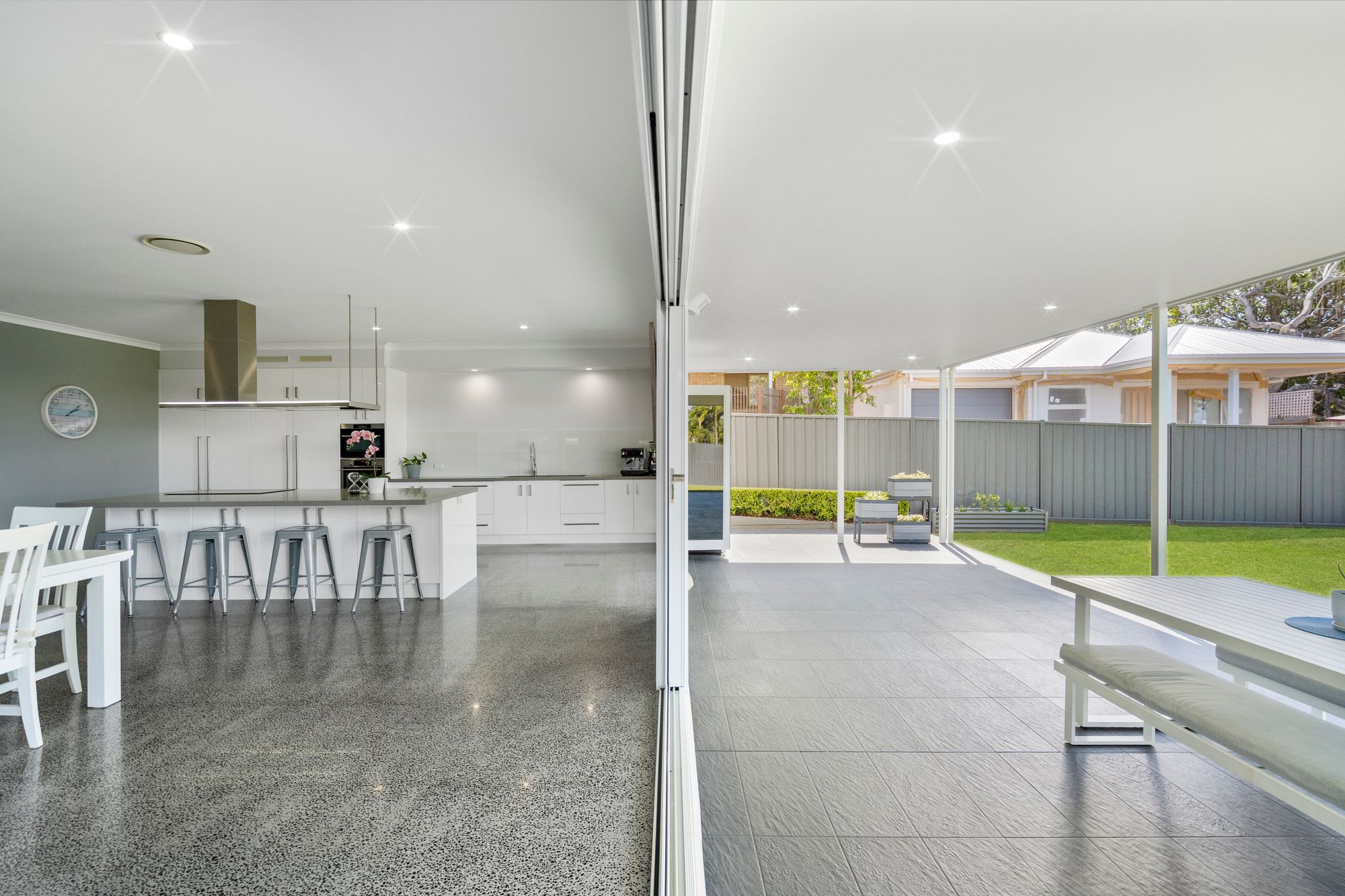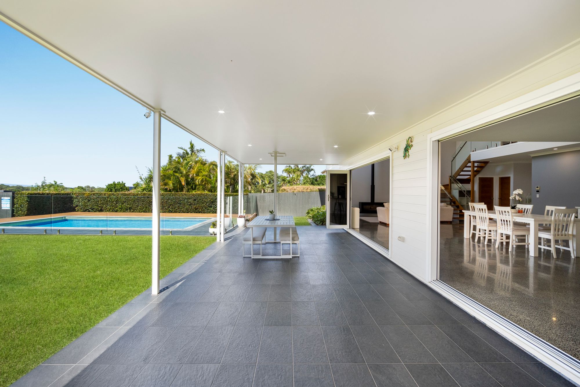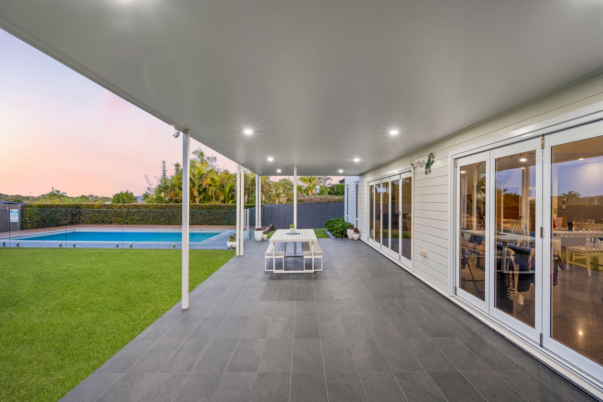 • Full-length tiled alfresco with seamless indoor/outdoor integration via bi-fold doors