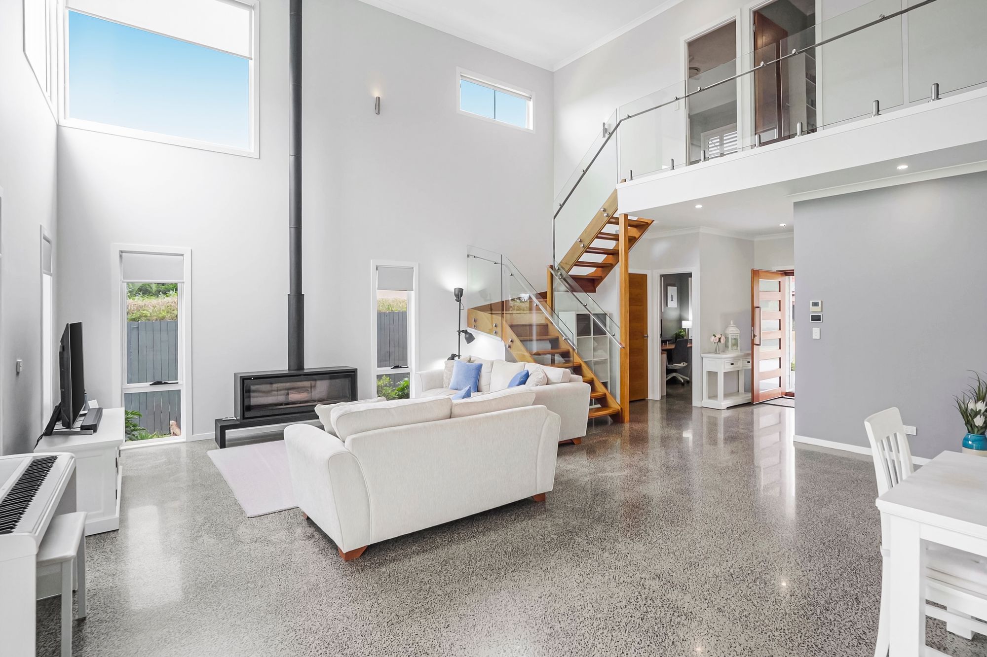• Expansive open-plan living with high ceilings & polished concrete floors