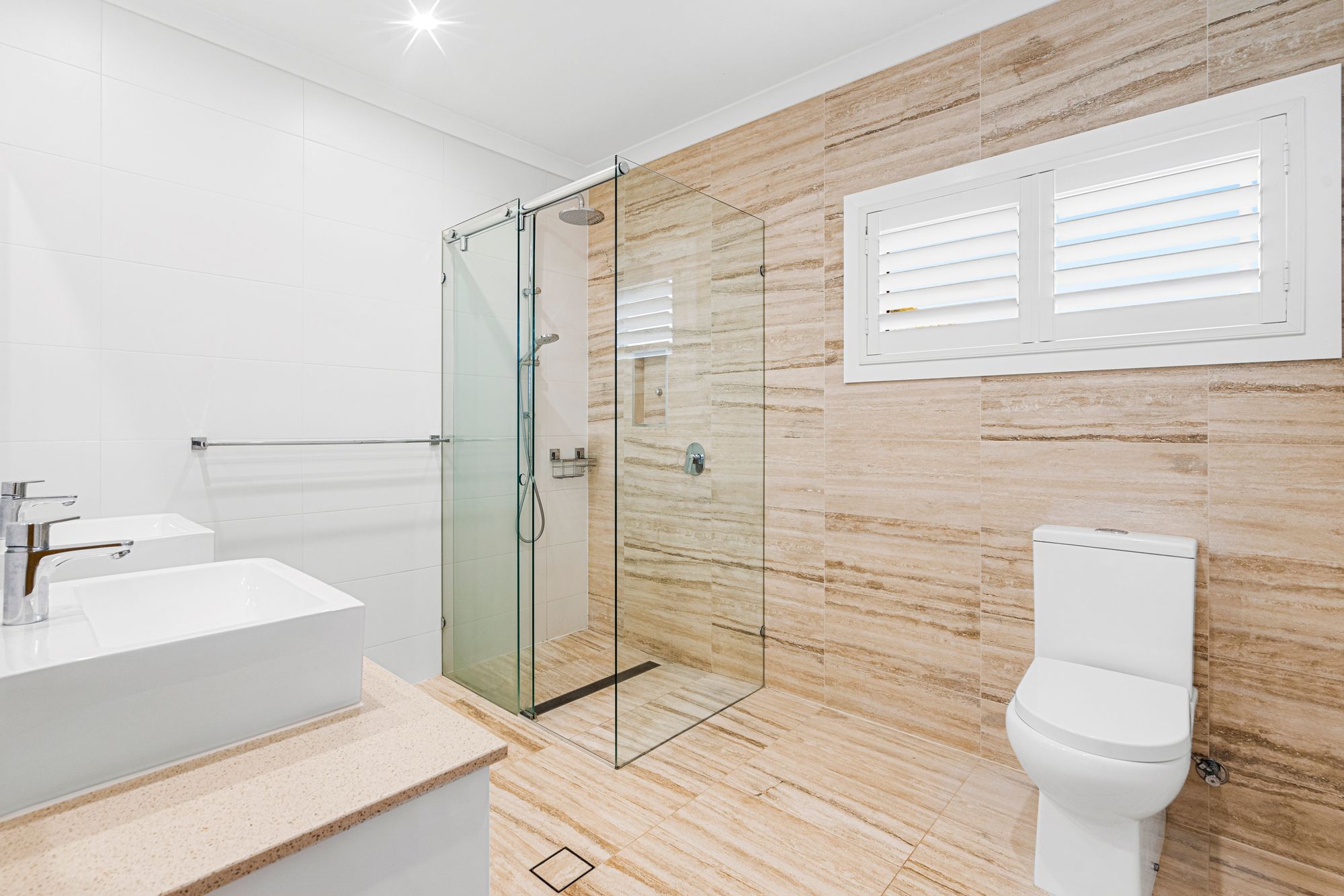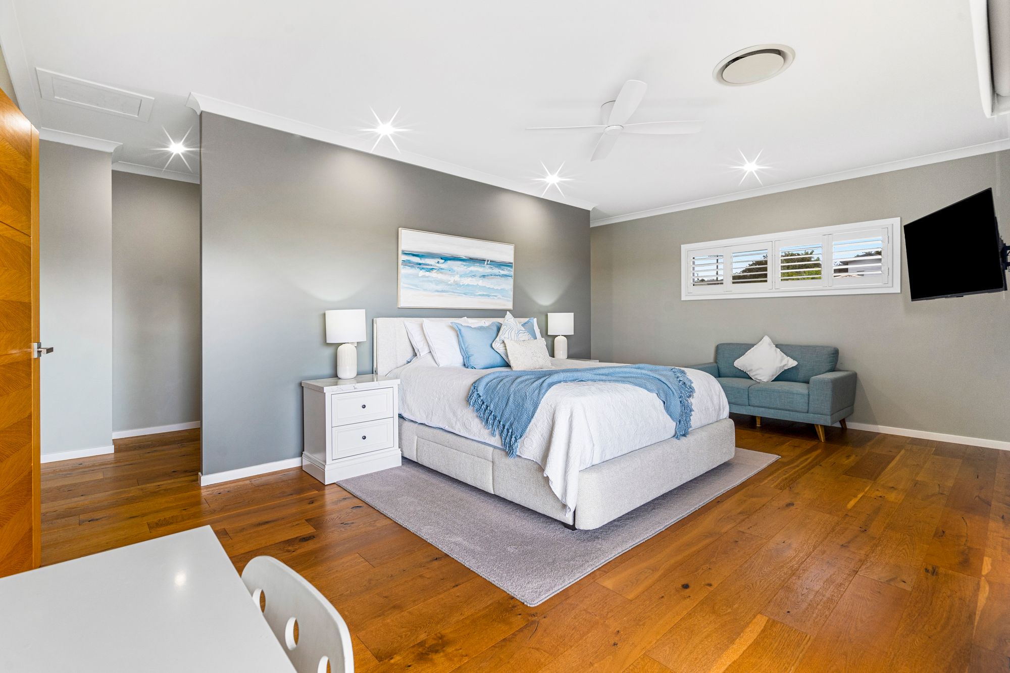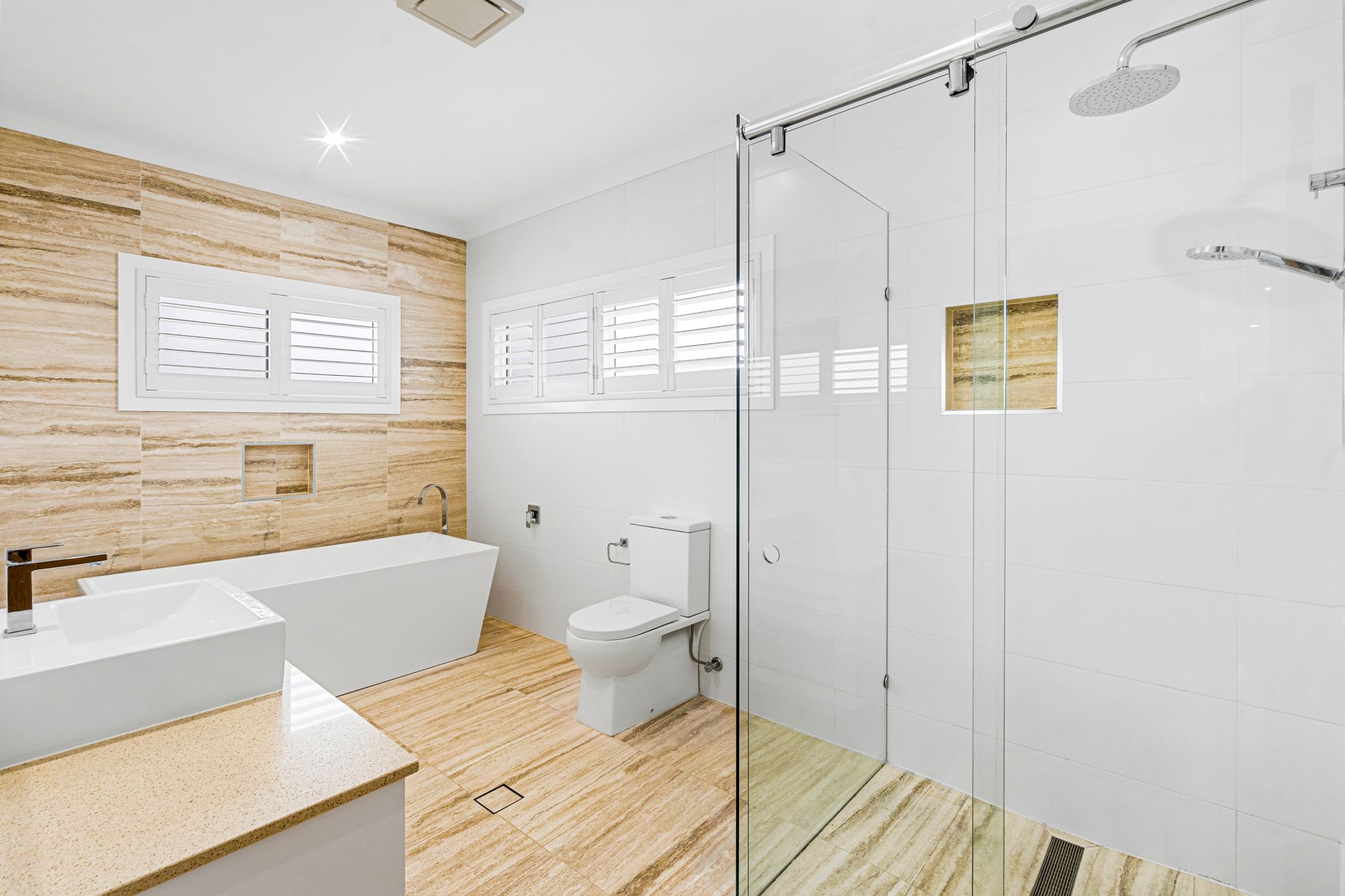 • LED downlights & plantation shutters throughout