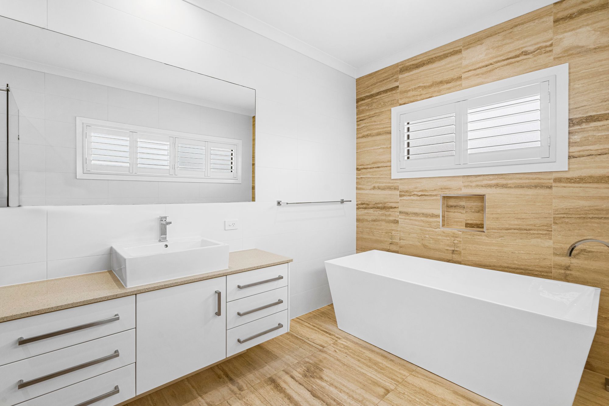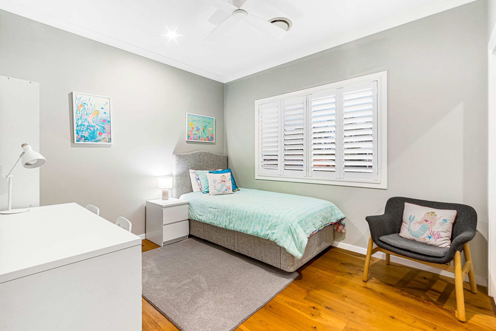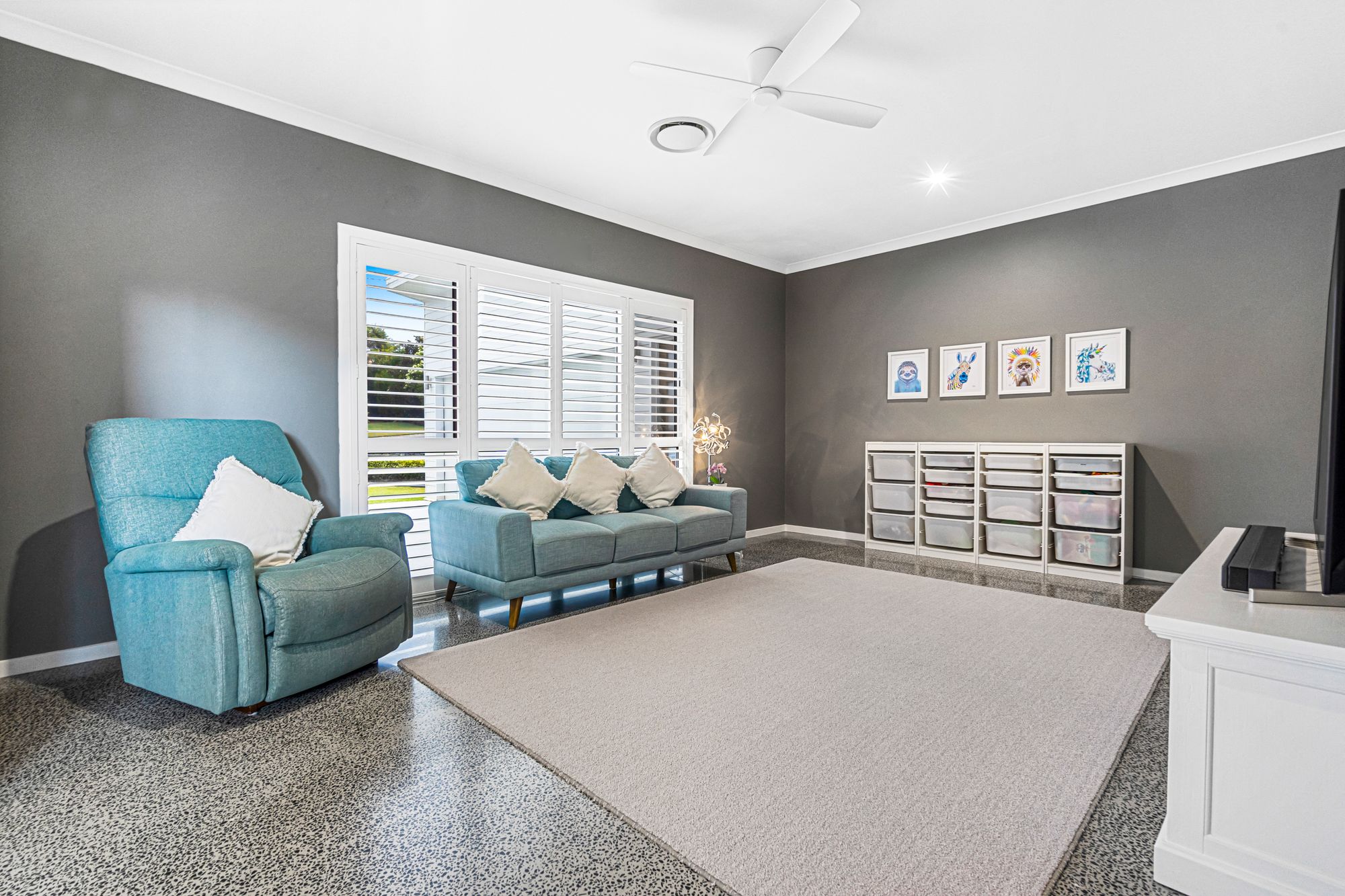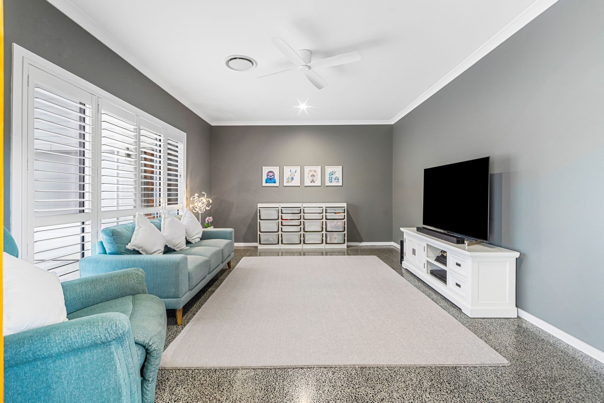 • LED downlights & plantation shutters throughout