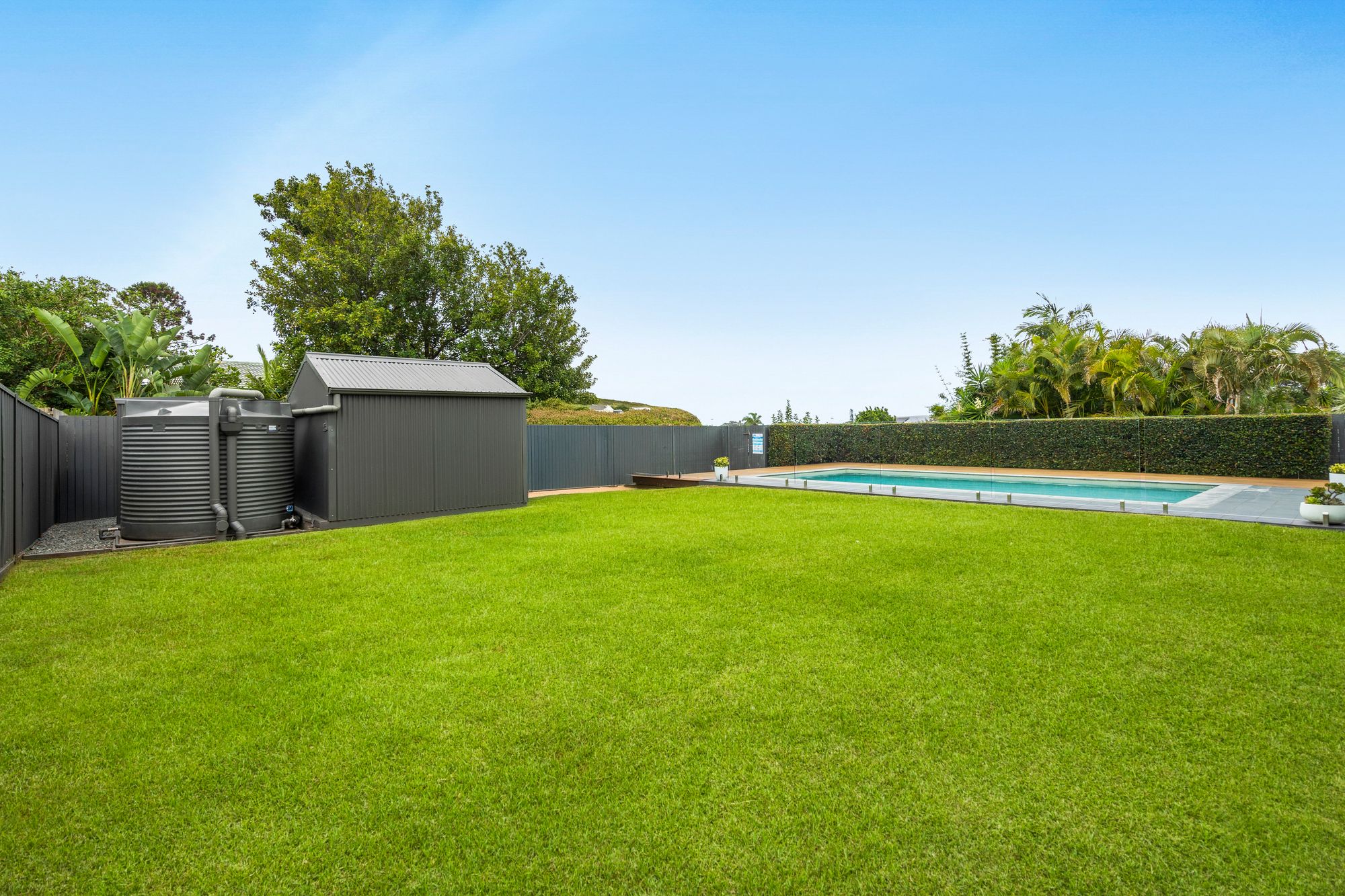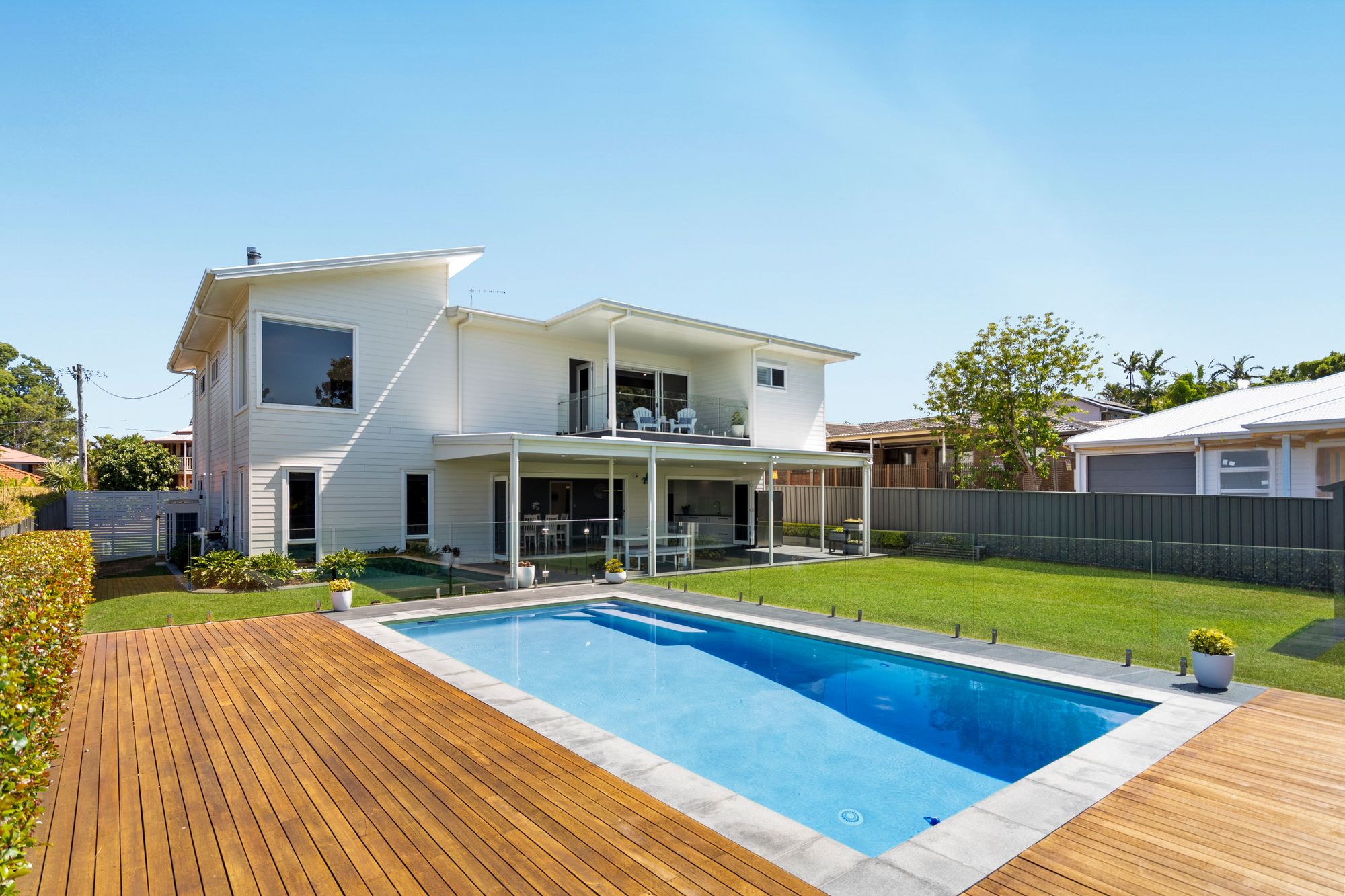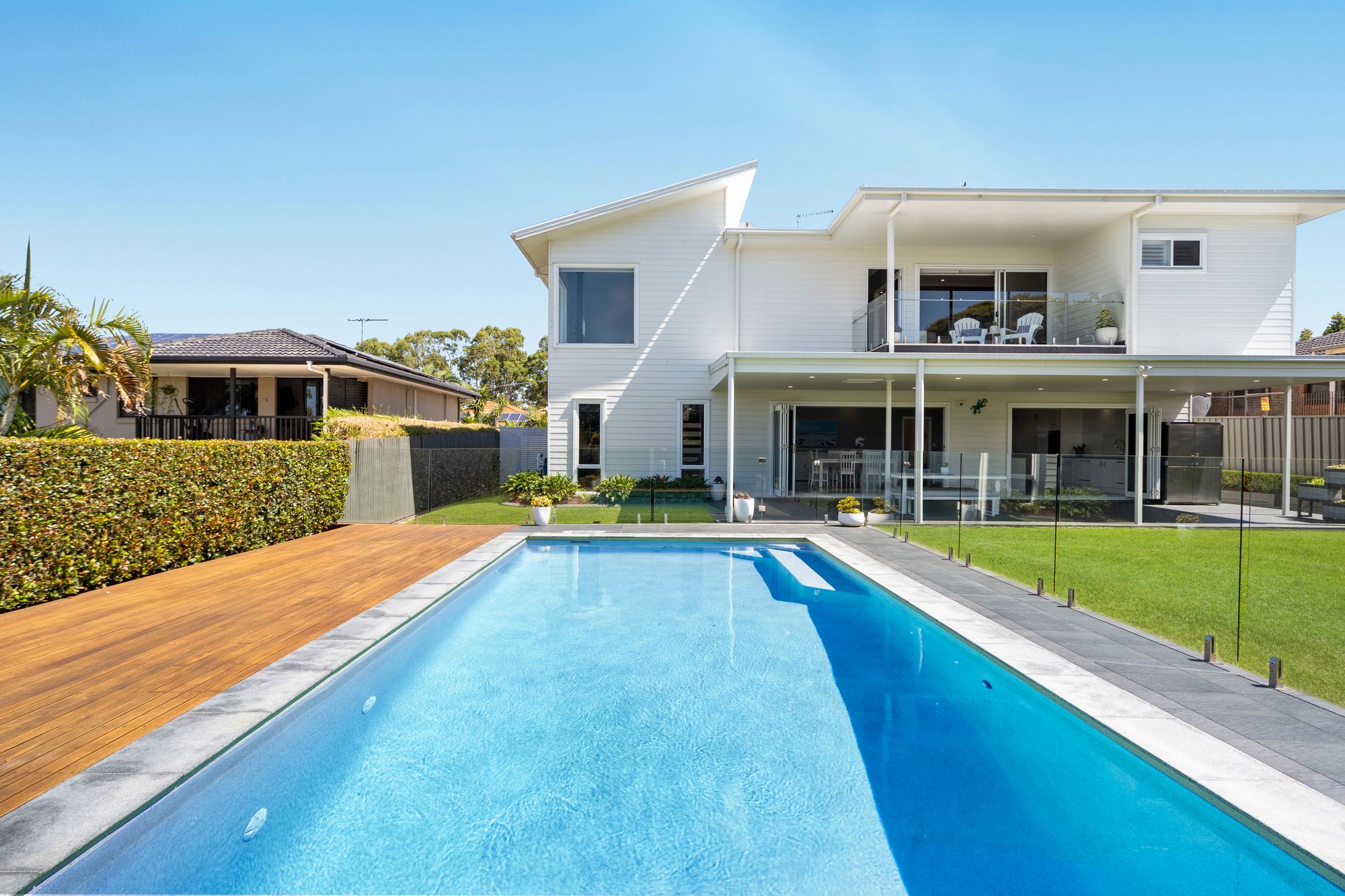 • In-ground magnesium mineral swimming pool with timber deck & glass fencing