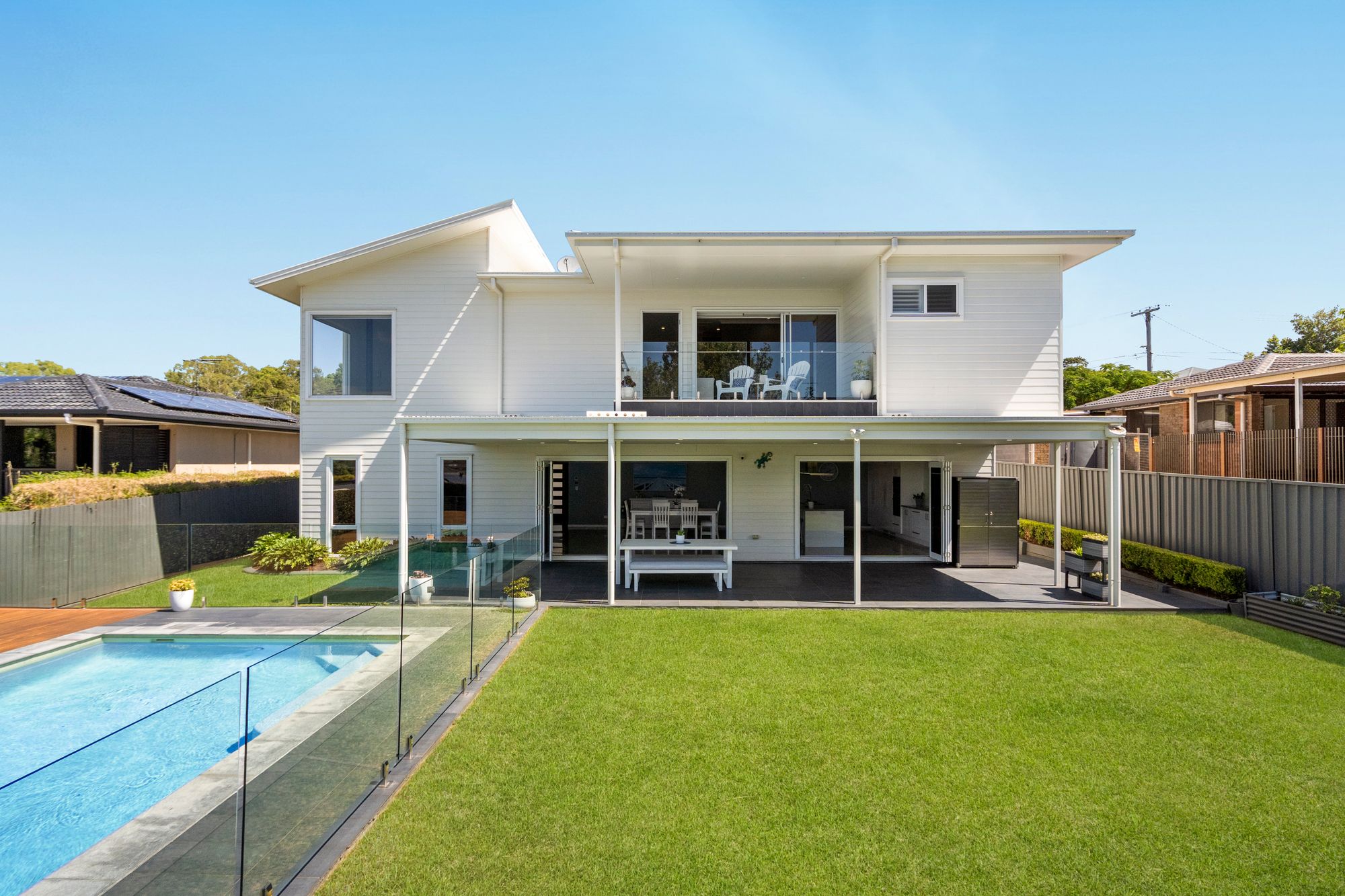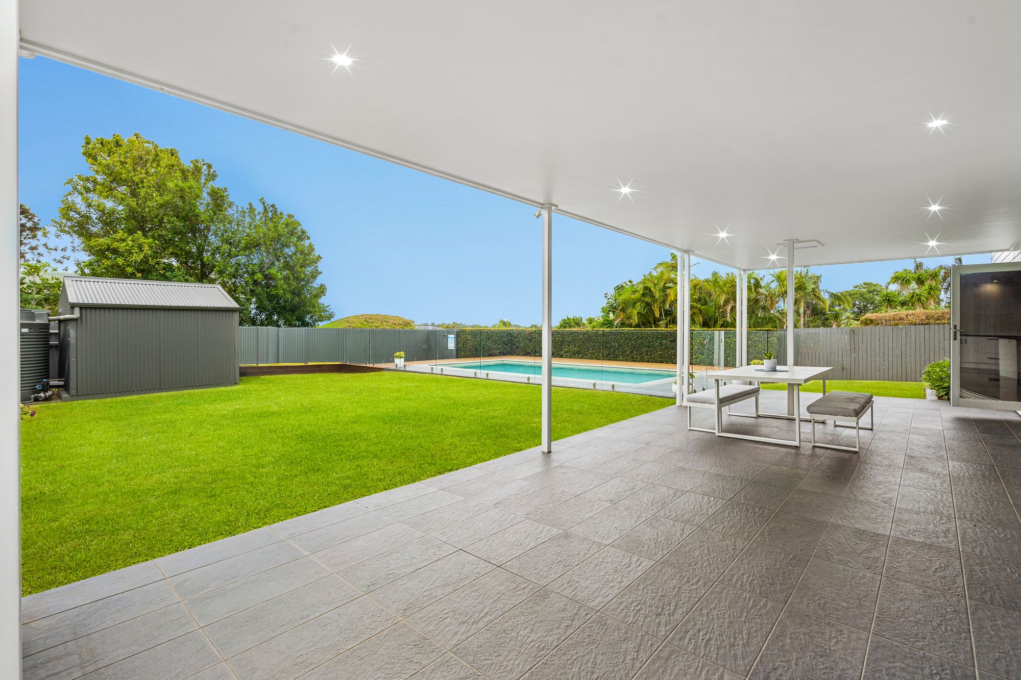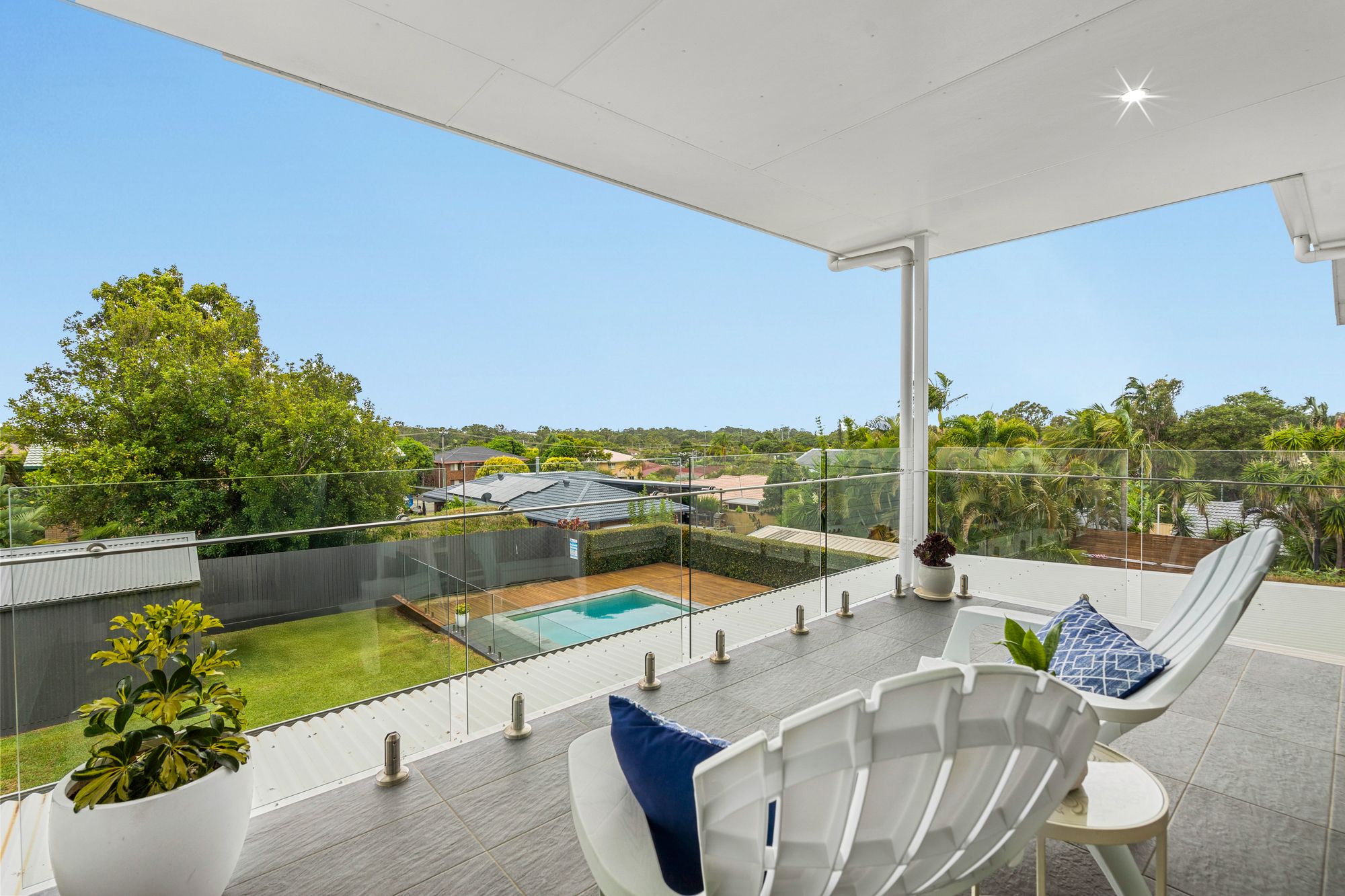 • In-ground magnesium mineral swimming pool with timber deck & glass fencing