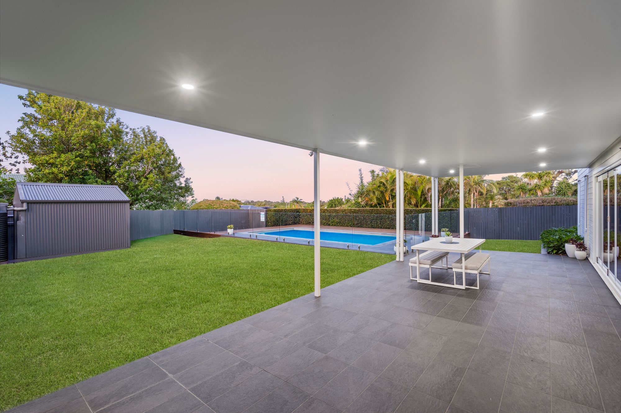 Outdoors, the property continues to impress with a stunning in-ground magnesium mineral swimming pool, complemented by extensive timber decking, glass pool fencing, and landscaped gardens. The expansive 866sqm block also offers side access, a shed, and ample space for additional vehicles, a boat, or caravan.
