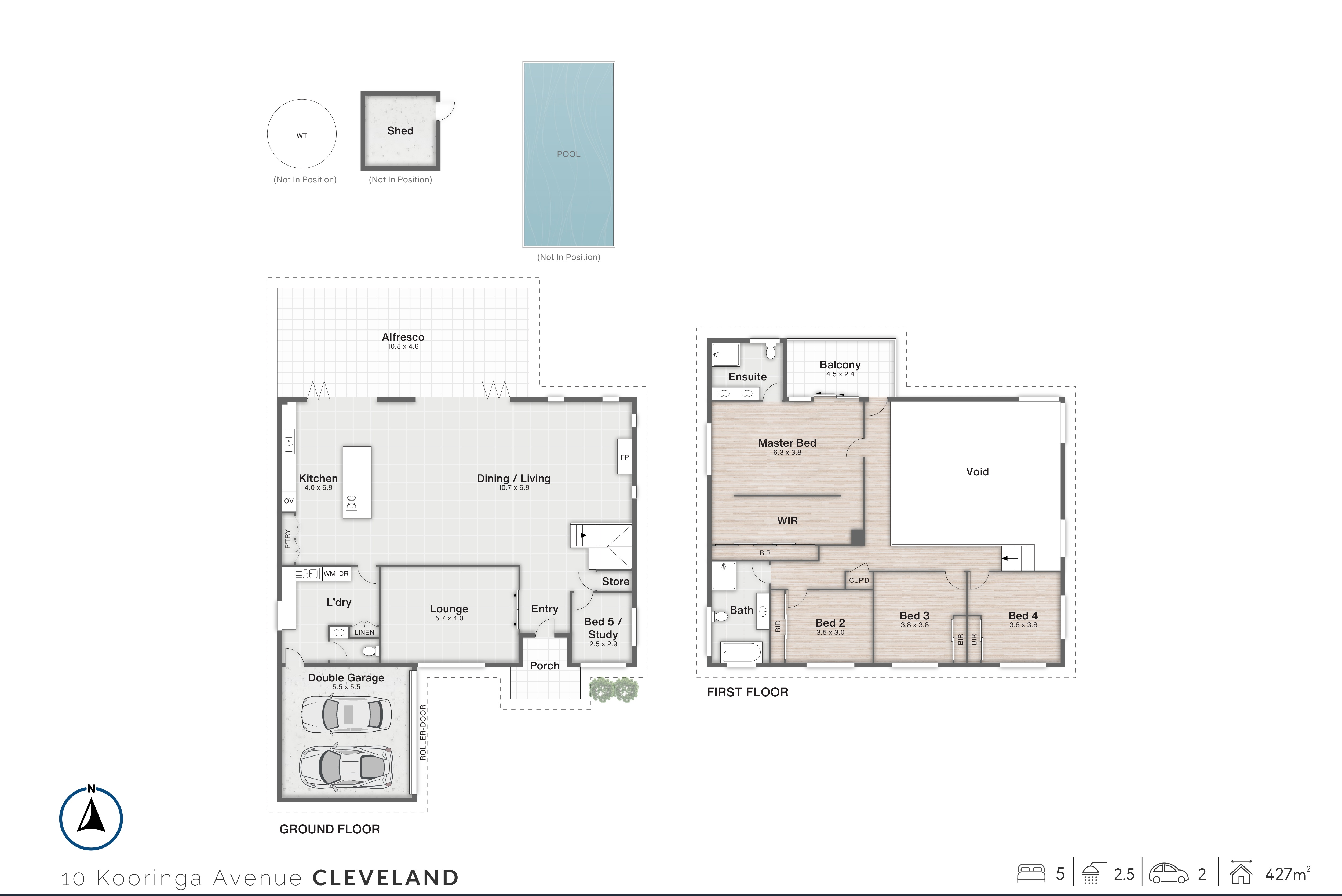 • Double garage plus additional off-street parking, side access & shed