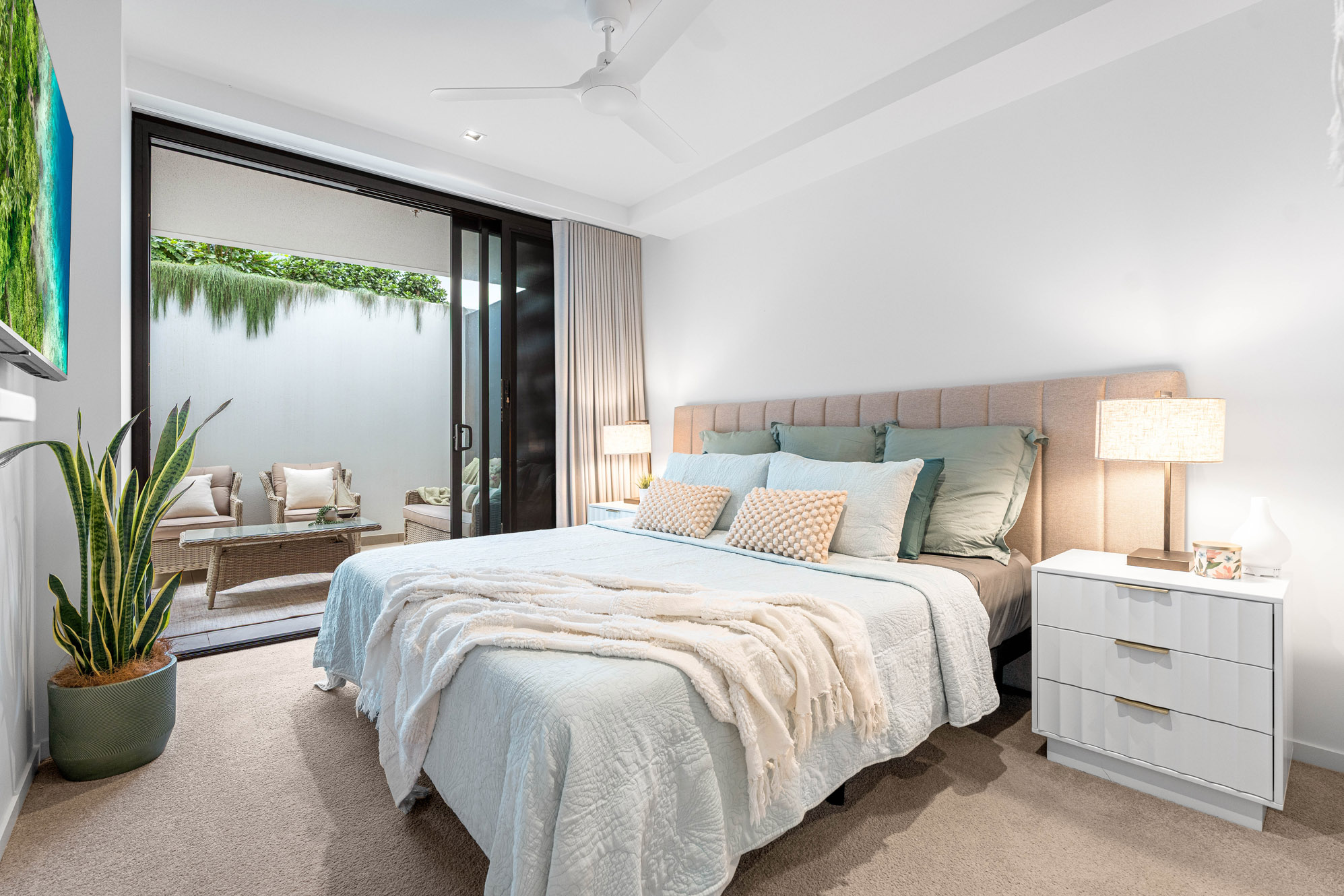 Step into a rare level of apartment living at Apartment 101 in the Catalina, Wynnum’s benchmark for design, lifestyle, and location. Set in an exclusive complex completed in 2024, this ground-floor residence blends generous indoor living with an expansive private courtyard and garden, offering the space of a house with the ease of apartment living.