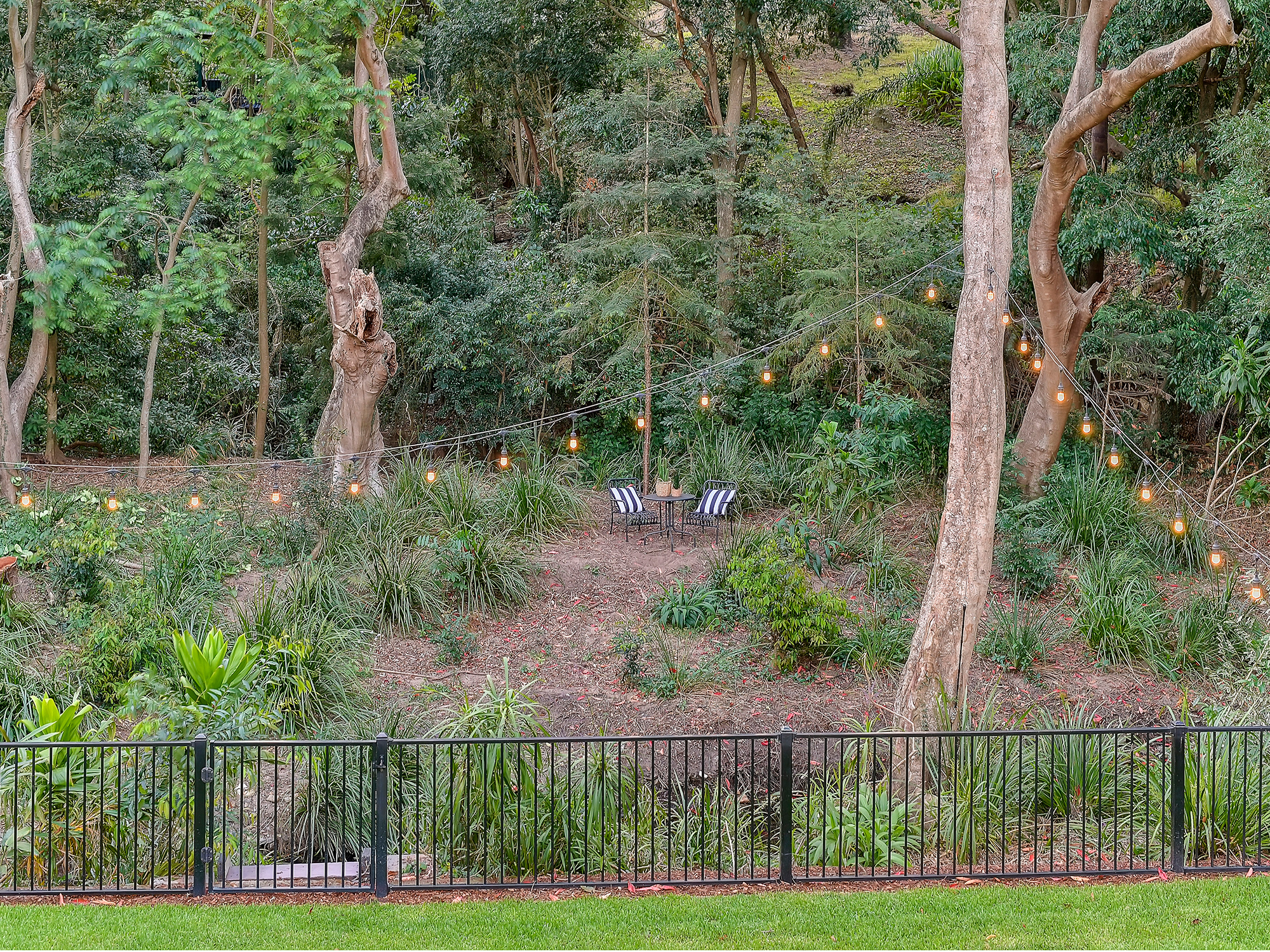 Taking full advantage of its superb setting, the outdoor entertaining continues beneath the home with a huge, covered entertainer’s terrace spilling to the backyard. A sparkling in-ground swimming pool is perfectly placed for endless summer enjoyment, while festoon lighting creates a whimsical evening aesthetic. A pedestrian gate offers direct access to your private retreat looking back to house, enhancing the incredible sense of space and privacy, with established greenery and generous lawn ensuring plenty of room for children and pets to play.