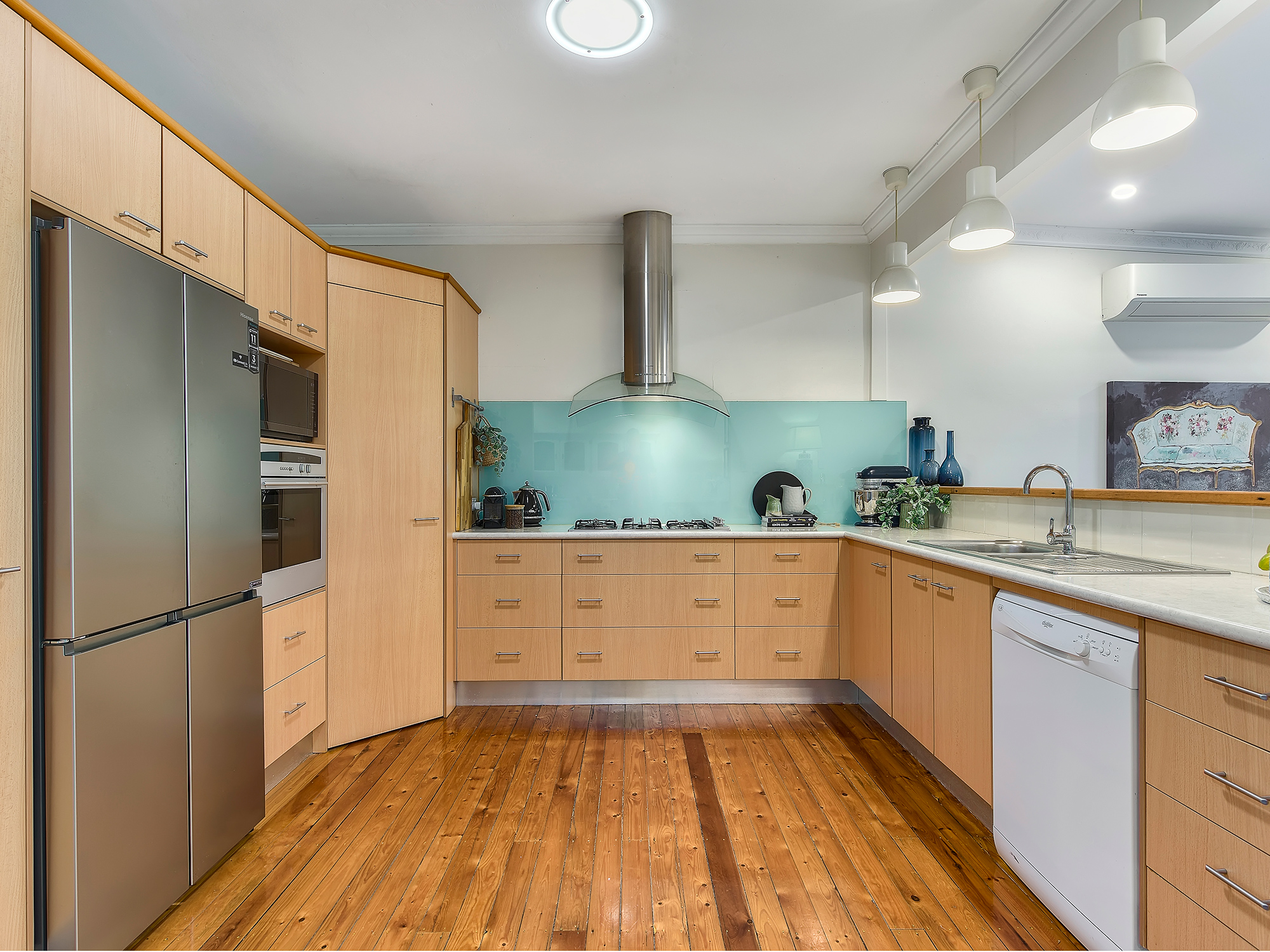 Polished timber floors and ornate cornicing bring timeless character throughout the spacious interior, where open-plan living and dining zones flow through French doors to an expansive entertainer’s deck. With a northerly aspect capturing cooling breezes and offering a stunning outlook over the lush backyard and treetops beyond, it’s an outdoor haven designed for gatherings or quiet retreat whilst seamlessly extending your lounging and dining options. Detailed with quality appliances, the adjacent kitchen is an impressive workhorse, boasting tremendous storage and expansive bench space in a generous footprint.