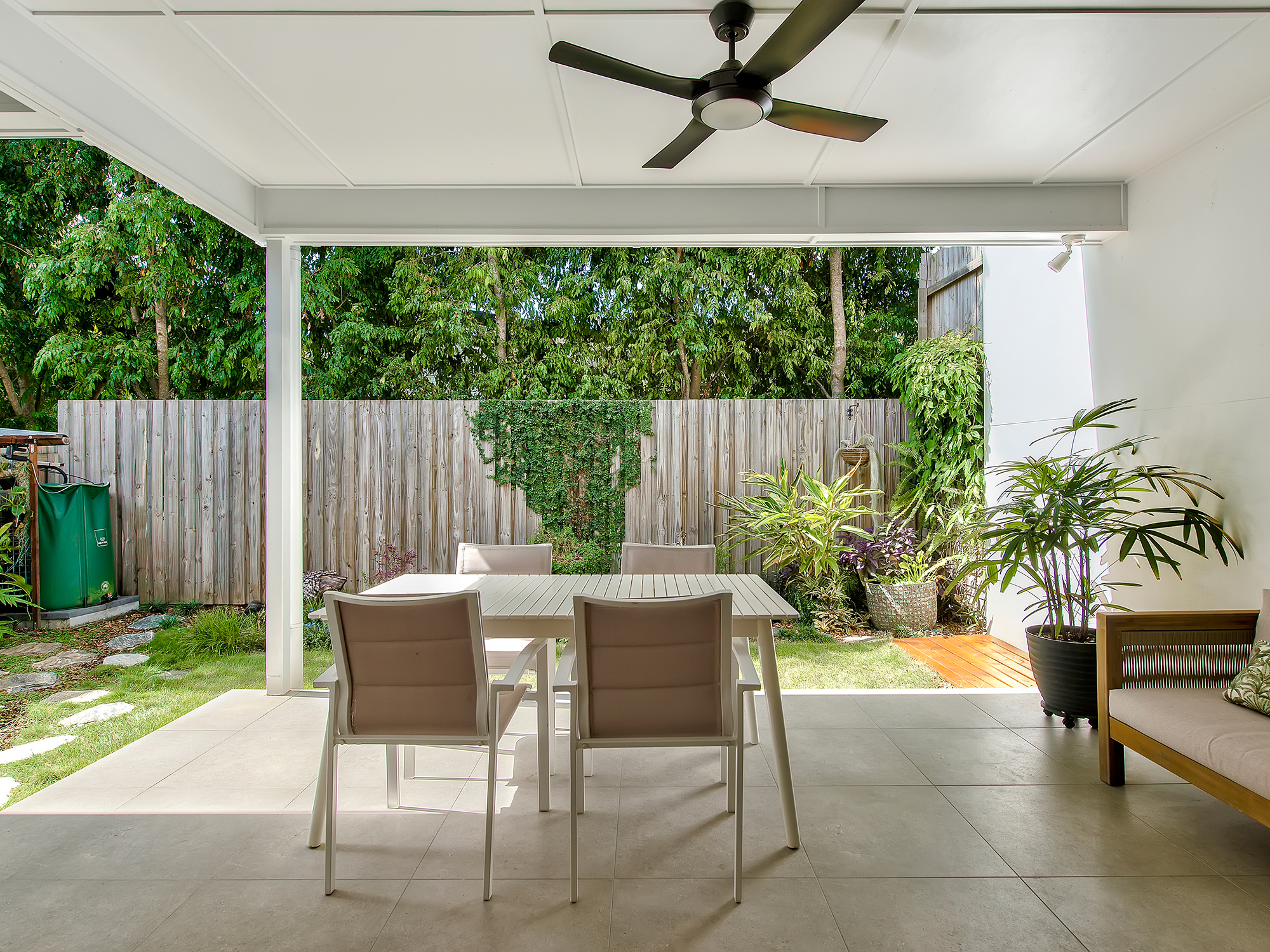 • Private, low-maintenance backyard with leafy outlook and no road noise