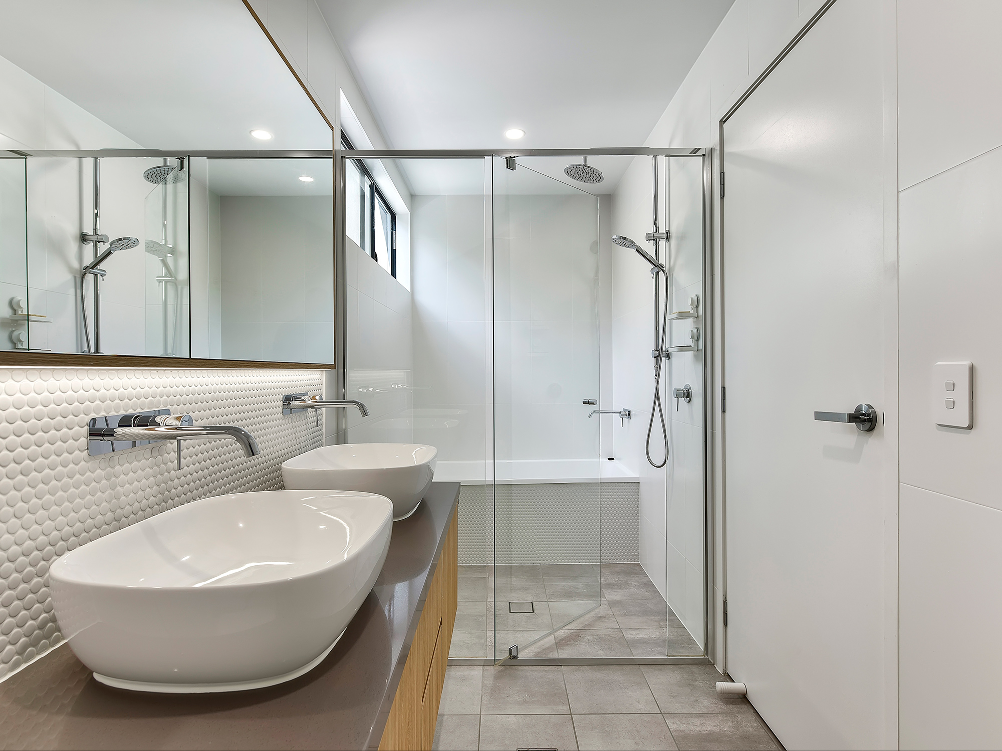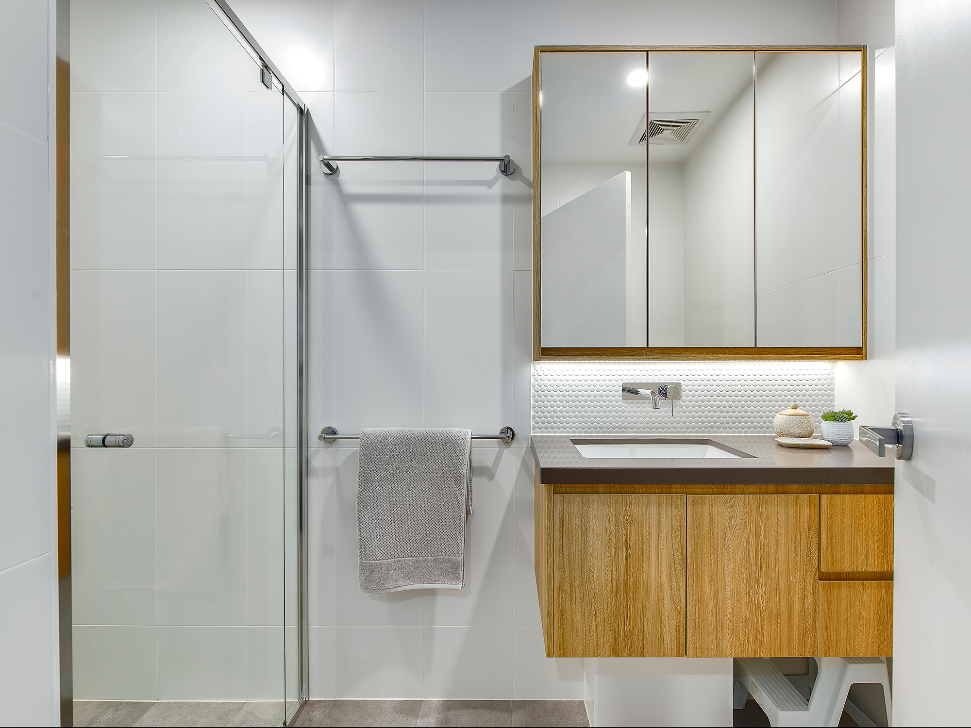 • Stylish main bathroom with mirrored storage