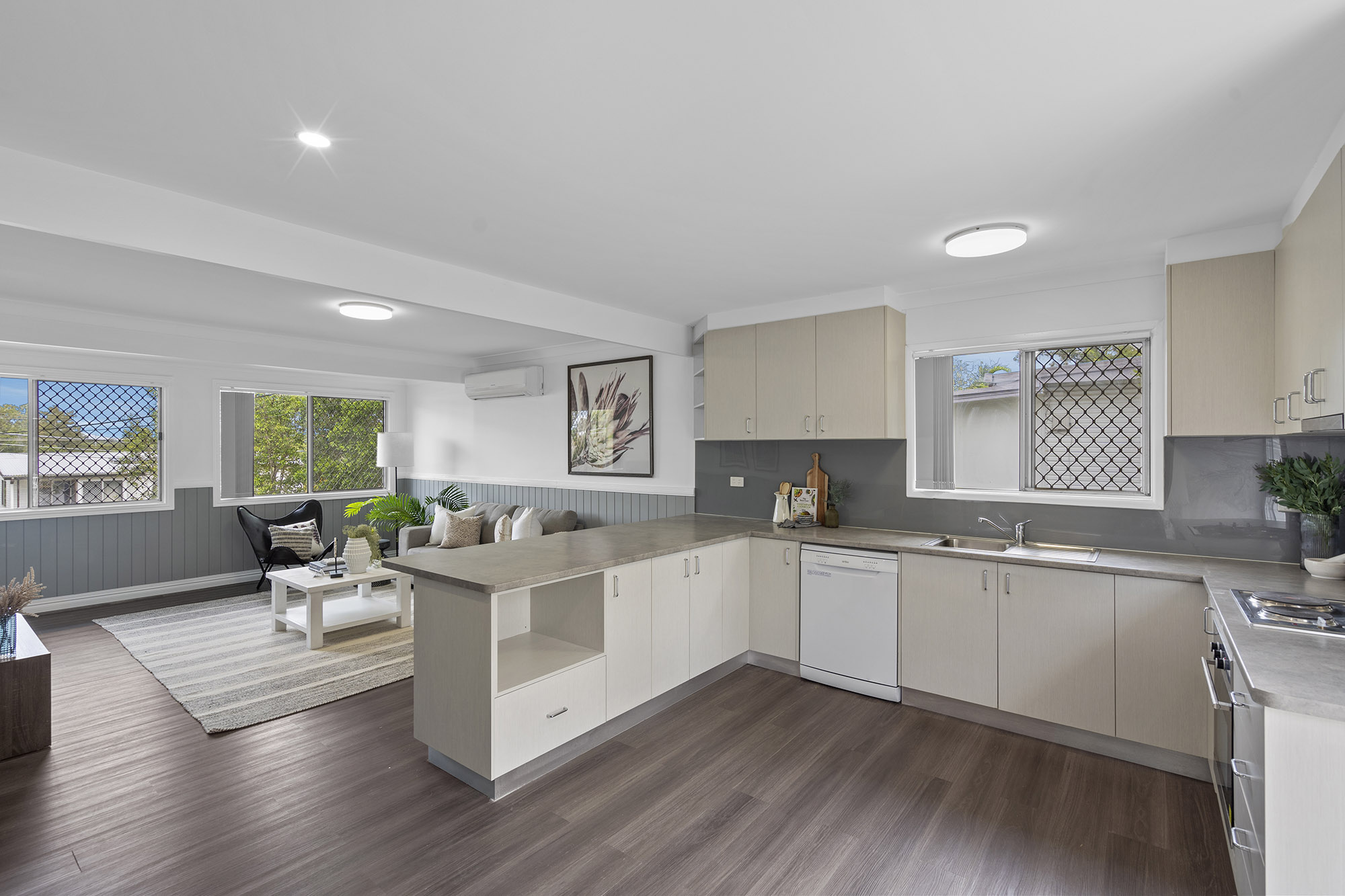 Looking for a versatile high-set home with a range of features that is ideal for dual living with 4 bedrooms and 2 bathrooms there is plenty of space for a larger family to utilize 2 separate living quarters. The inclusion of 2 kitchens and 2 living areas provides additional flexibility and privacy for each family unit. The internal stairs make it an easy move between the upper and lower levels of the home and more importantly a safety feature if you wish to have teenage children downstairs.