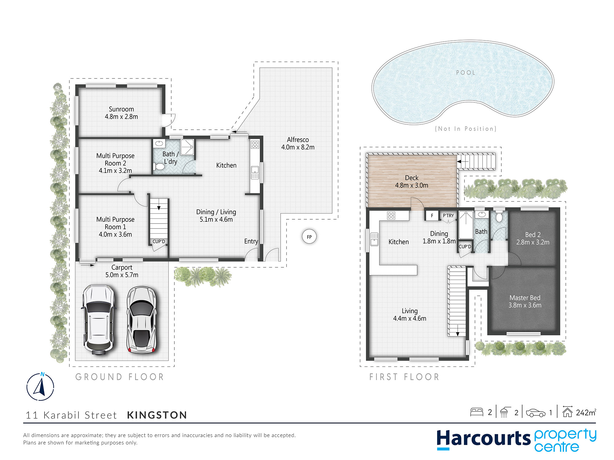The rear deck overlooking the inground pool provides and relaxing outdoor space for both families to enjoy. Perched on a 607sqm block, there is plenty of room for outdoor activities and entertaining.