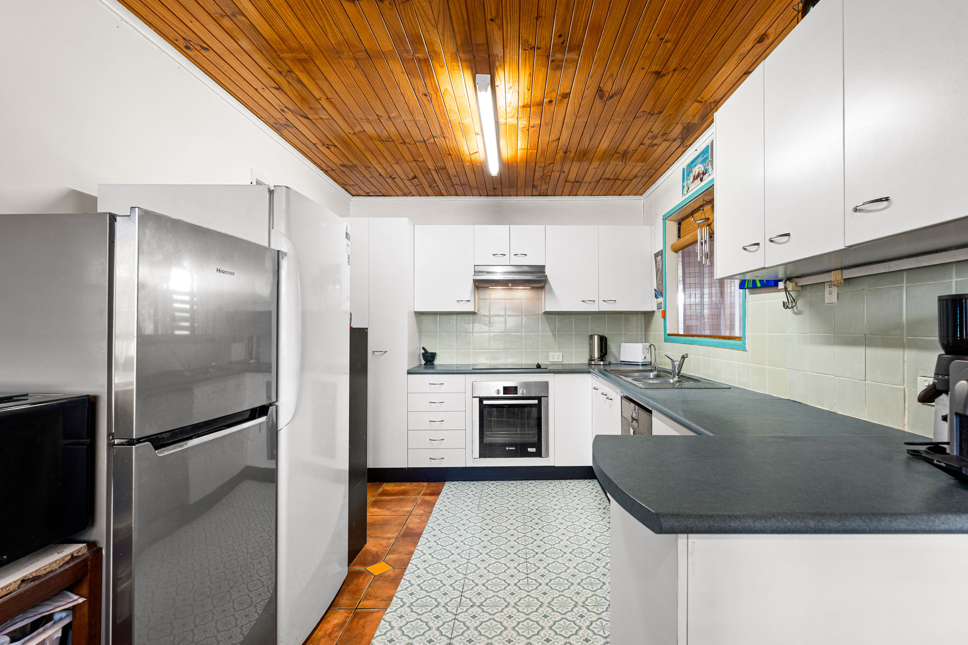 Upstairs, the home welcomes you with light-filled interiors and warm timber floors that flow through the open plan living and dining area. This central space is designed for everyday comfort, with air conditioning and ceiling fans ensuring year-round enjoyment. The adjoining kitchen is both practical and spacious.