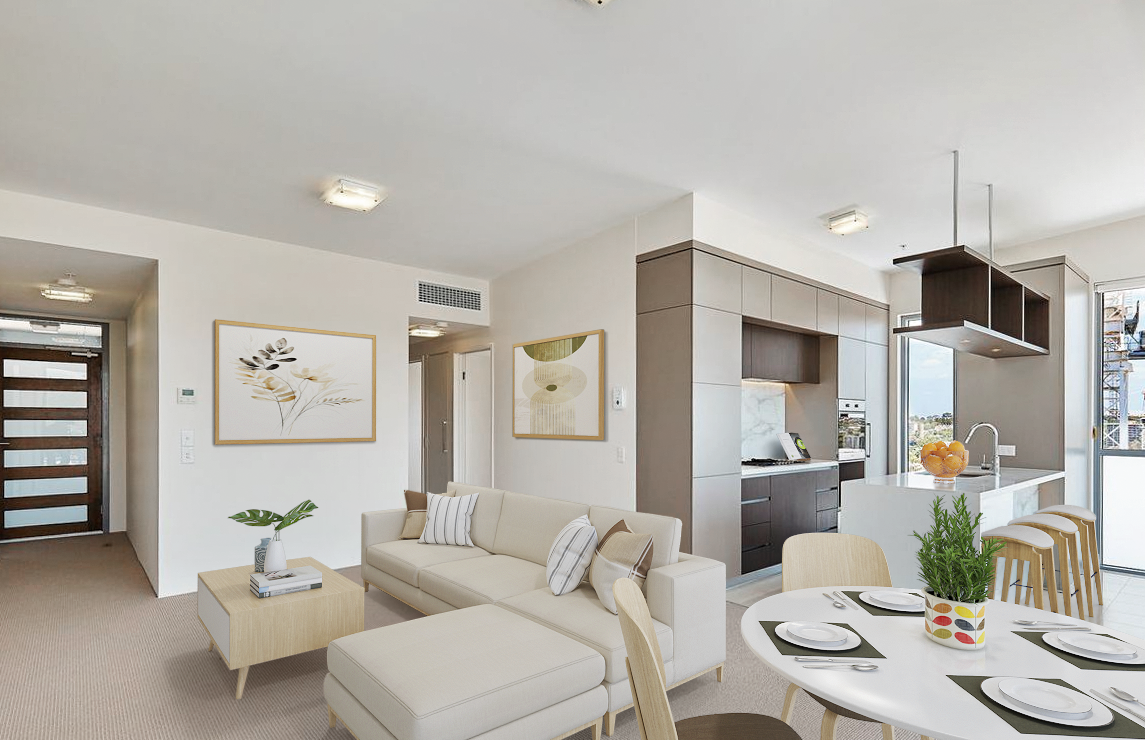 Inside, generous proportions set this apartment apart. A very spacious open-plan living area is complemented by two dining spaces, offering plenty of room for family living and entertaining. Outdoor entertaining space hasn’t been spared, with a full-length balcony ideally oriented for extended sunset and evening entertaining. Luxurious walk-through wardrobe frames the entrance to the master bedroom ensuite.