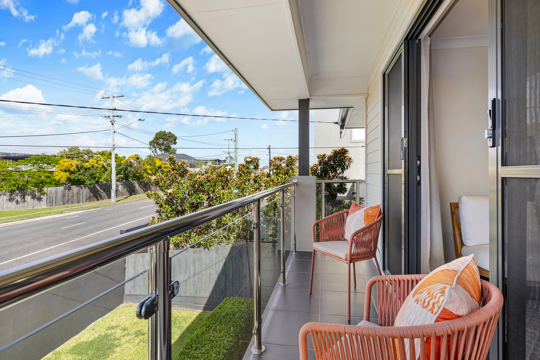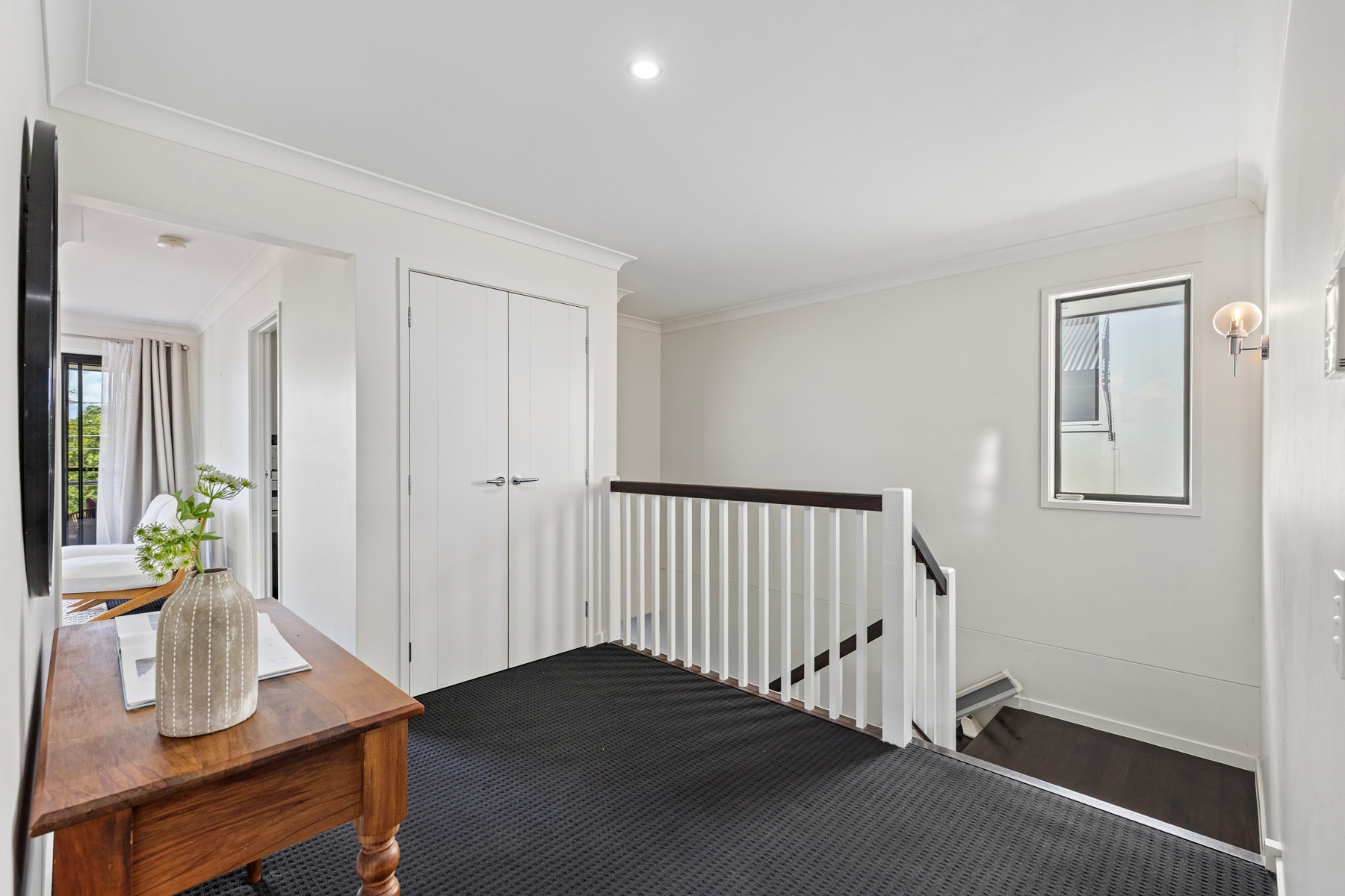 Additional upstairs living area opening to a balcony with Gabba glimpses