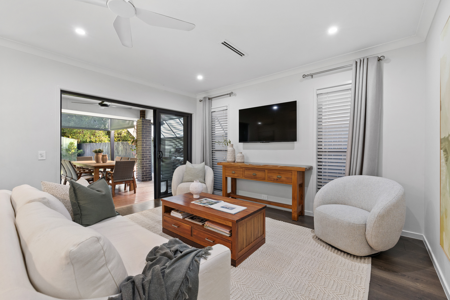 Spacious open-plan living and dining flowing seamlessly to the outdoor entertaining area