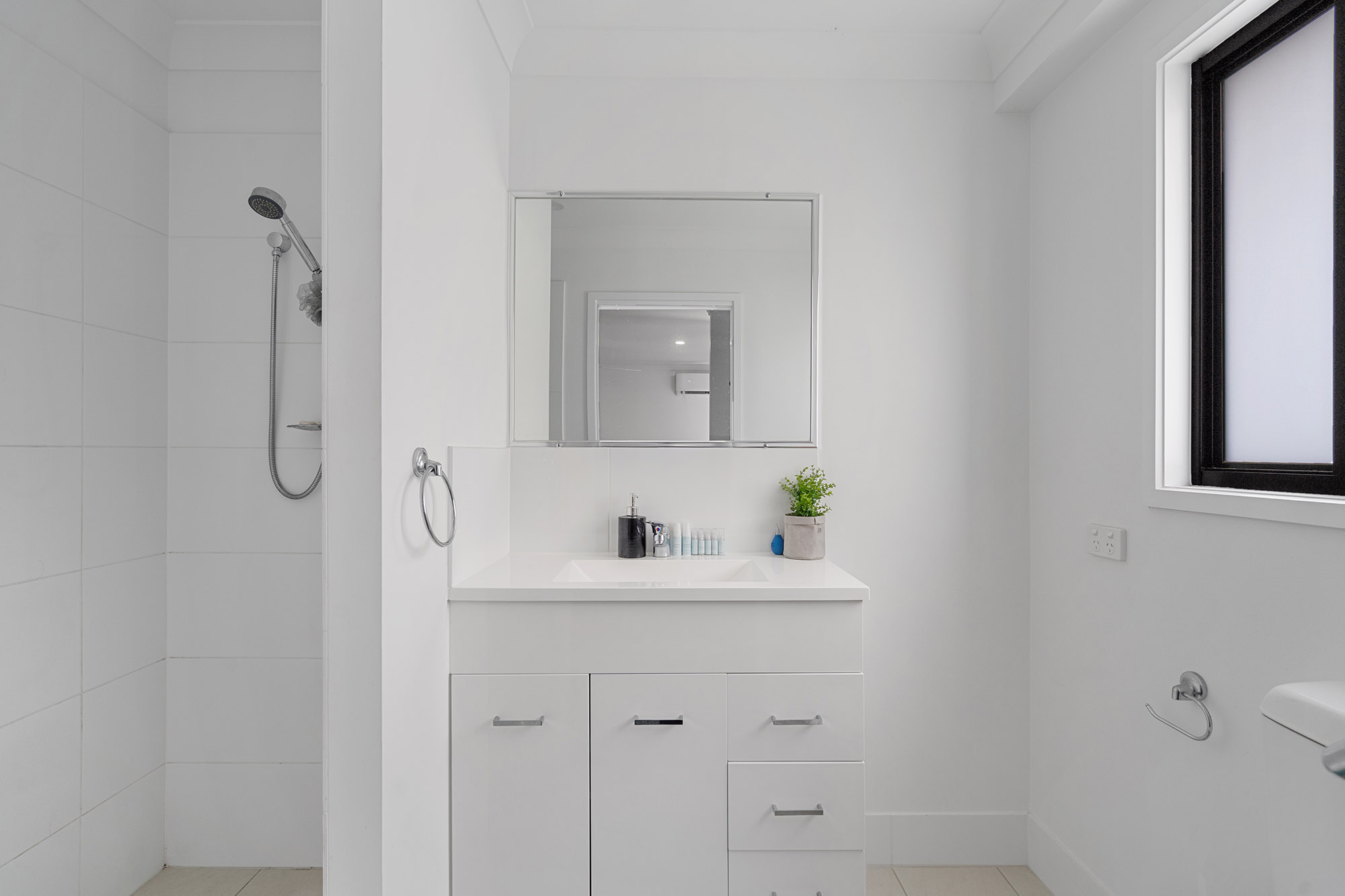 Upstairs features three full sized bedrooms, the master with a large walk-in robe, designer ensuite and split system A/C. The other two bedrooms are full sized, both with built in robes, ceiling fans and a large modern bathroom, upstairs is spacious, practical, and perfect for a family.