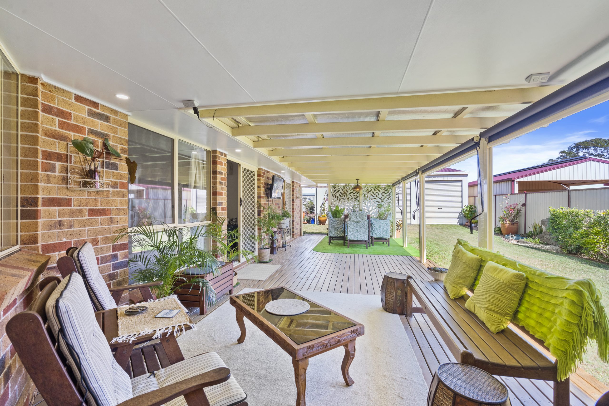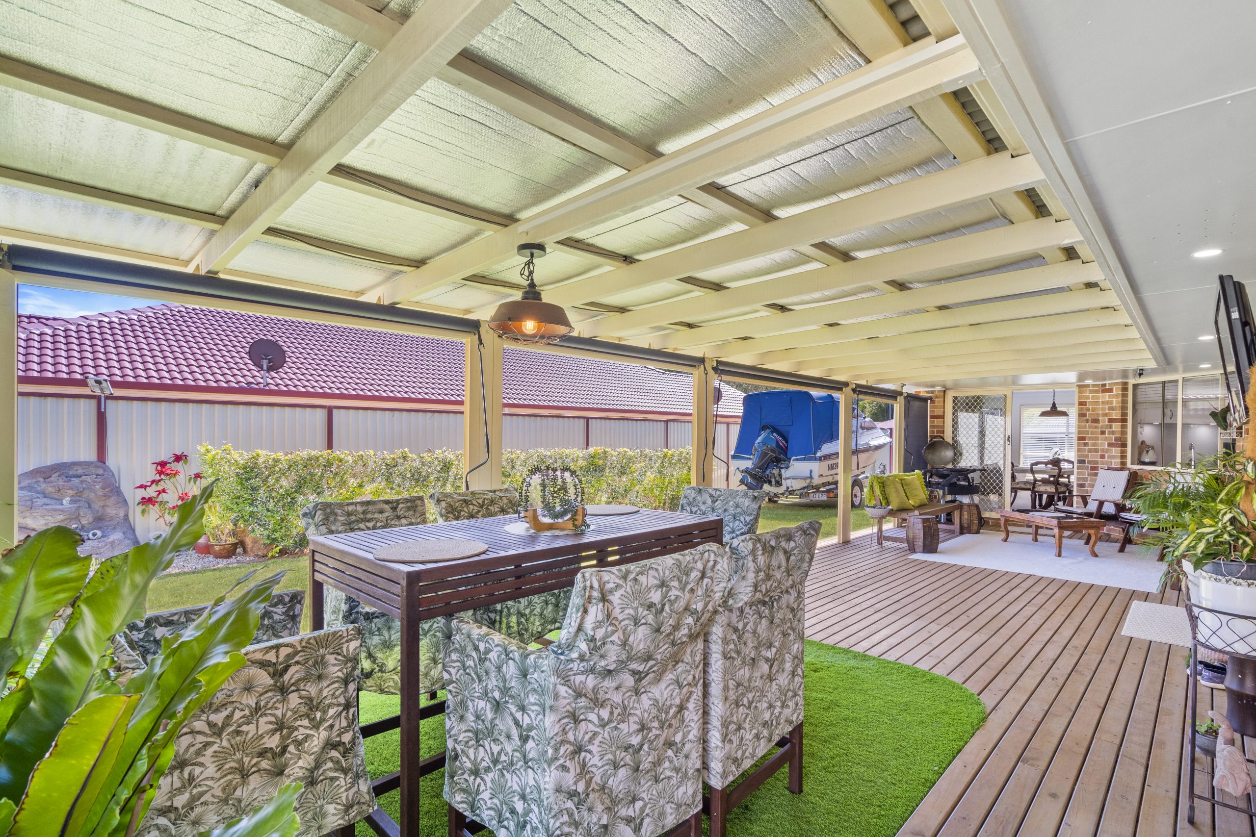 • Fully decked 52 m² outdoor entertainment area with blinds