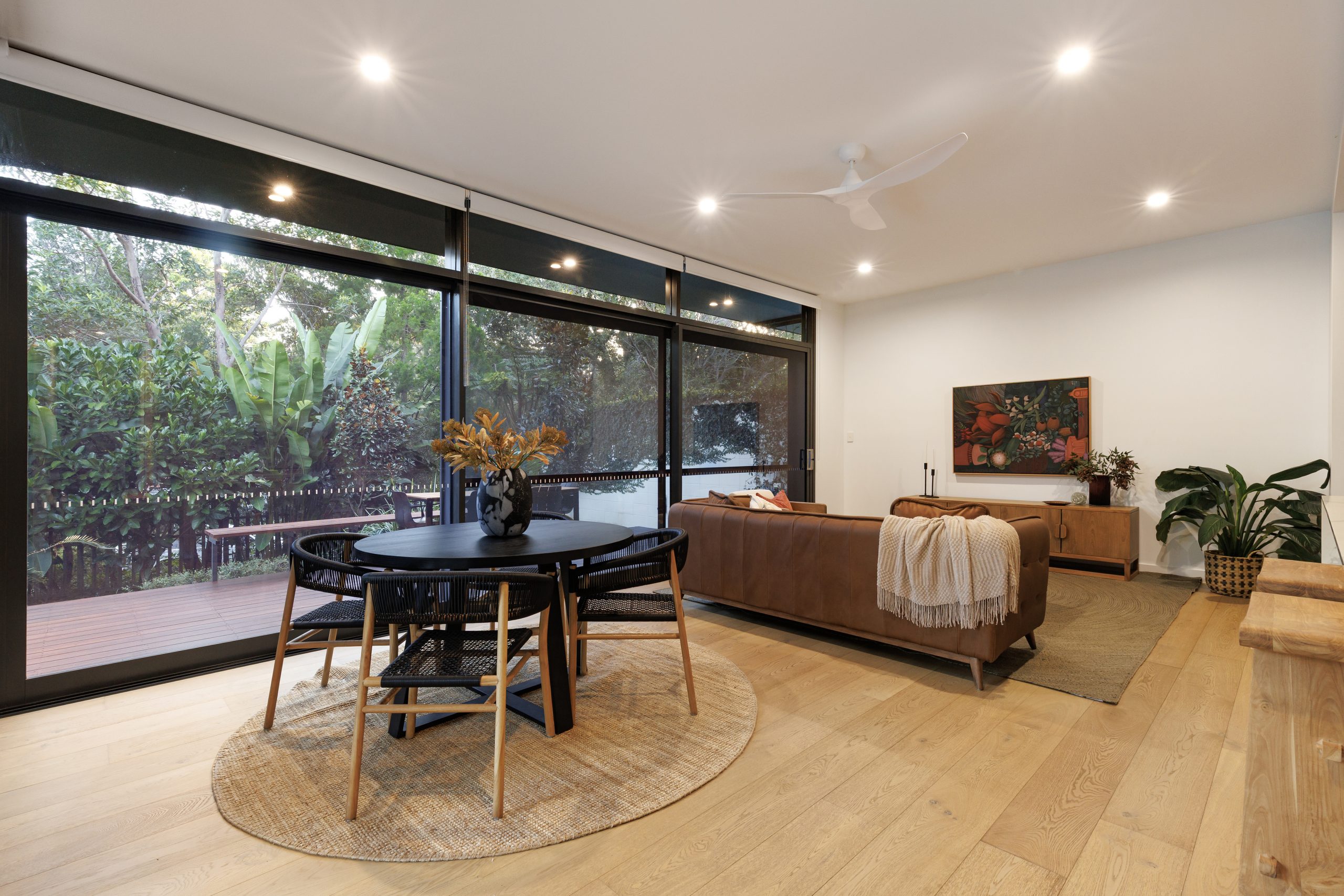At the heart of the home, a designer kitchen appointed with stone benchtops and premium appliances flows seamlessly into the open-plan living and dining areas. Expansive sliding doors connect effortlessly to the alfresco terrace, creating a harmonious indoor-outdoor lifestyle ideal for entertaining or relaxed everyday living.