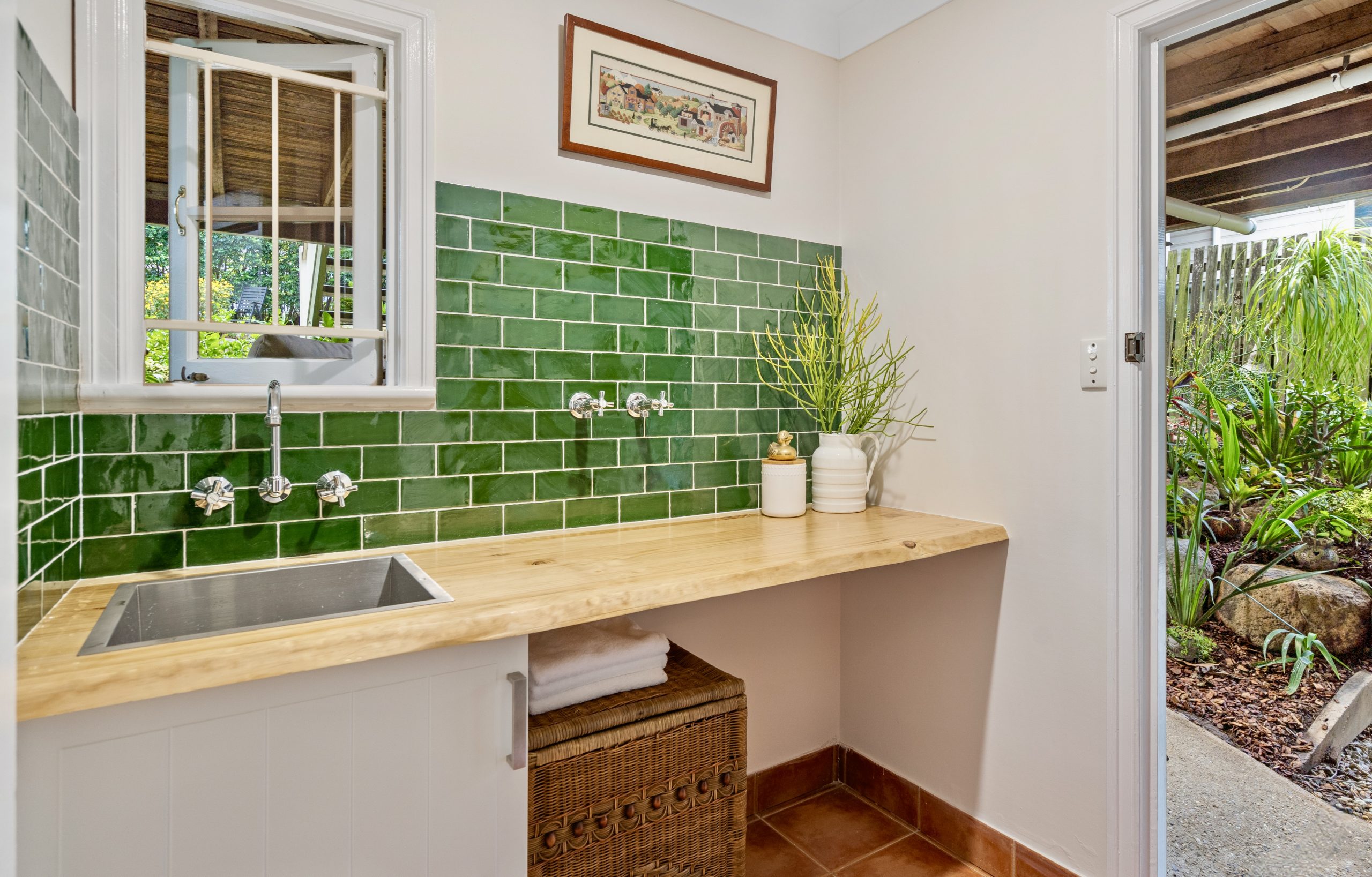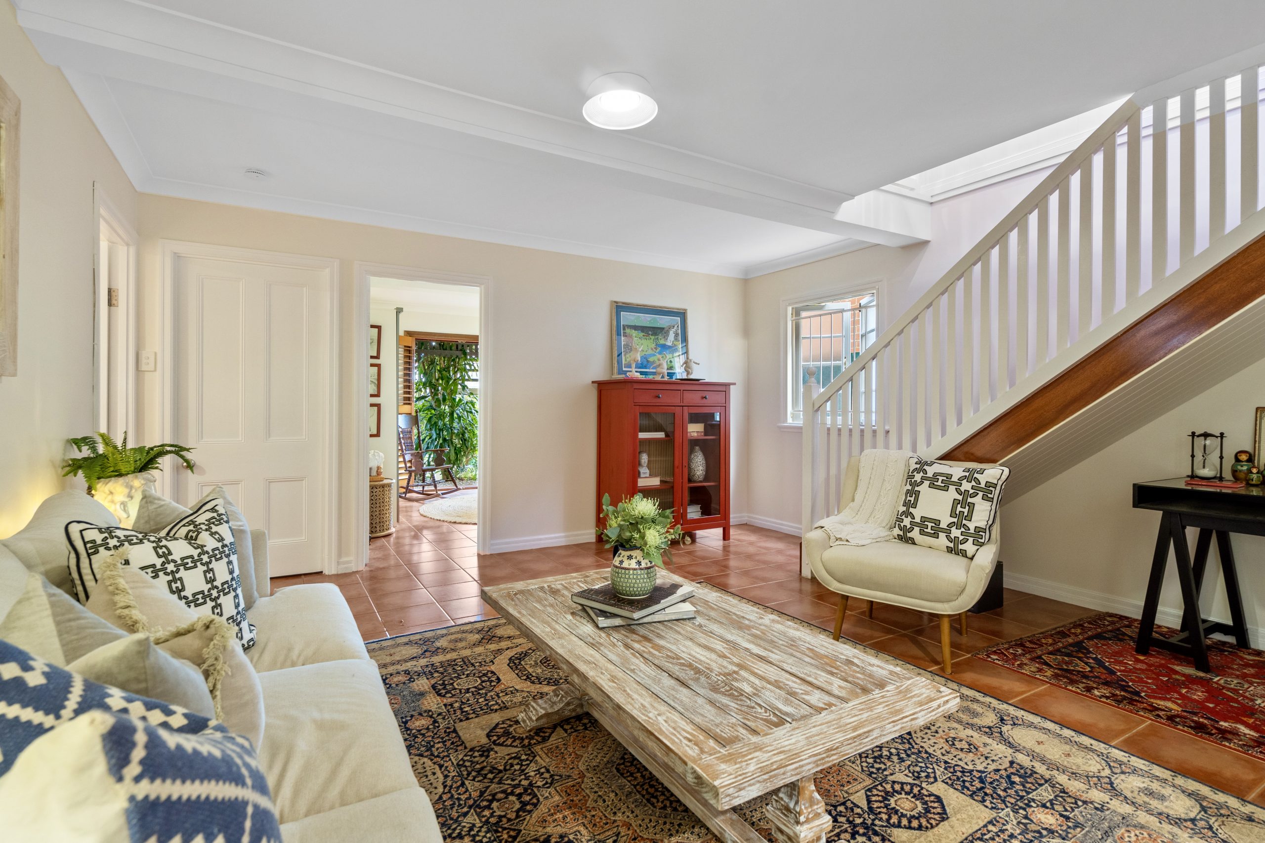 Polished timber floorboards are handsomely aged and rich honey gold in colour, offering a perfect contrast to light and bright freshly painted VJ walls, soaring 3m high ceilings, modern open plan layout and seamless indoor-outdoor connection highlighted from front to back with leafy elevated vistas.