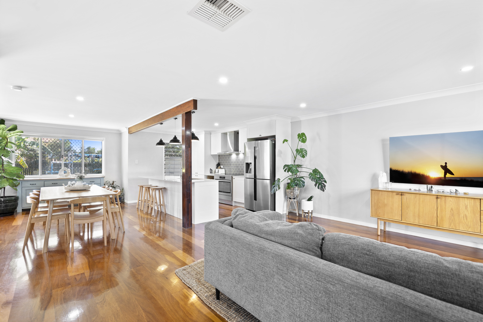 The outdoor entertaining offers an undercover space with complete privacy from the neighbours, perfect for year-round gatherings. Set on an expansive 600sqm lot, the back yard provides plenty of grass space for the kids and pets to enjoy, as well as room for a pool if desired.