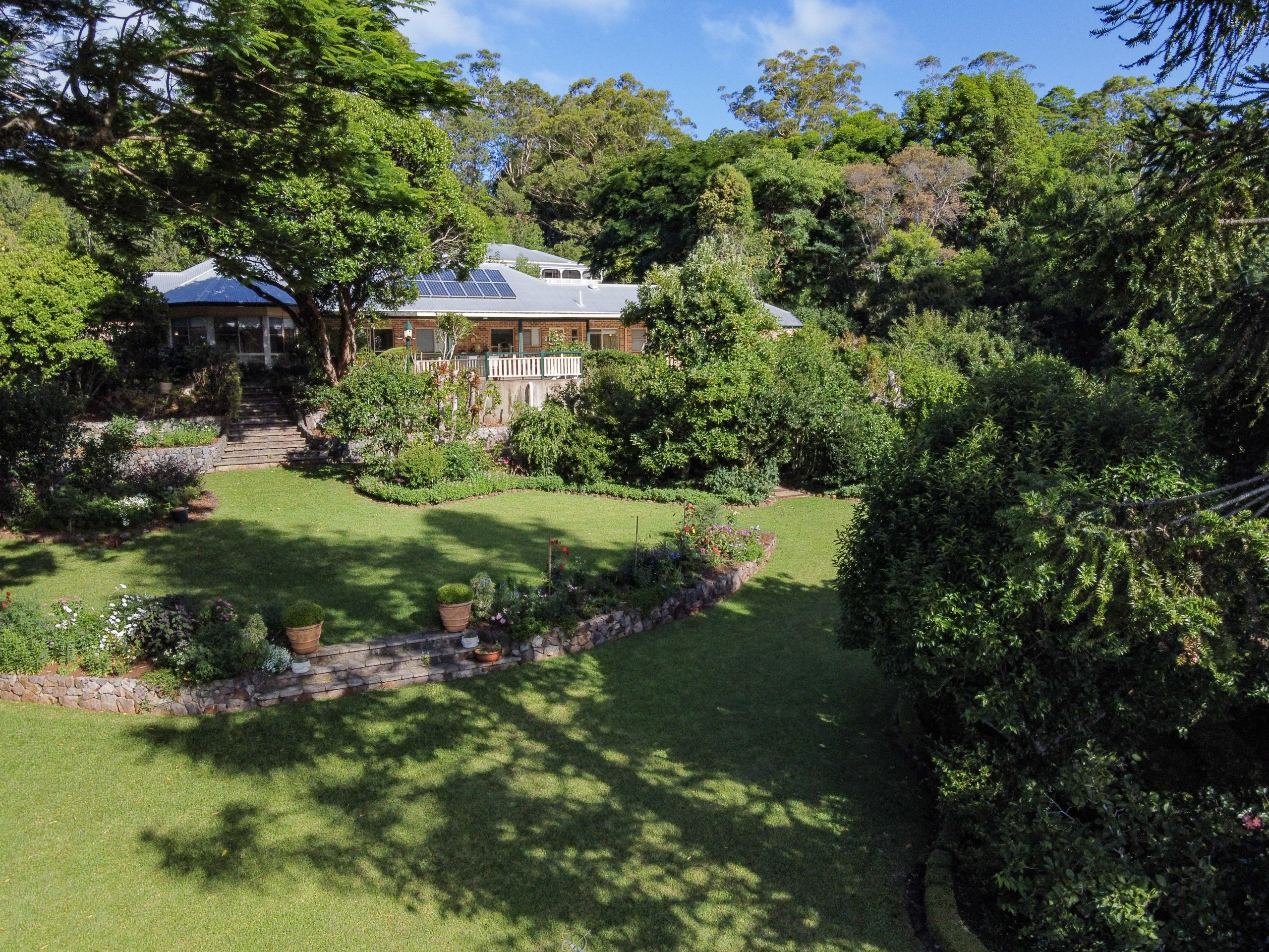 This impeccably presented and spacious solid brick home is positioned privately on just under 2 acres of land on the beautiful Blackall Range in the Sunshine Coast Hinterland. Along the length of the driveway to the house there are azaleas, camellias, magnolias, and standard wisteria, but this is just a hint of what’s to come. The gardens surrounding the house have been thoughtfully designed and meticulously maintained by the current owners, only the second owners since the home was built. Featured in the Australian Open Gardens Scheme for several years, imagine how wonderful it would be to live in and appreciate this magnificent and peaceful environment every single day.