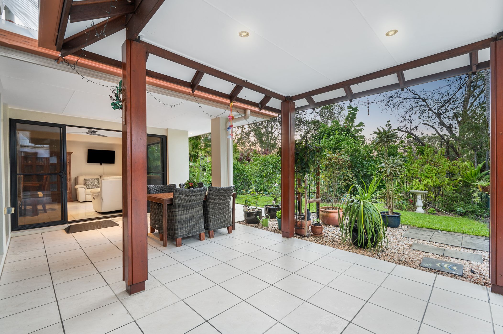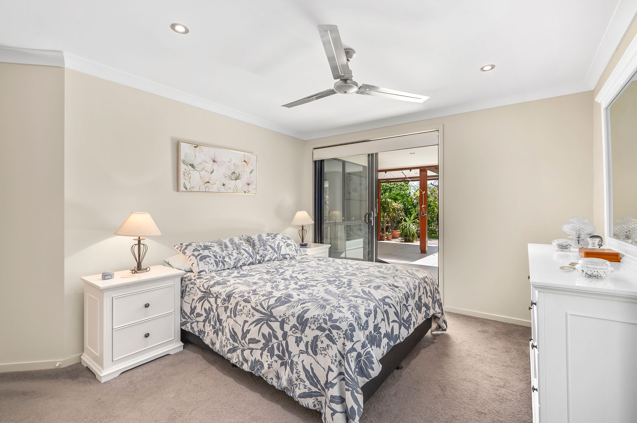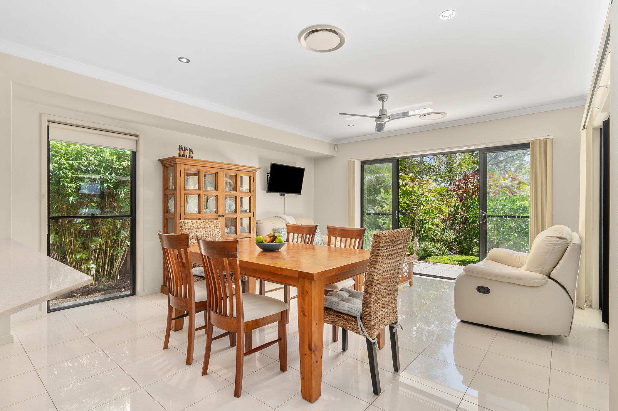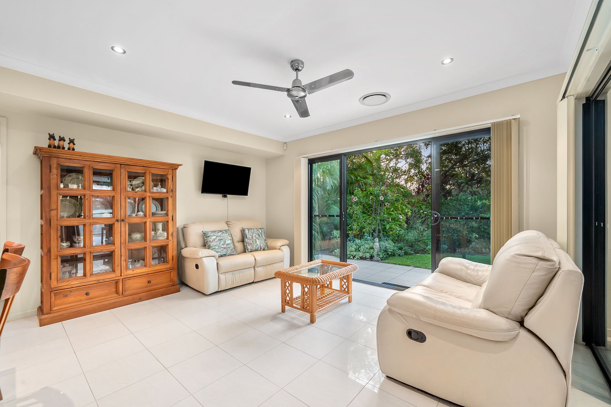 The home features light filled open plan living and dining areas, a well-positioned kitchen and seamless flow to the outdoor entertaining area overlooking the solar heated swimming pool and tropical gardens.