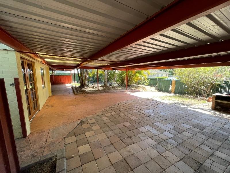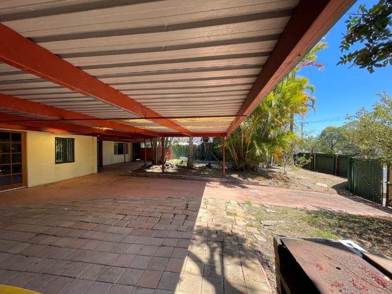 The covered carport is designed to accommodate up to three vehicles, ensuring secure parking.