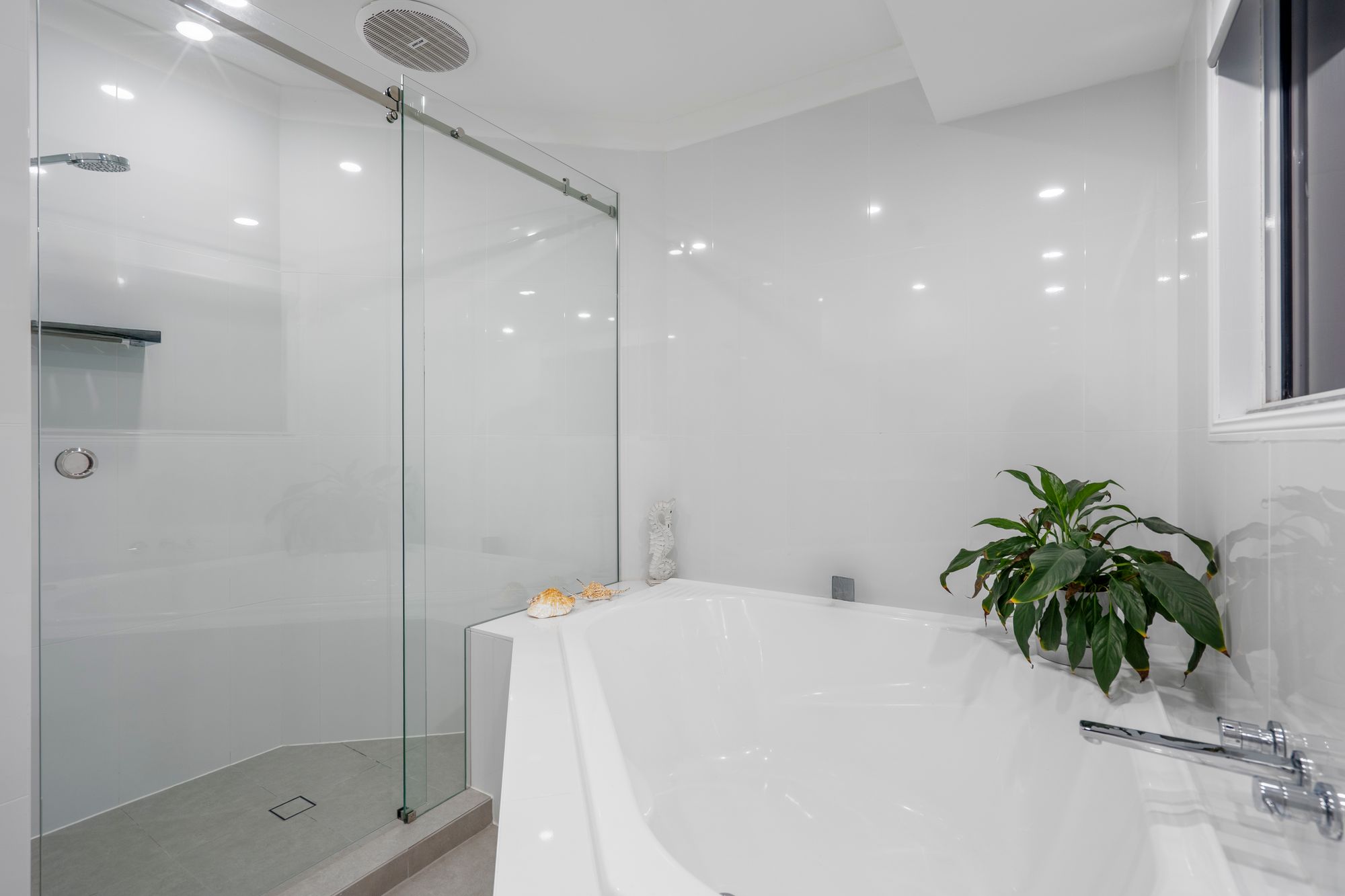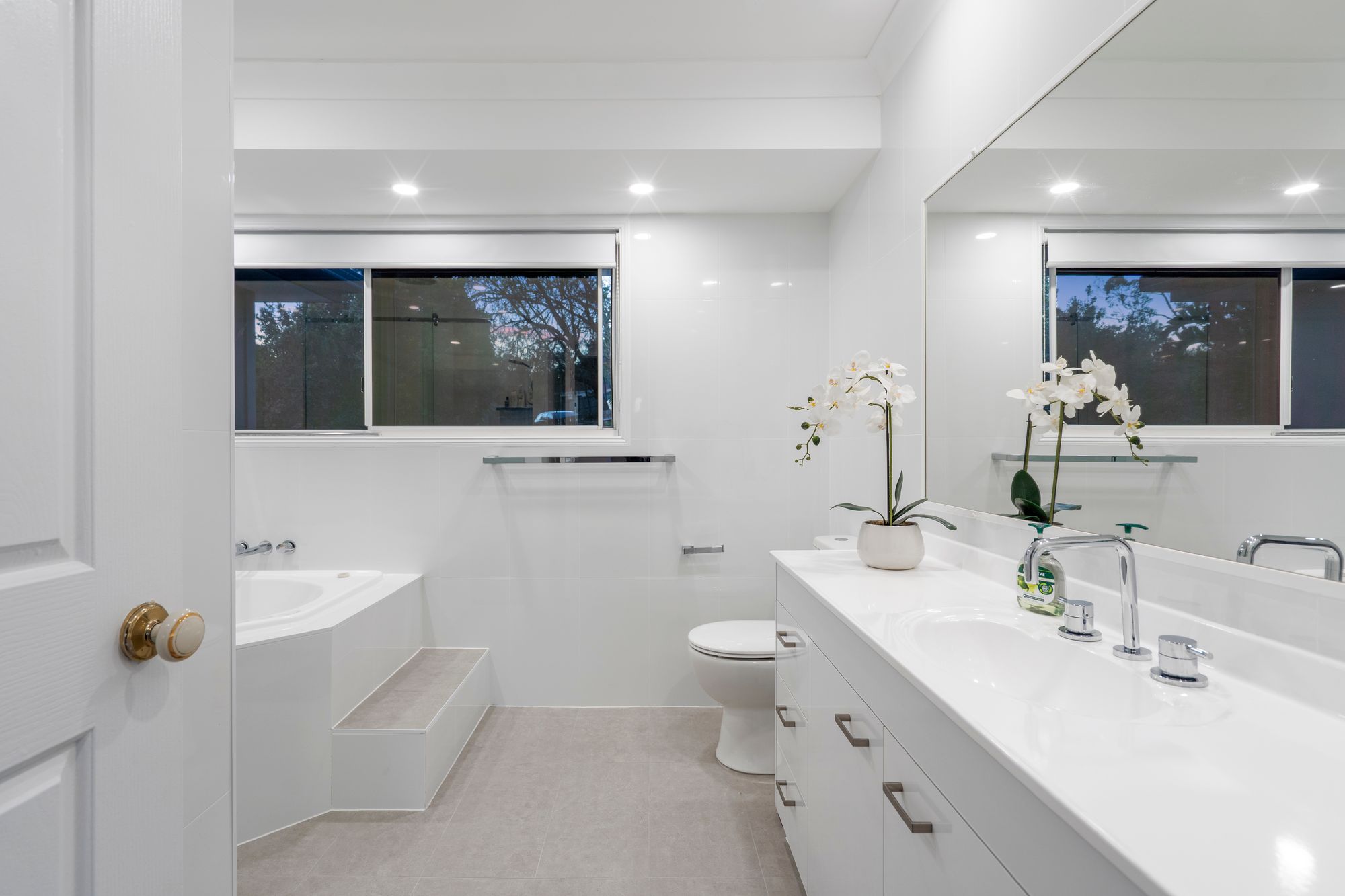• Main bathroom with oversized bath, dual vanities and double-sized shower
