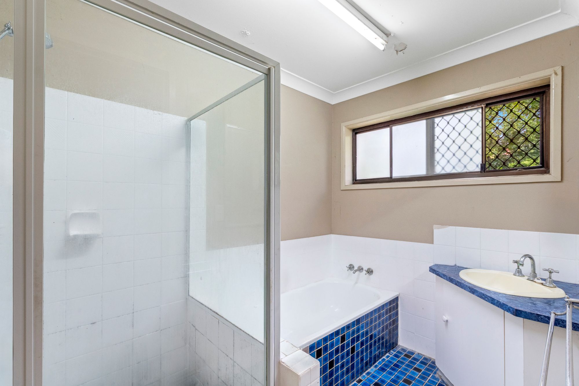 The sleeping quarters are privately positioned down the hallway, including three bedrooms all with built-in wardrobes and ceiling fans. The bathroom offers a separate bathtub and shower, with a separate toilet for added convenience.
