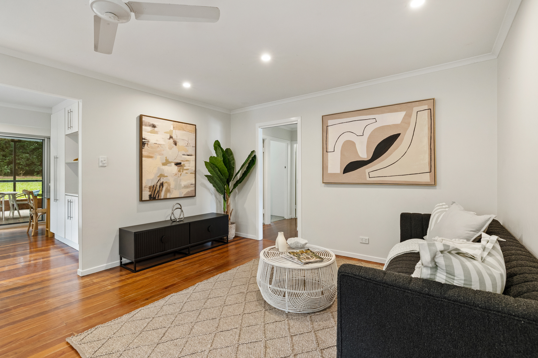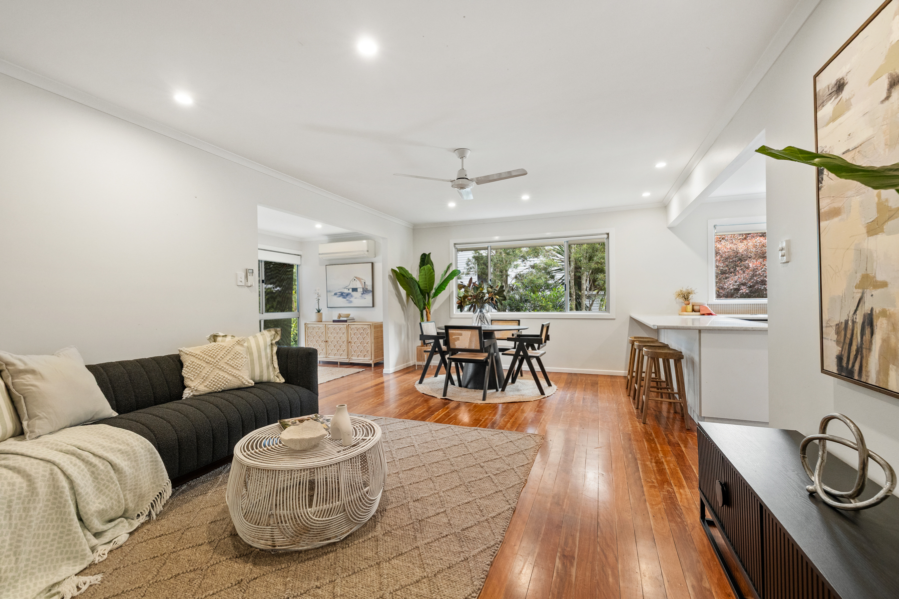 • Large open-plan lounge and dining with timber floors and downlights