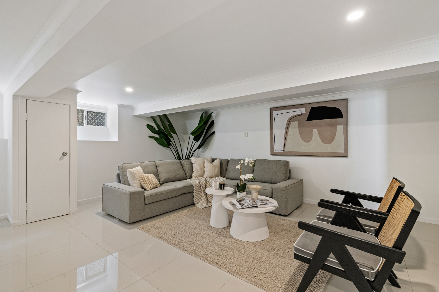 Downstairs, although not legal height, is a fully self-contained multipurpose space with enormous flexibility. Featuring a second kitchen with Chef upright oven and Fisher & Paykel dishwasher, this area is ideal for extended family, a home office setup, or teenagers seeking their own space. Two large multipurpose rooms, a second bathroom, laundry facilities and additional air-conditioning complete this versatile level.