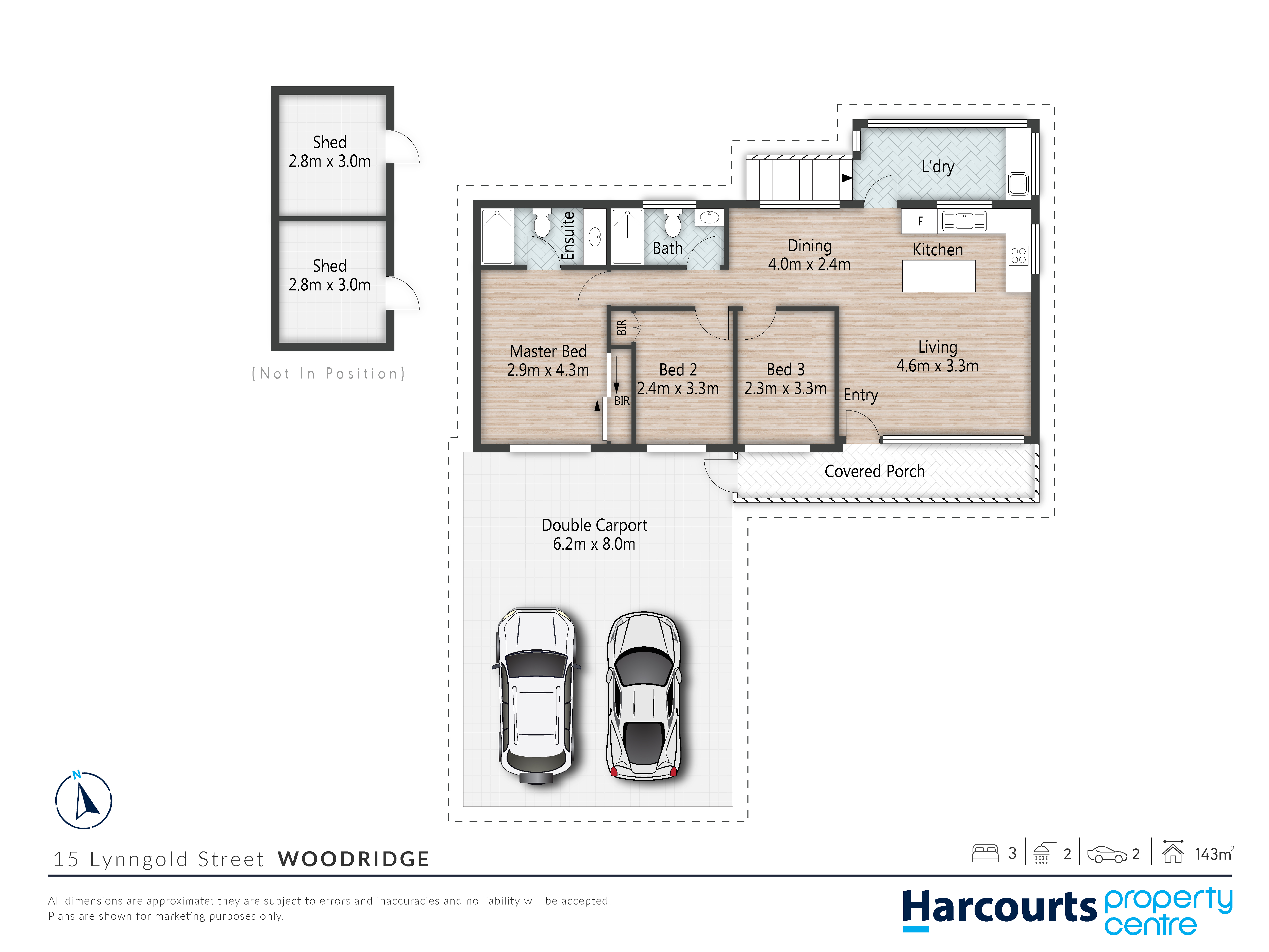 3 bedrooms – master with ensuite & BIR