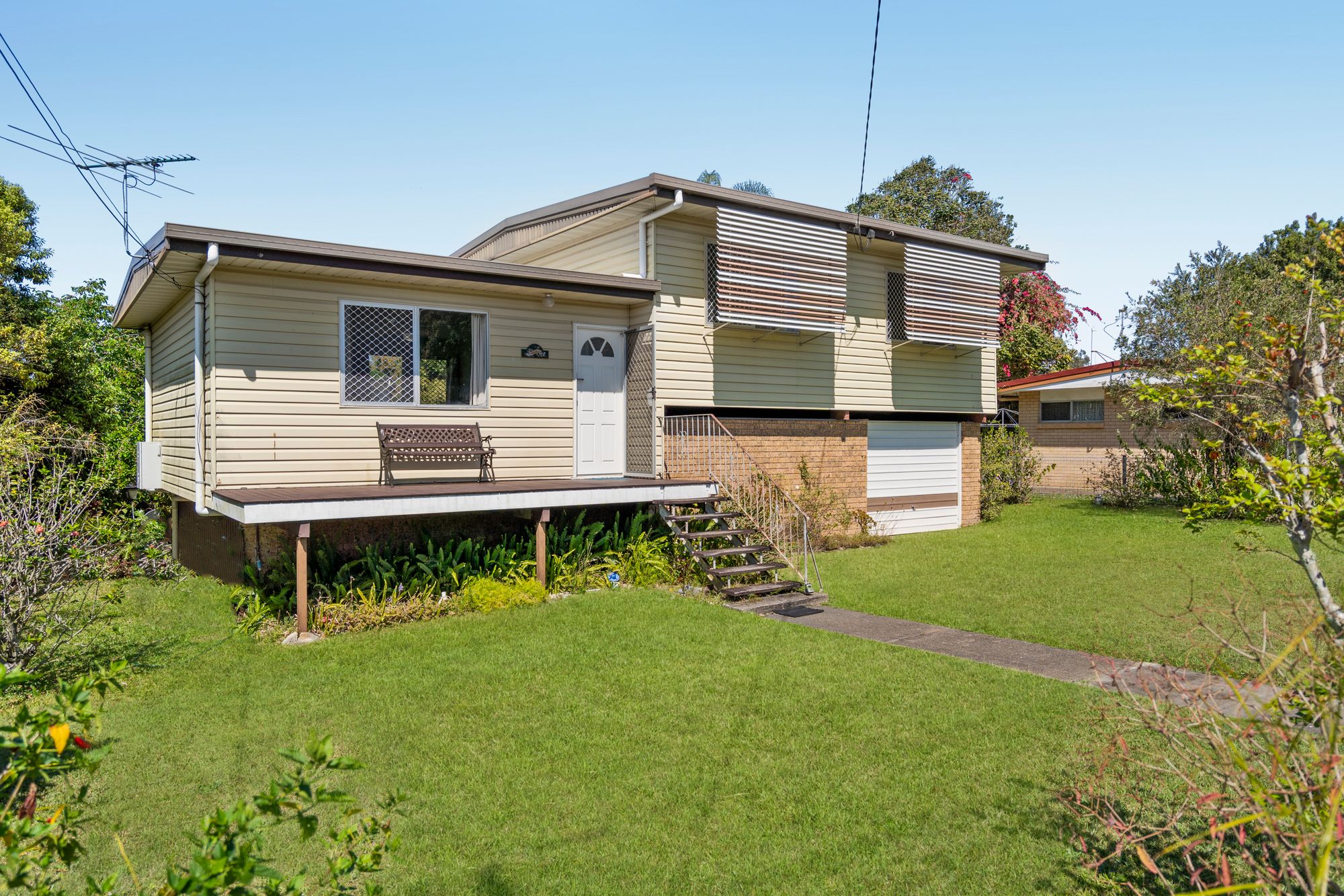 This split-level home offers a functional layout with three bedrooms upstairs (two with ceiling fans), a bathroom with shower-over-bath, and a separate toilet, all connected by internal stairs. The lower level features a welcoming porch, a bright living area with ceiling fan and natural light, plus a nearly new kitchen with electric cooktop, oven, tiled flooring and dining space, with external stairs leading to the backyard. Additional highlights include a single lockup garage with laundry and storage, and a generous backyard with a confirmed granny flat site, providing excellent scope for families or investors to add value.