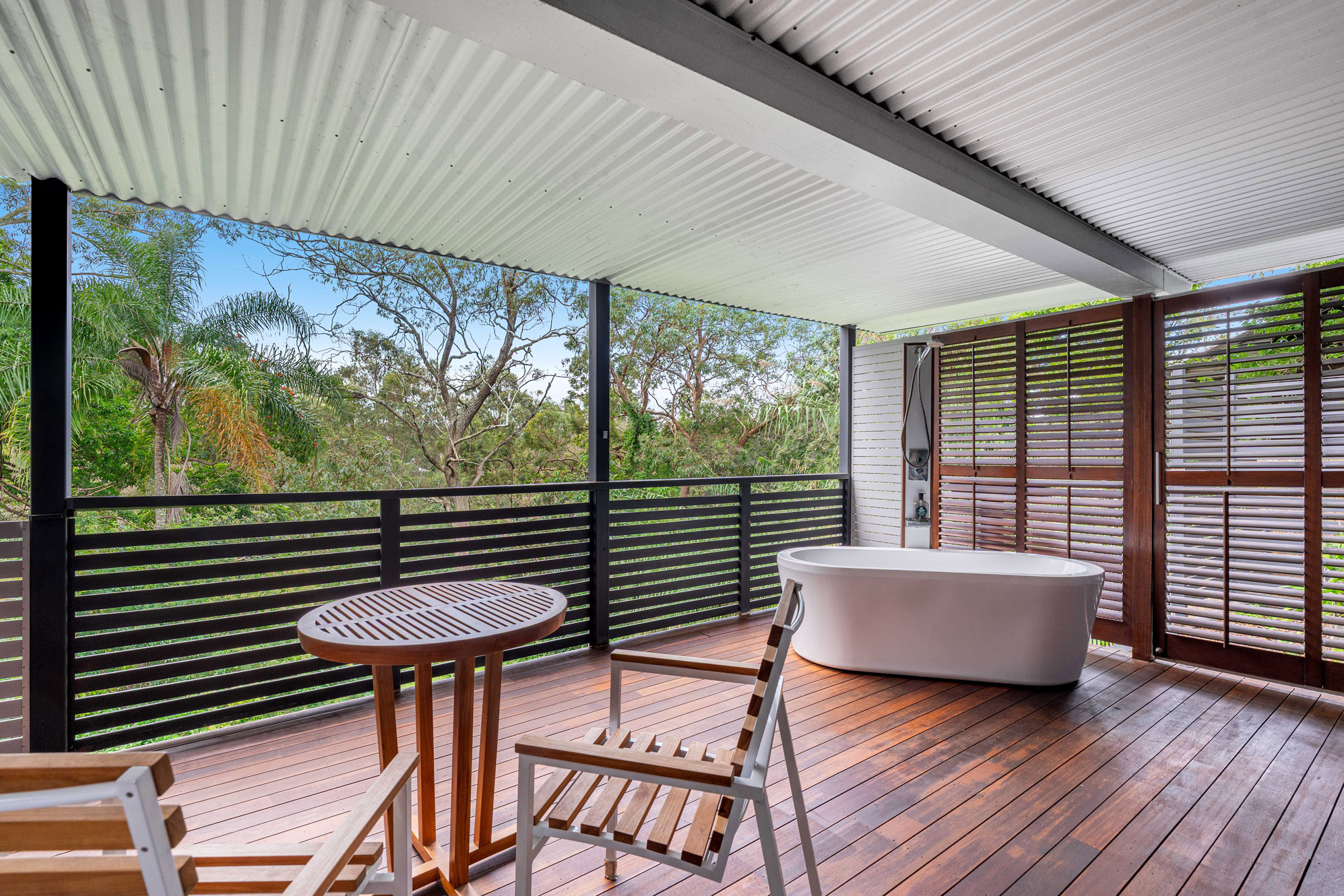 From the curved ceiling lines to the immersive natural outlooks best enjoyed from the soaking bath on the rear deck, every detail of this contemporary haven celebrates the beauty of its landscape.