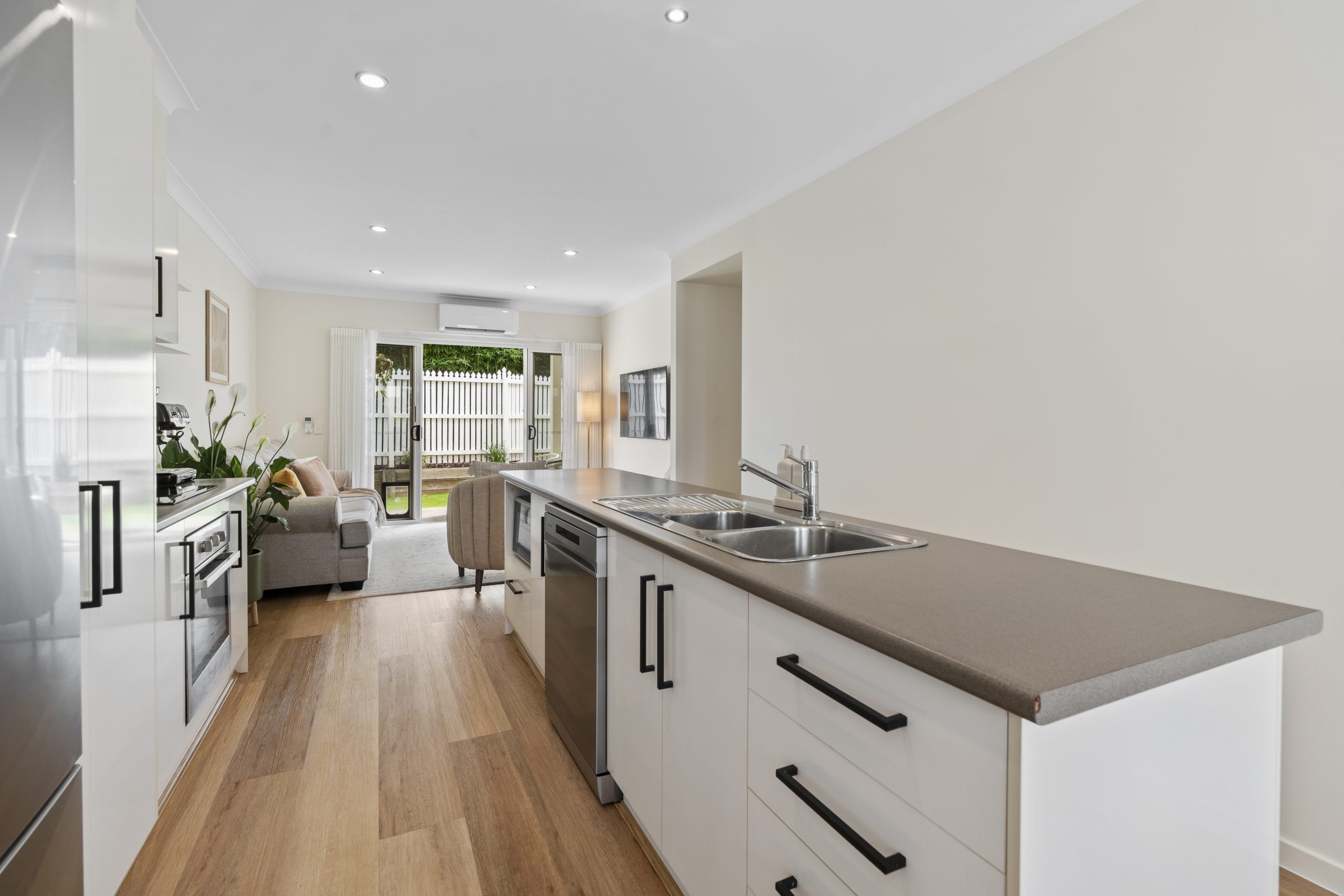 • Large open plan kitchen/living/dining area with new hybrid plank flooring & split system air conditioning