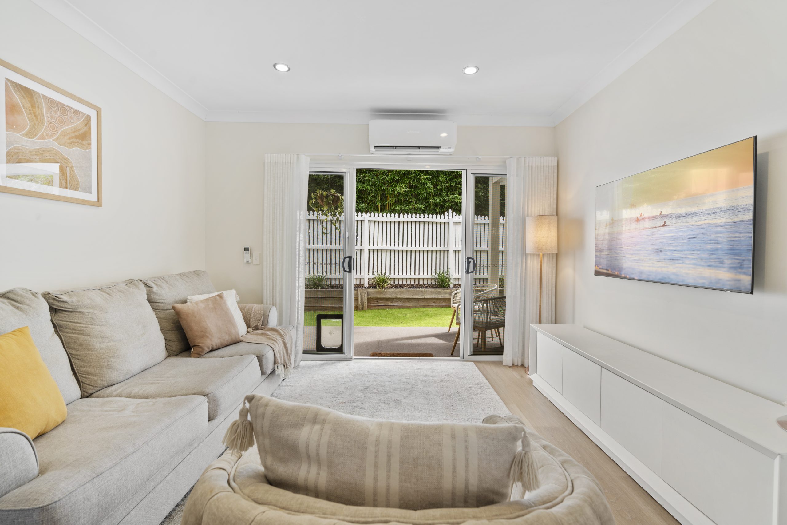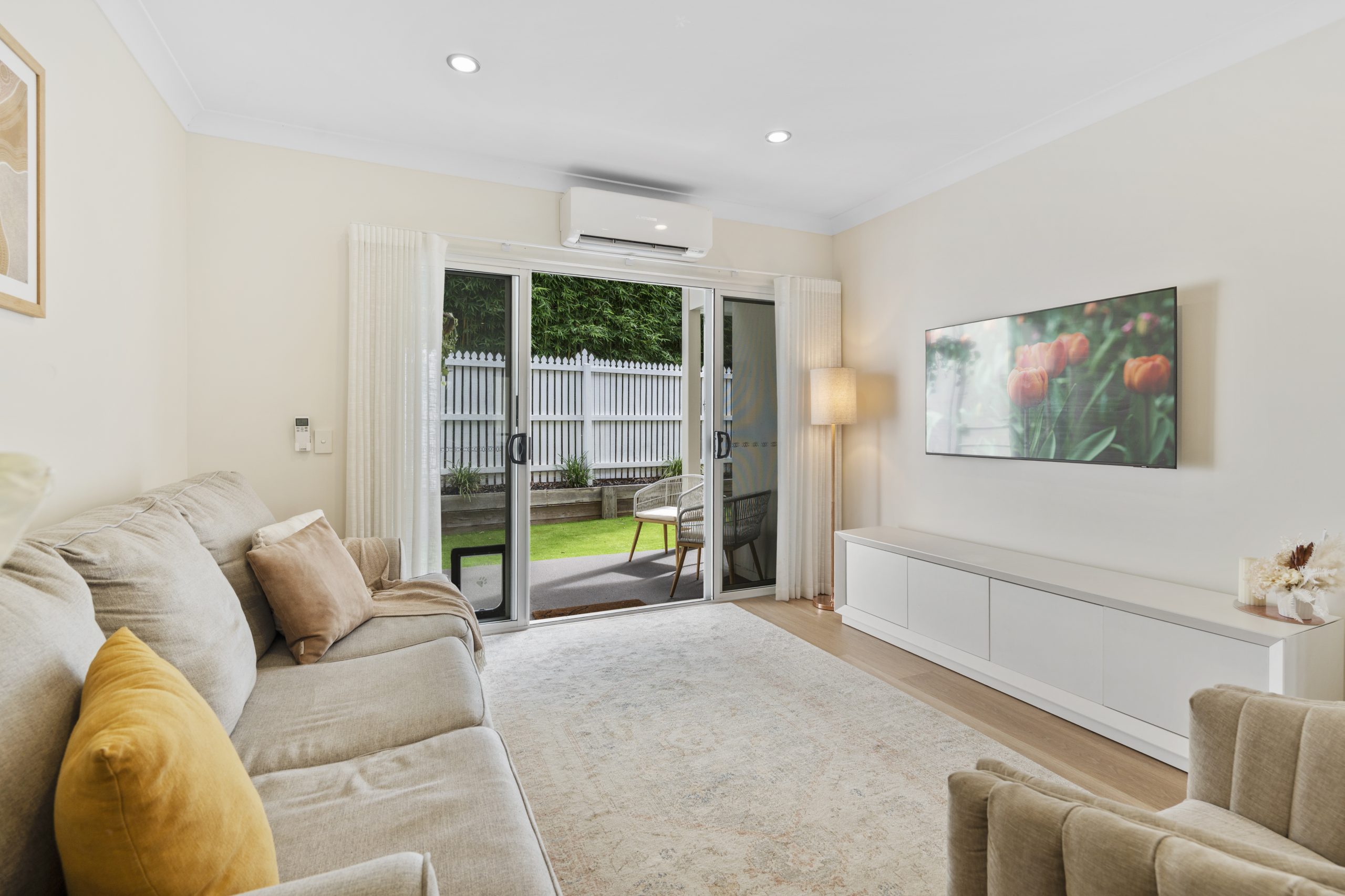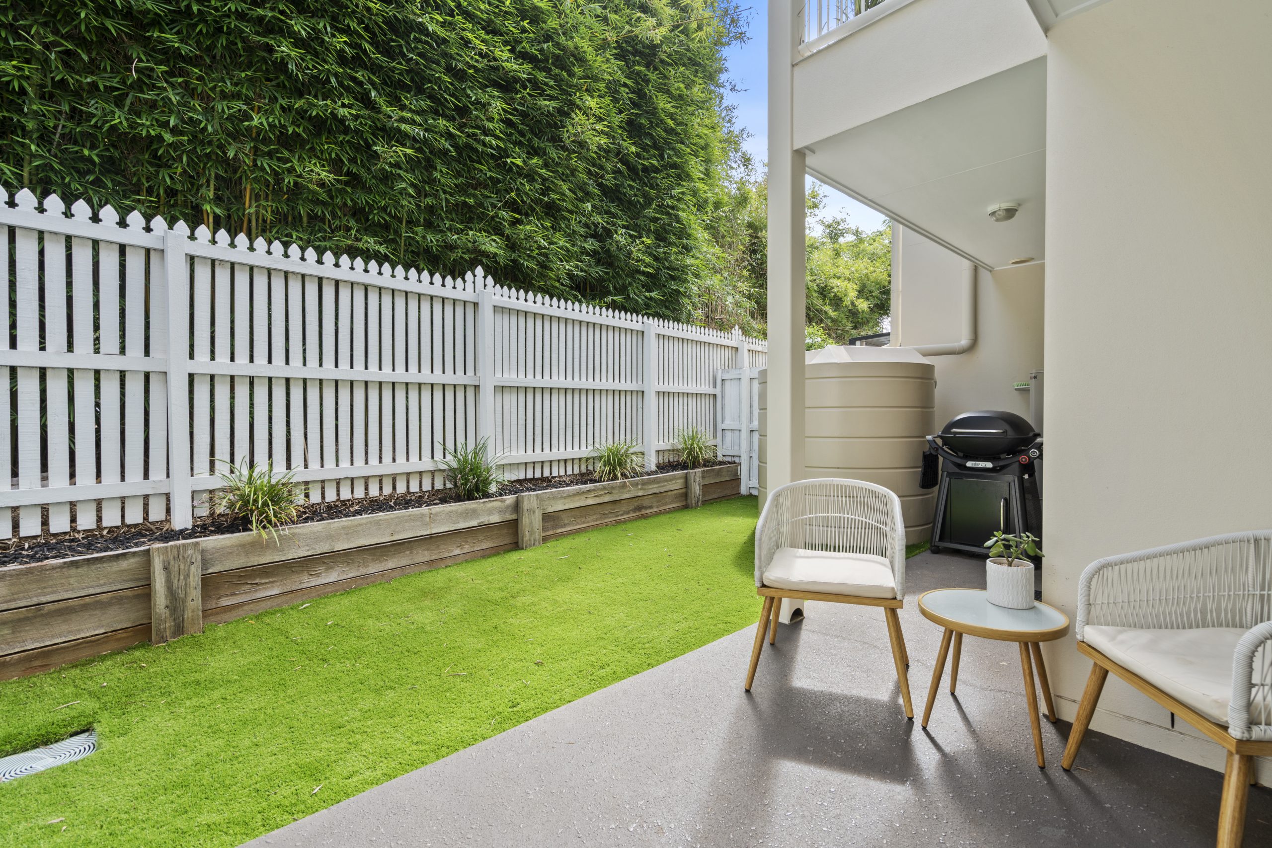• Low maintenance fully fenced private courtyard with new astro turf