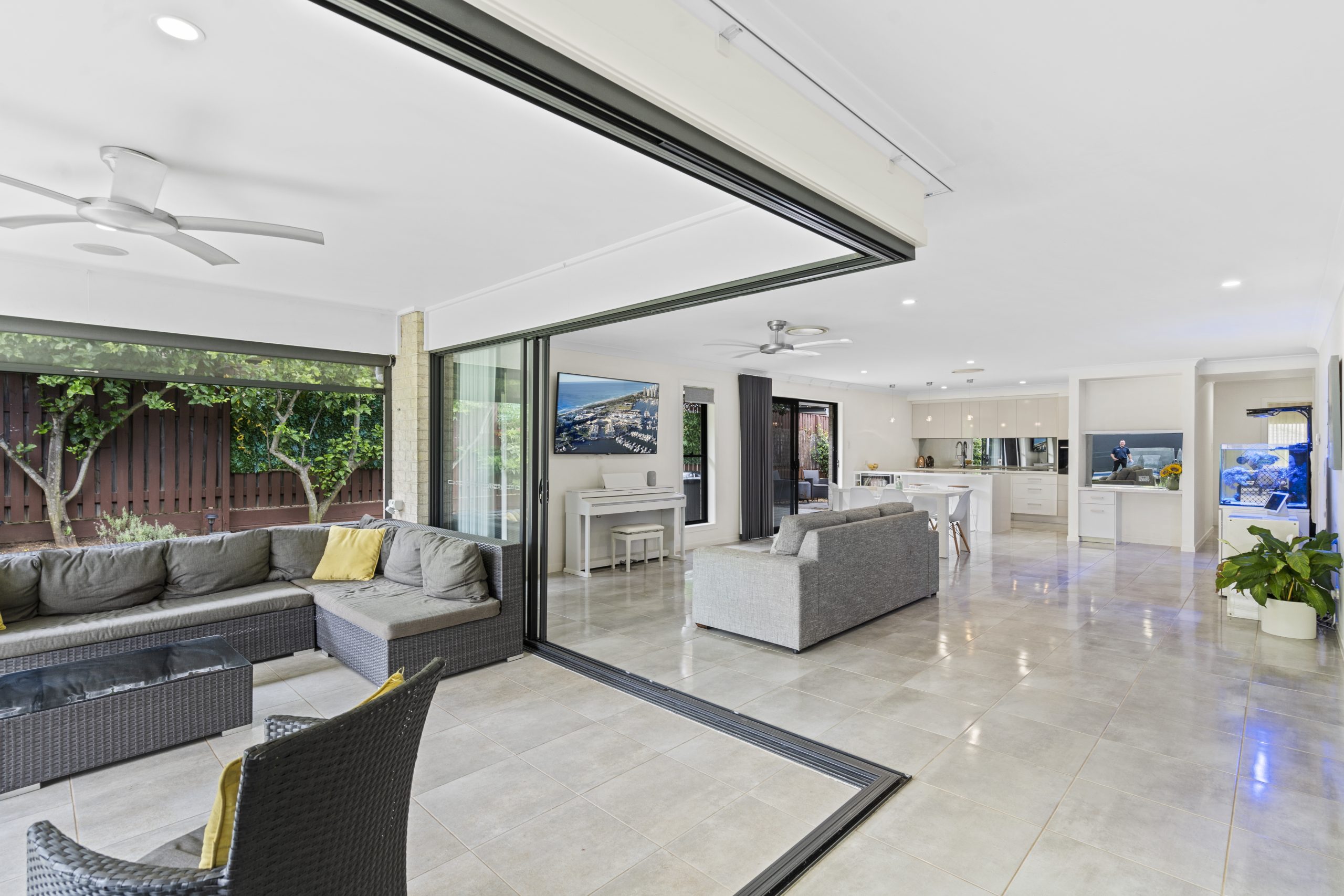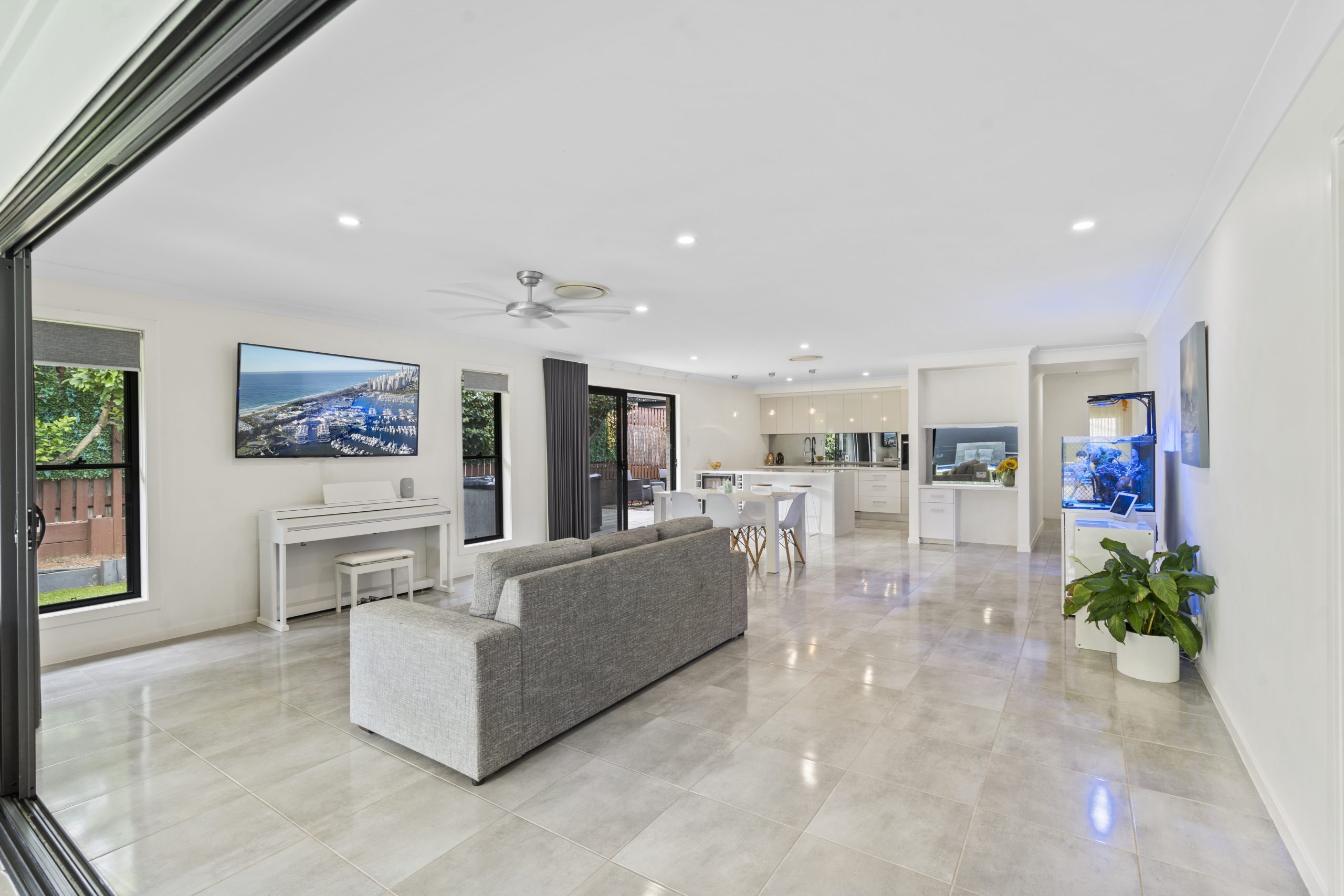 Spacious open plan living from the chefs kitchen, complete with butlers’ pantry, to the covered entertaining area